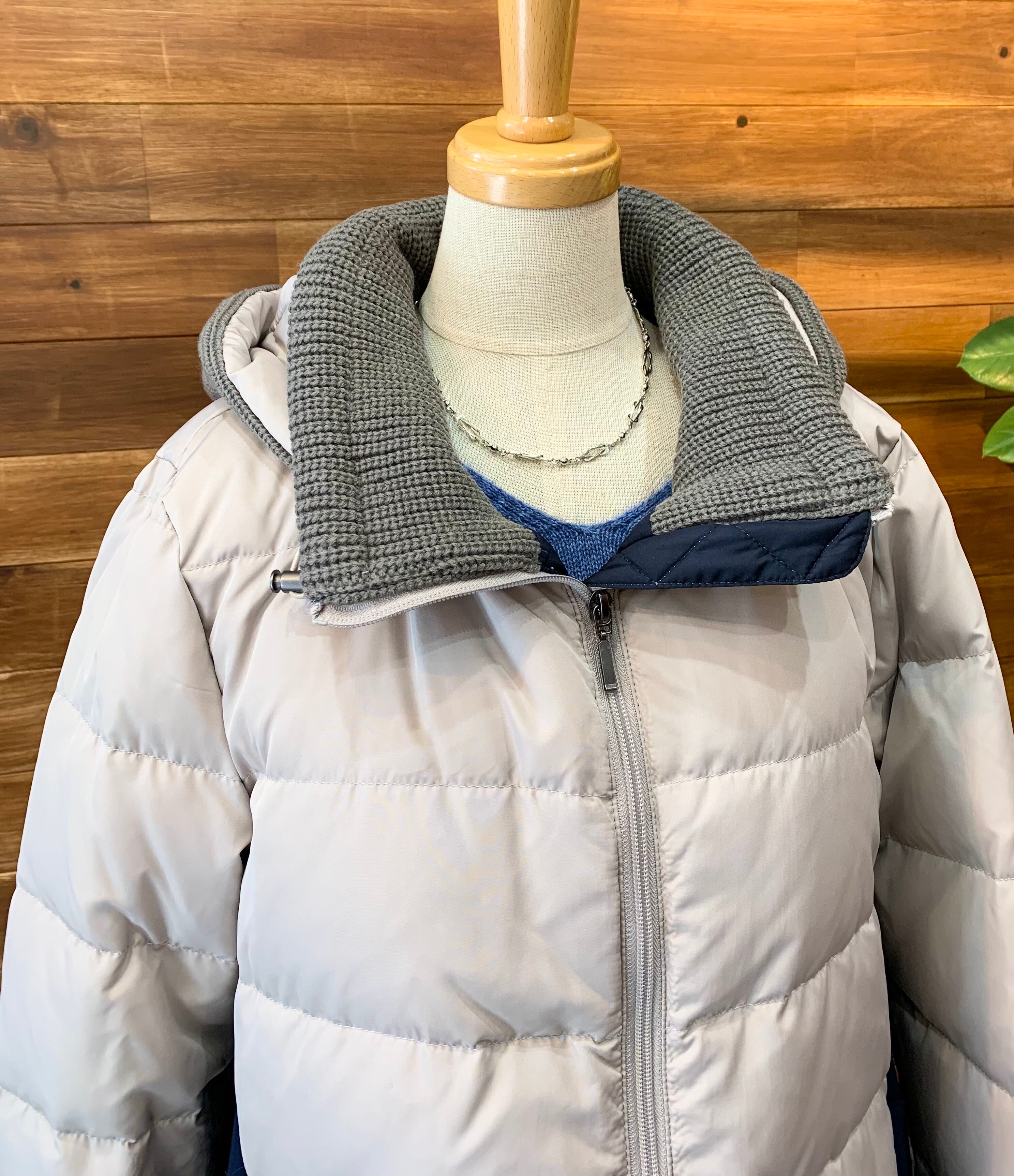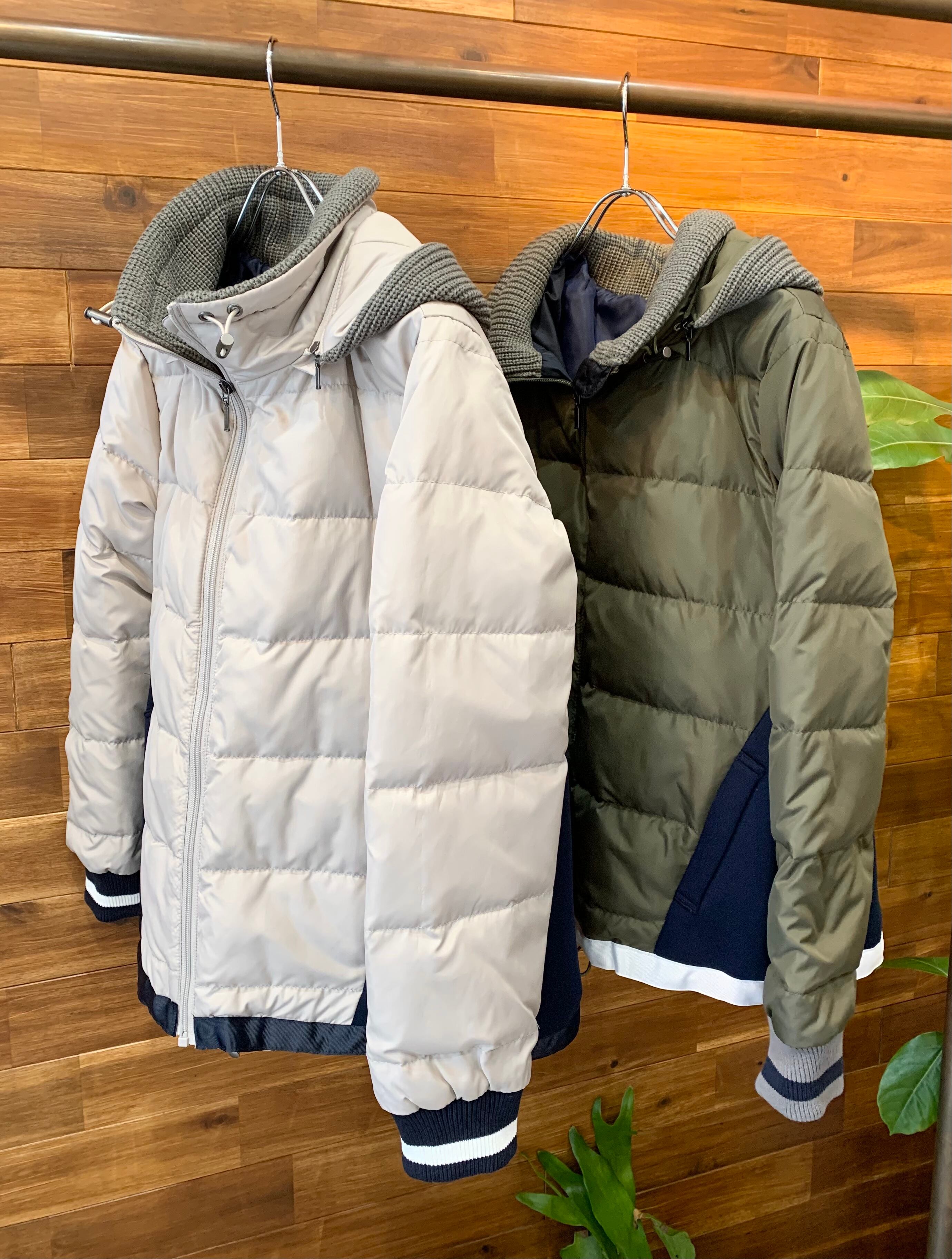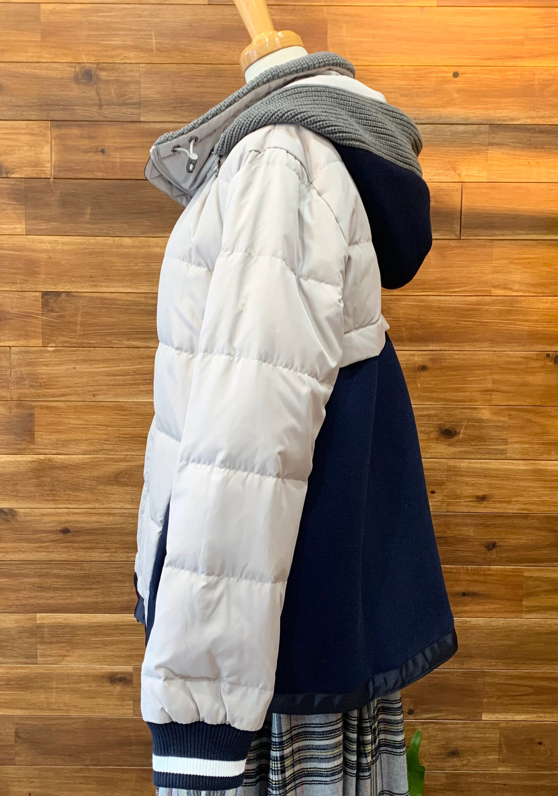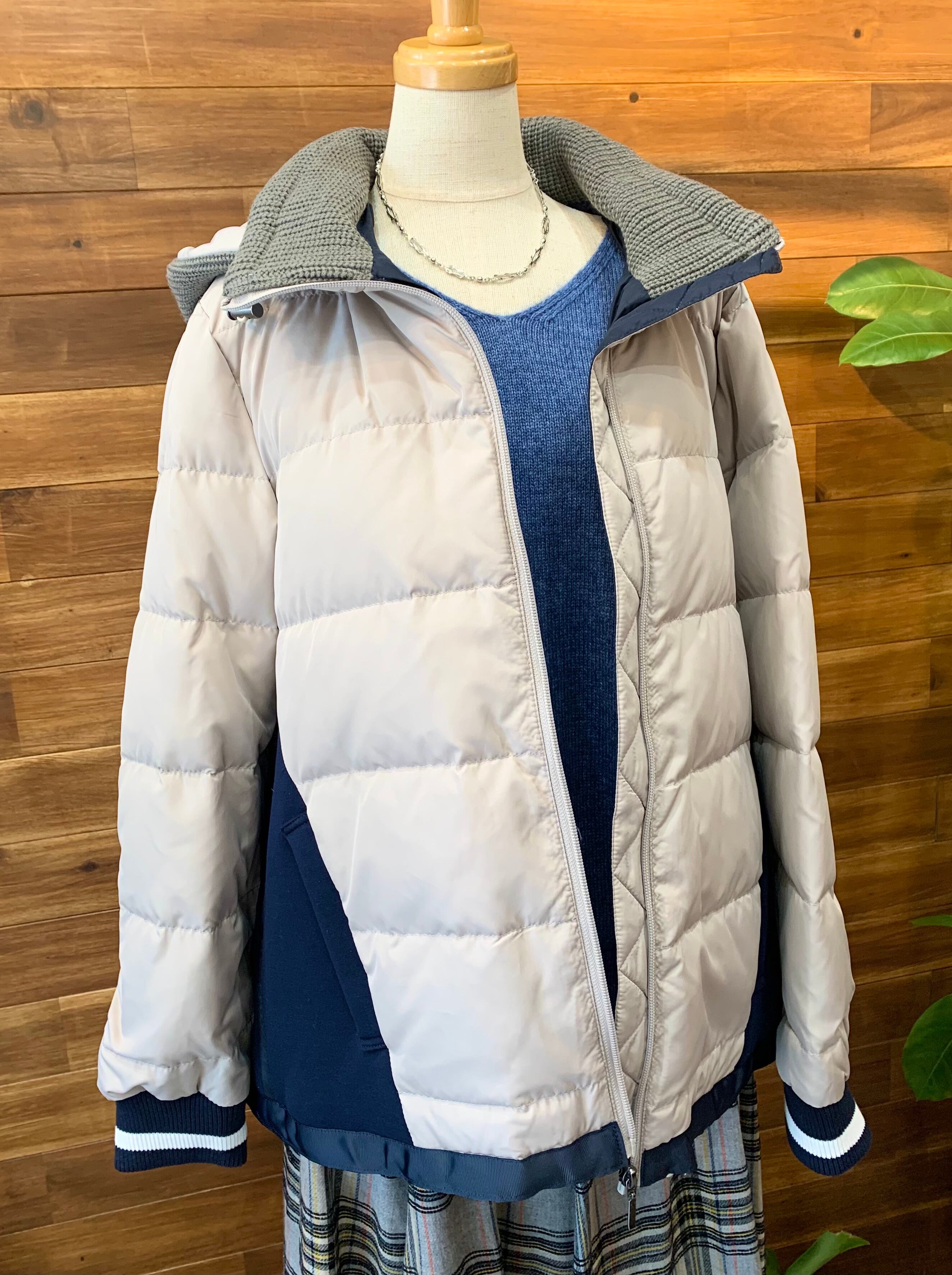 斜めカットのポンチ素材とダウンの切替、グログランテープに裾ドロスト♫