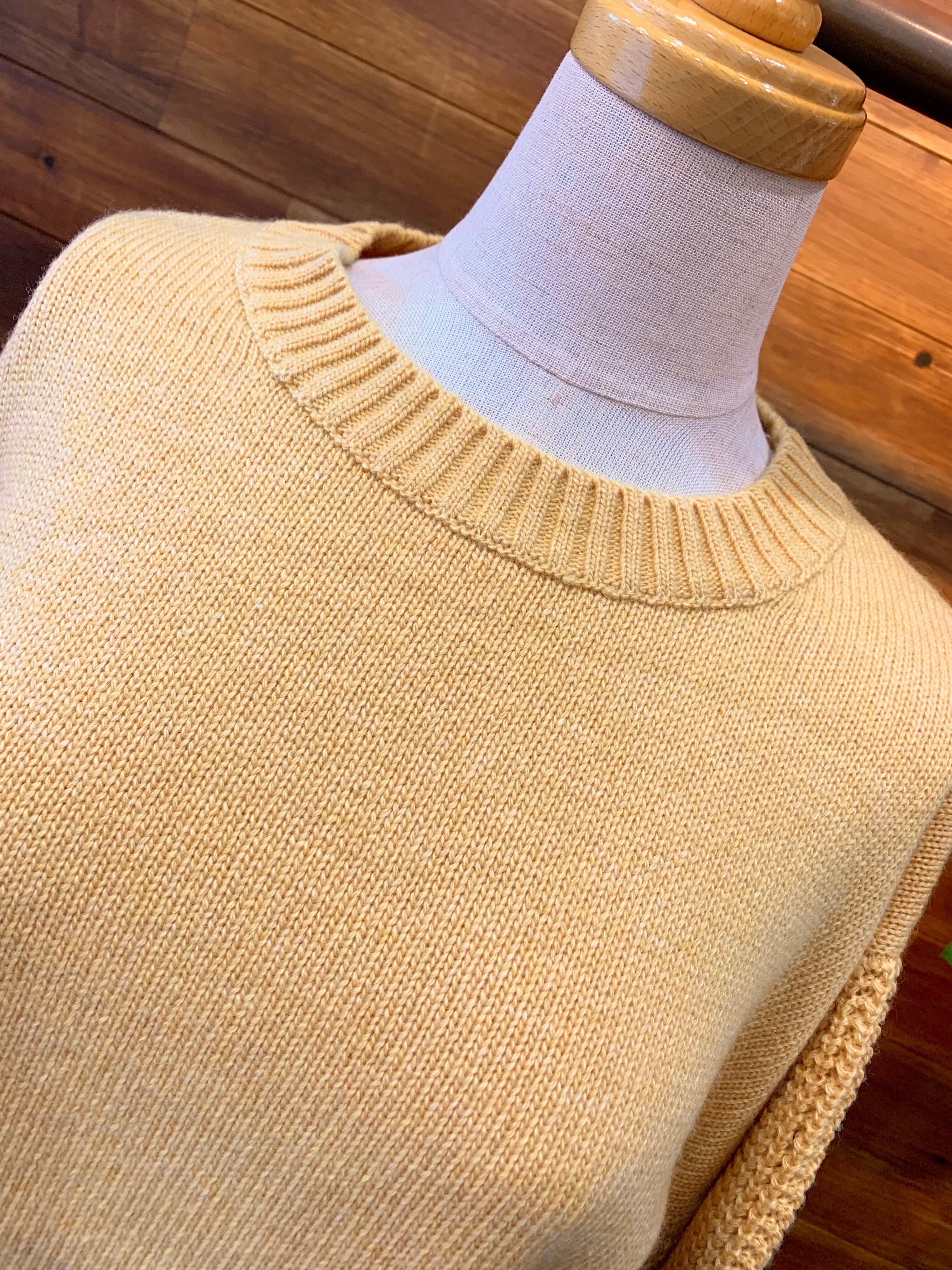 スッキリとした丸首の身頃に、ざっくりとした畦編みのお袖が可愛い、適度な厚みのあるニットです。