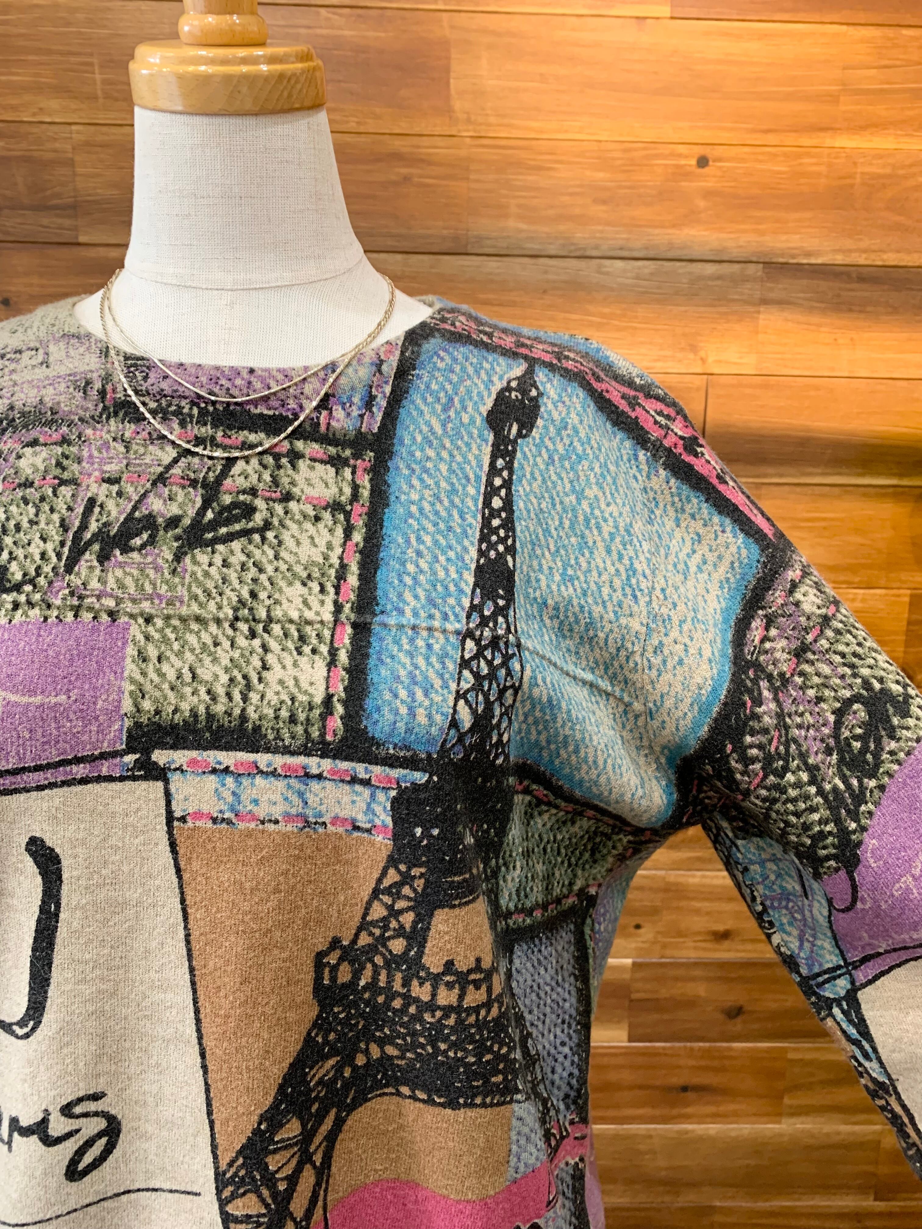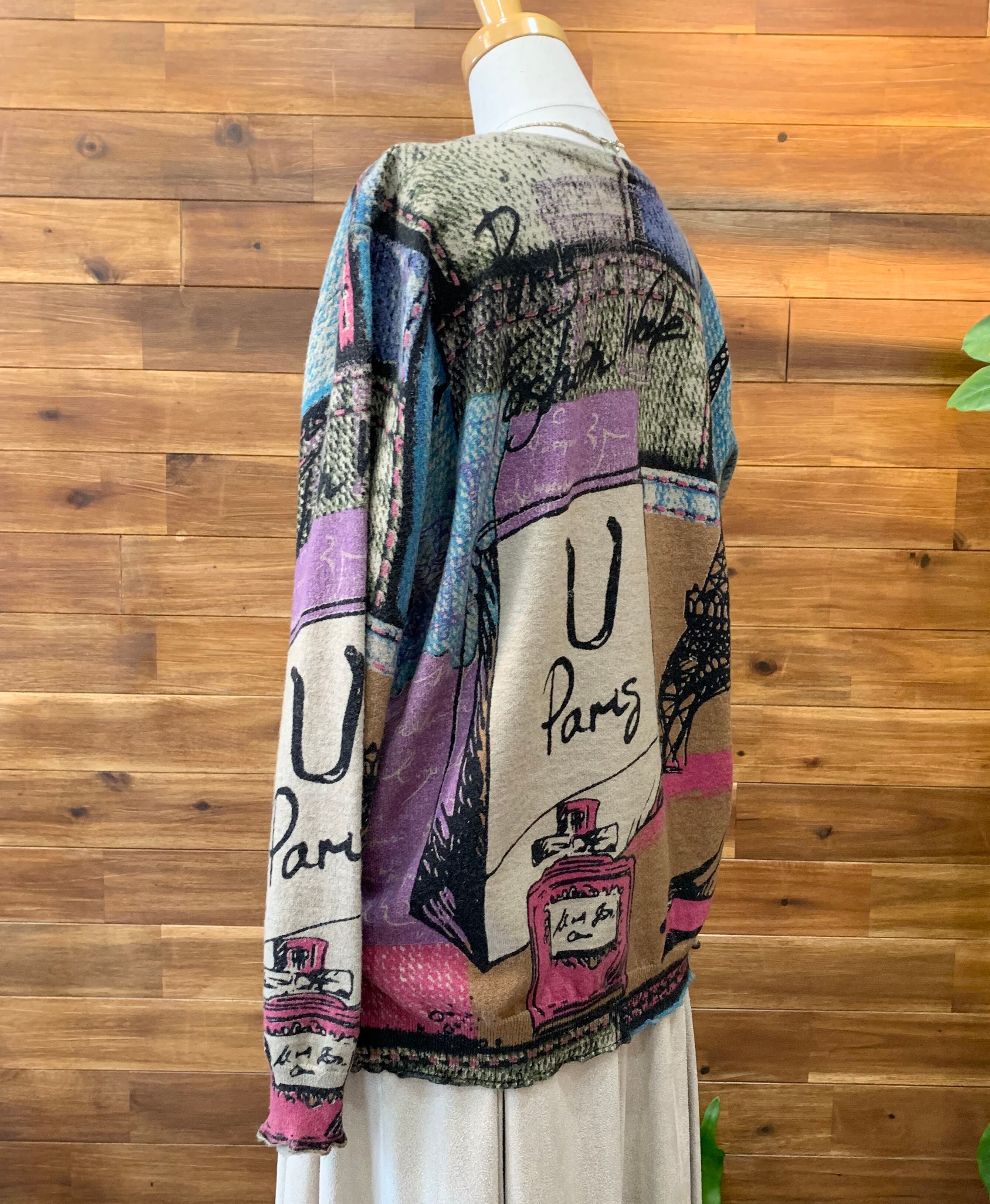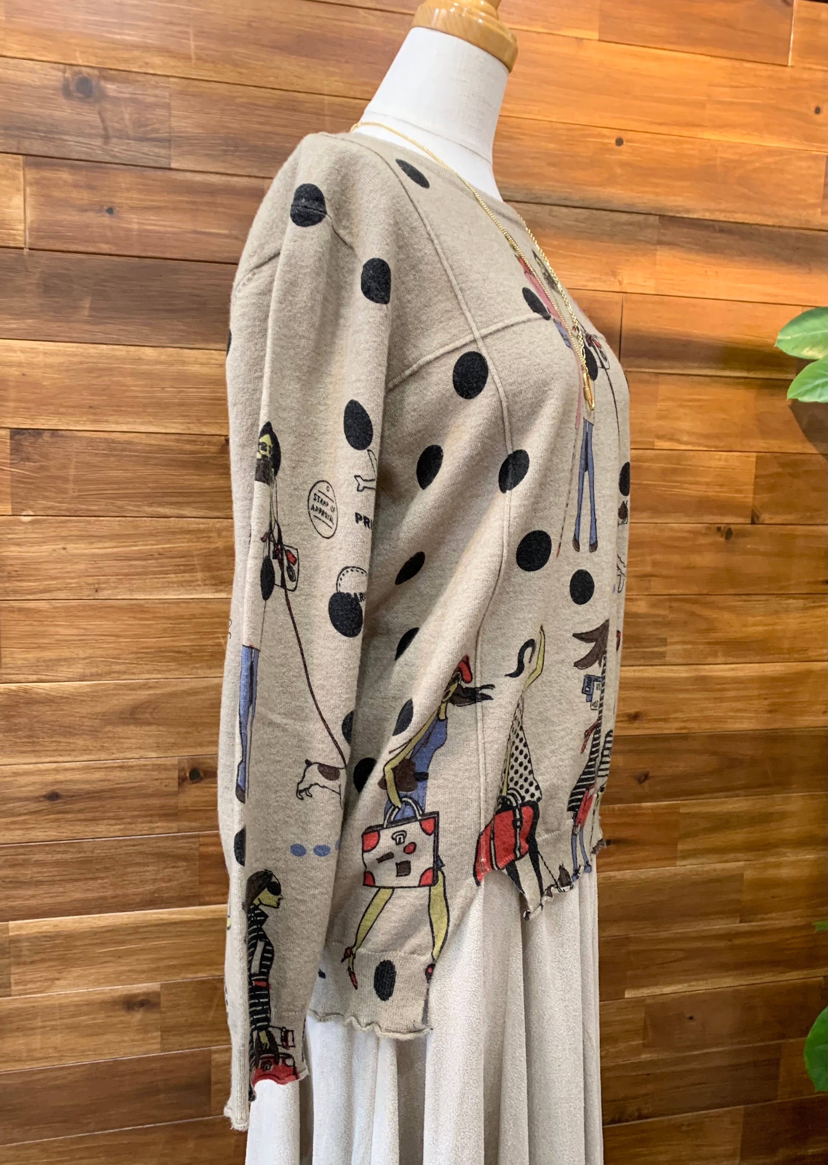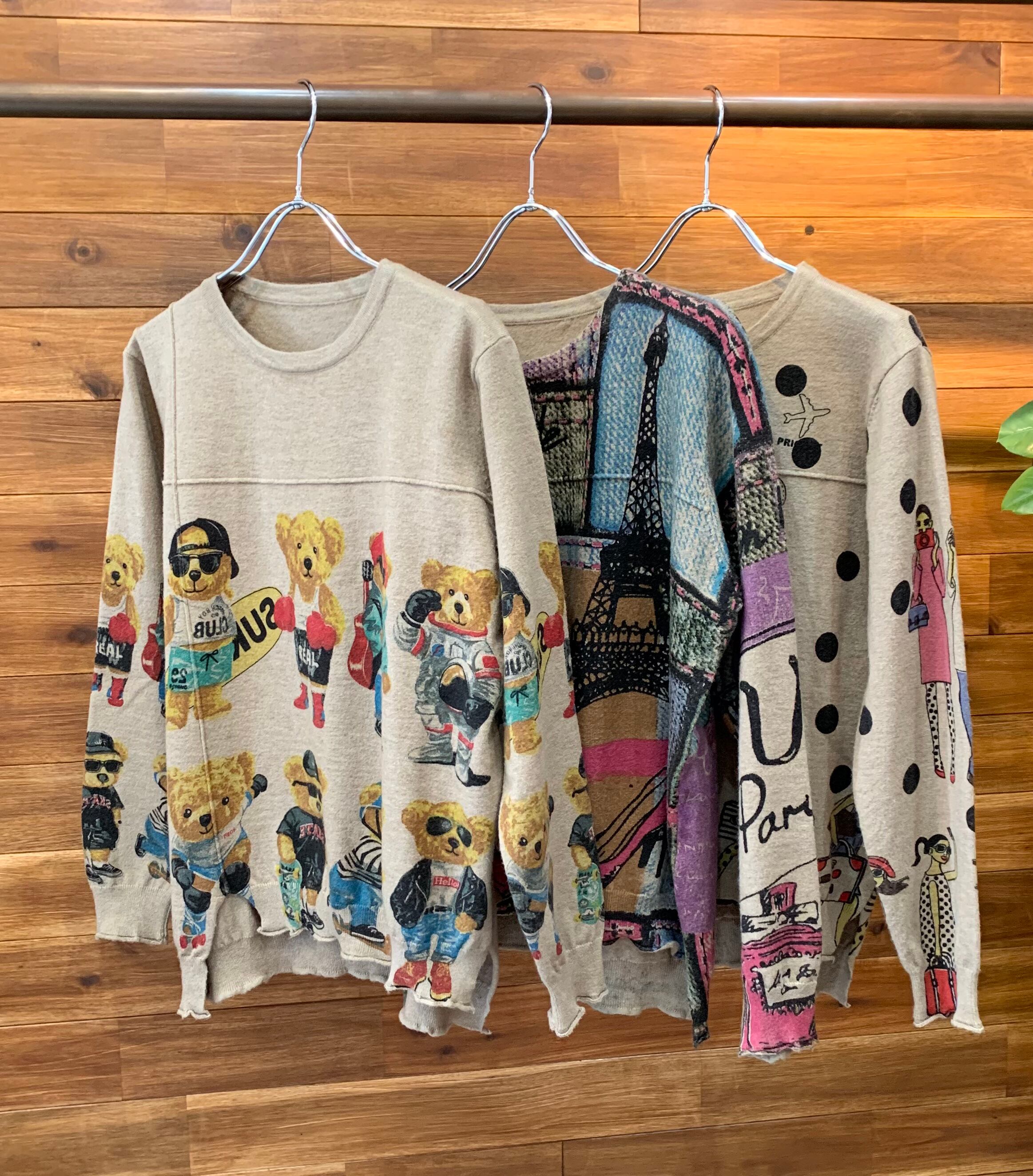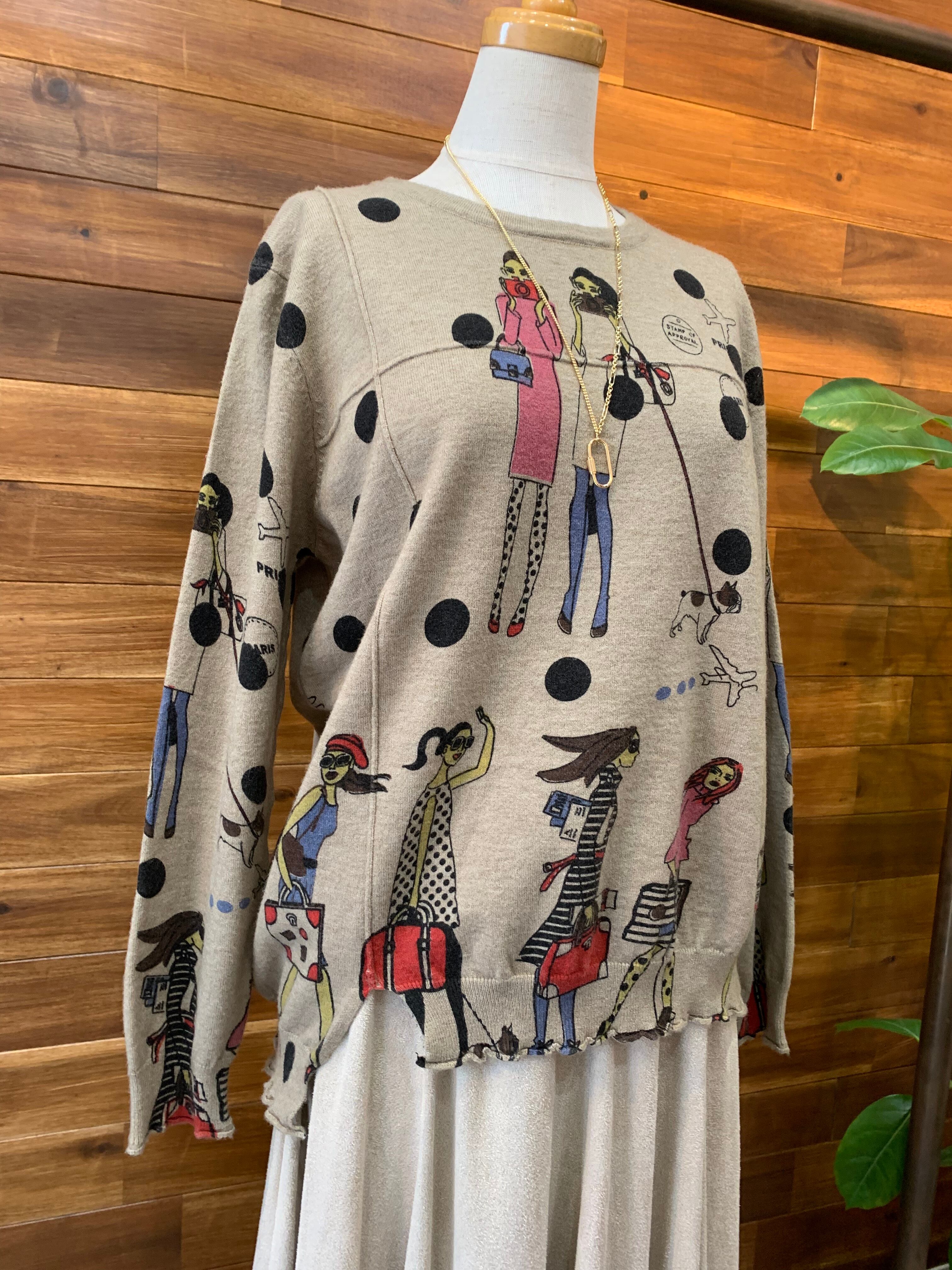 肌触りの柔らかいハイゲージニット地にプリントをしたニットプルオーバー。