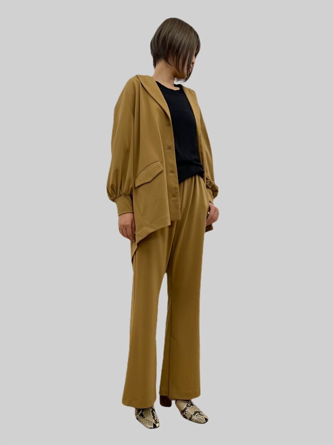 シンプルなテーラードジャケットの雰囲気がありつつも、袖口のリブと背中のタックで、こなれ感があり、着心地も楽々♫