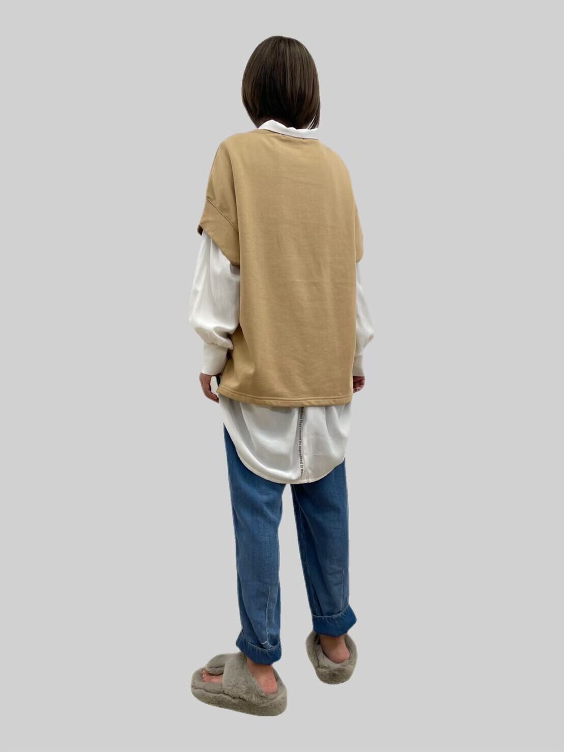 寒い時期はロンTやシャツをレイヤードして、暖かい時期になれば半袖プルオーバーとして着用できる便利なアイテムです