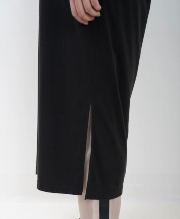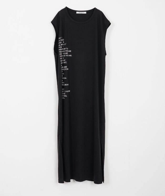 前身頃に長いメッセージロゴをプリントしたマキシカットソーワンピース♪