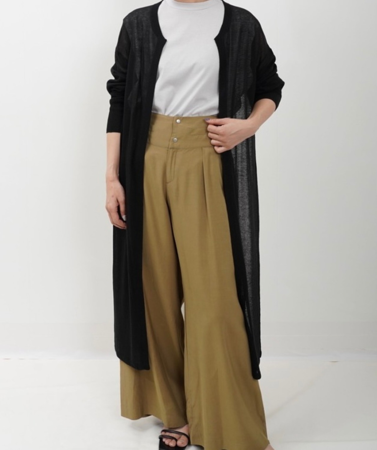 スッキリとしたシルエットのロング丈で、ちょっとした冷房対策にもおすすめ。