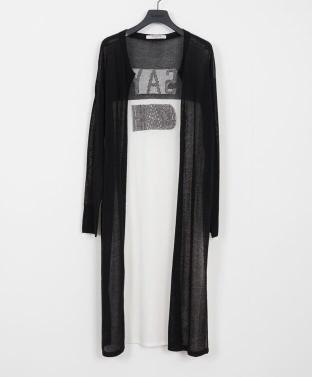 バックロゴシースルーロングカーディガン