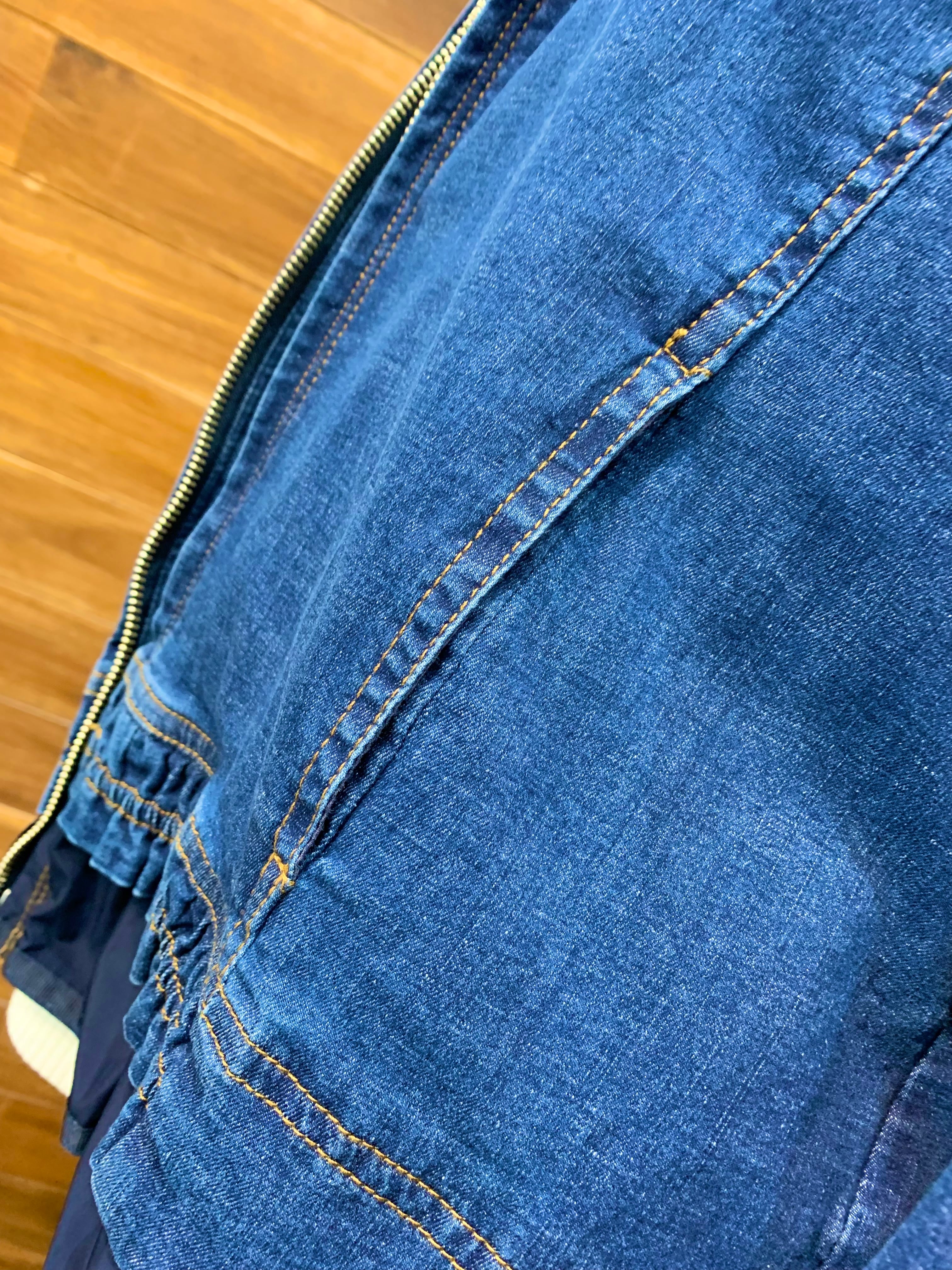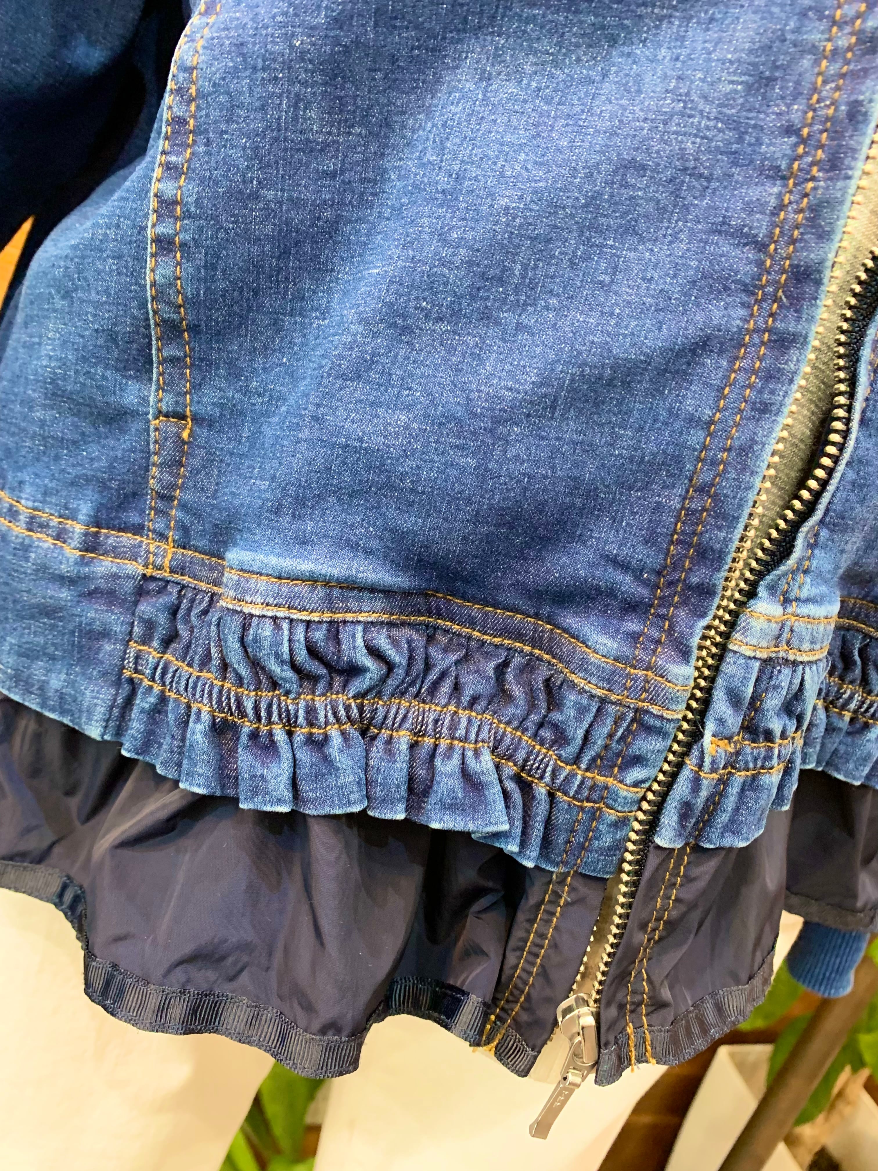 裾の別布フリルと後ろのティアードデザインが可愛いストレッチデニムのブルゾン♡