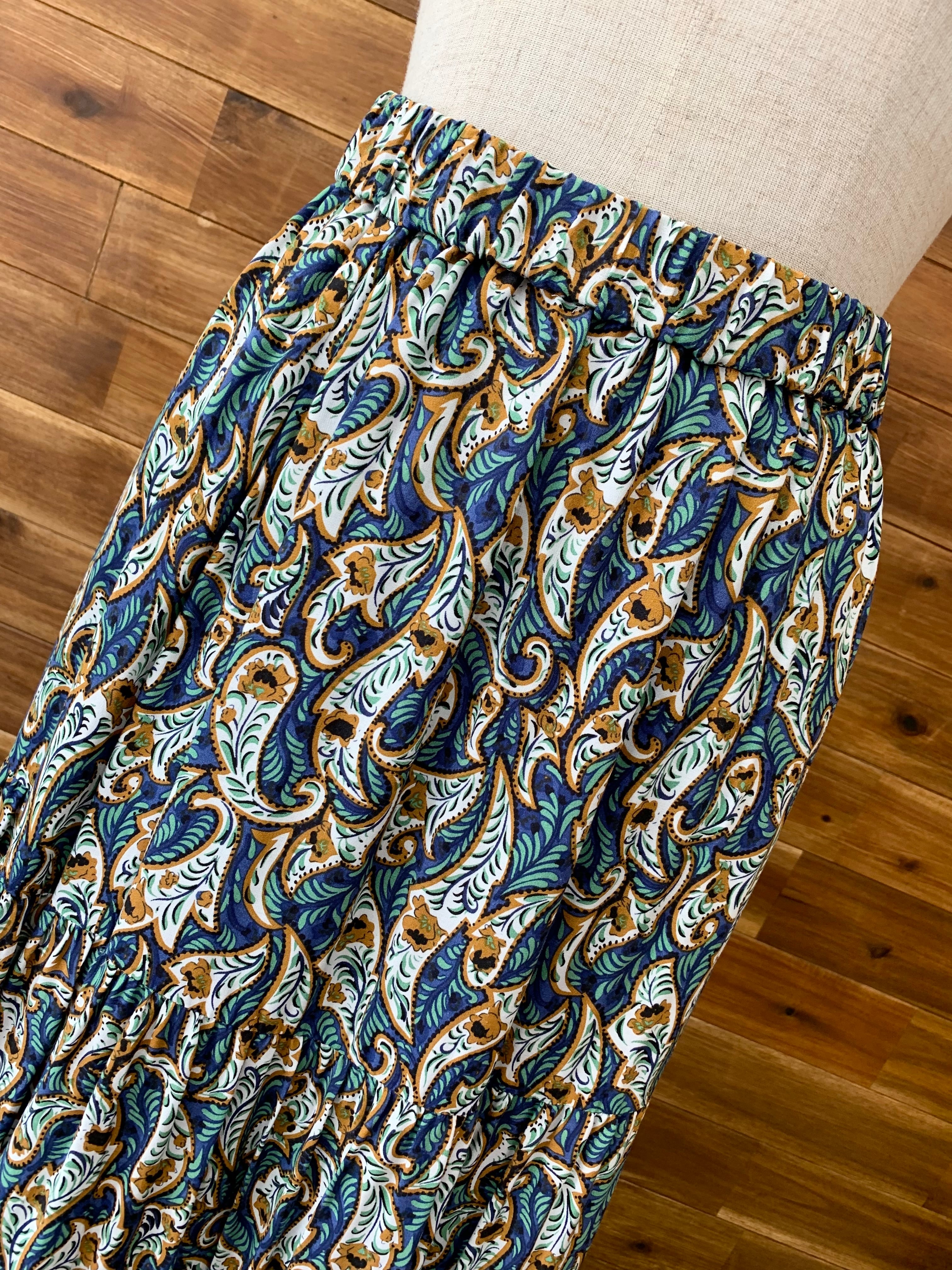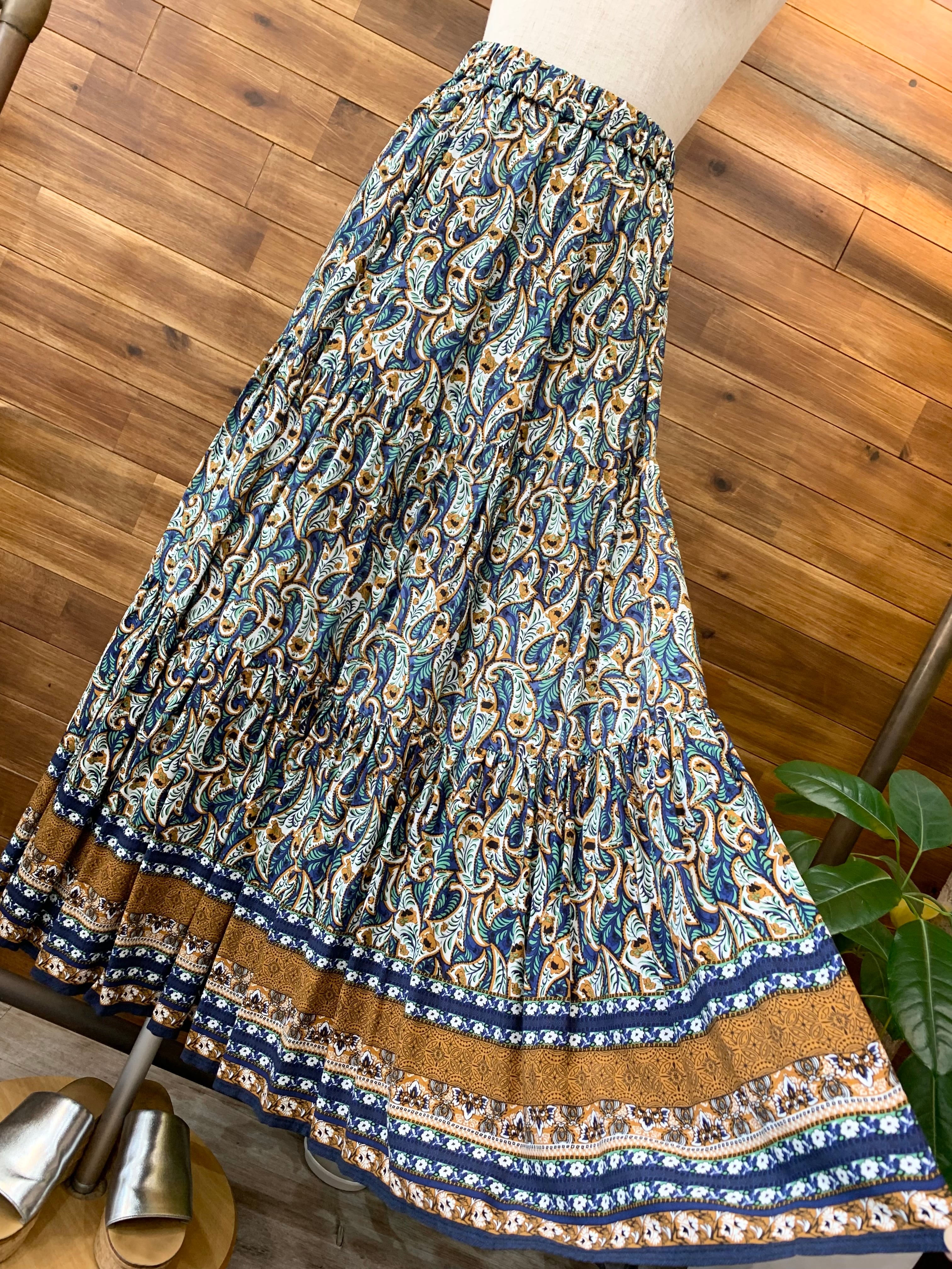フラワーモチーフの柄が目を引く古着テイストなティアードスカート♪