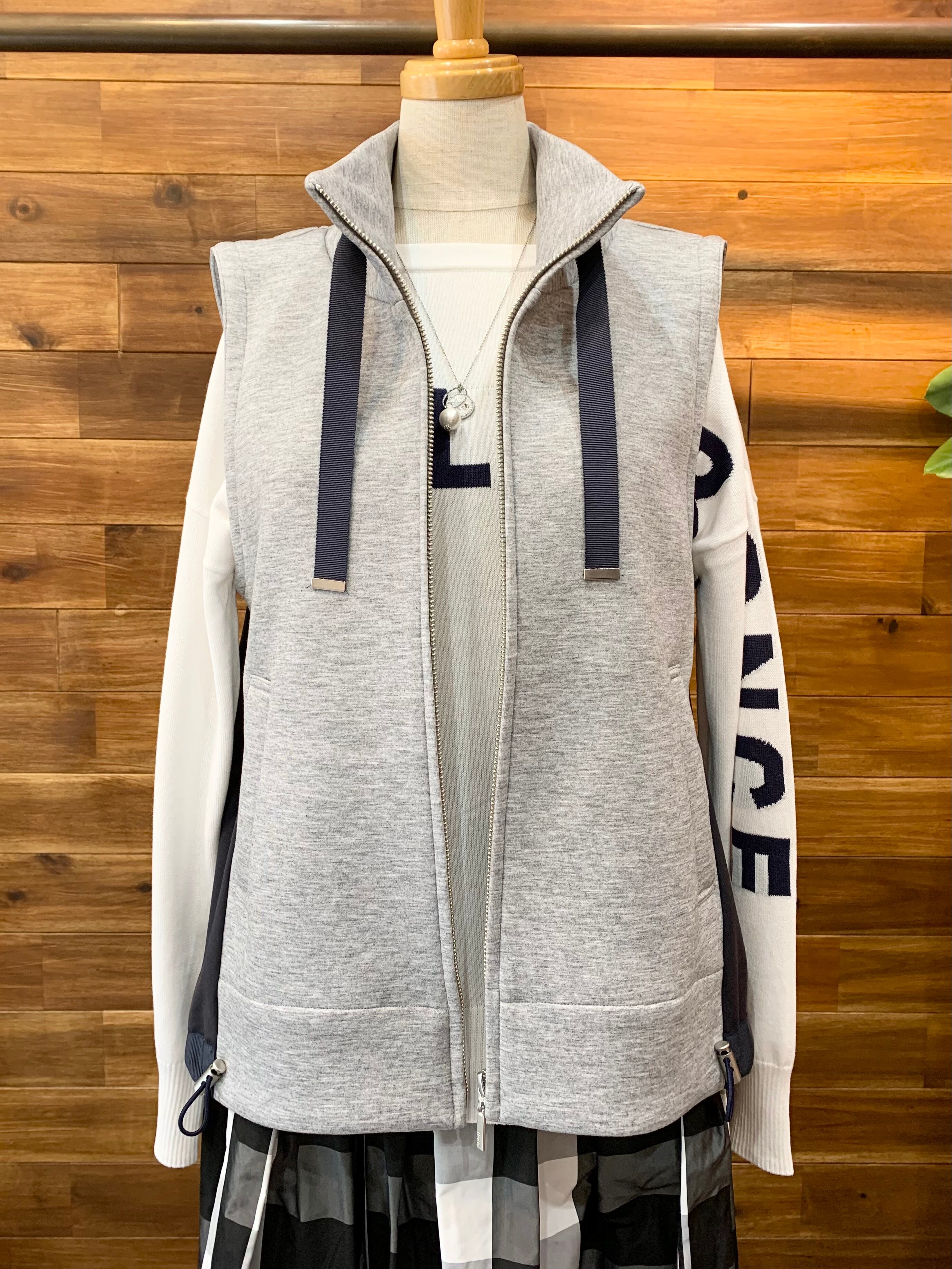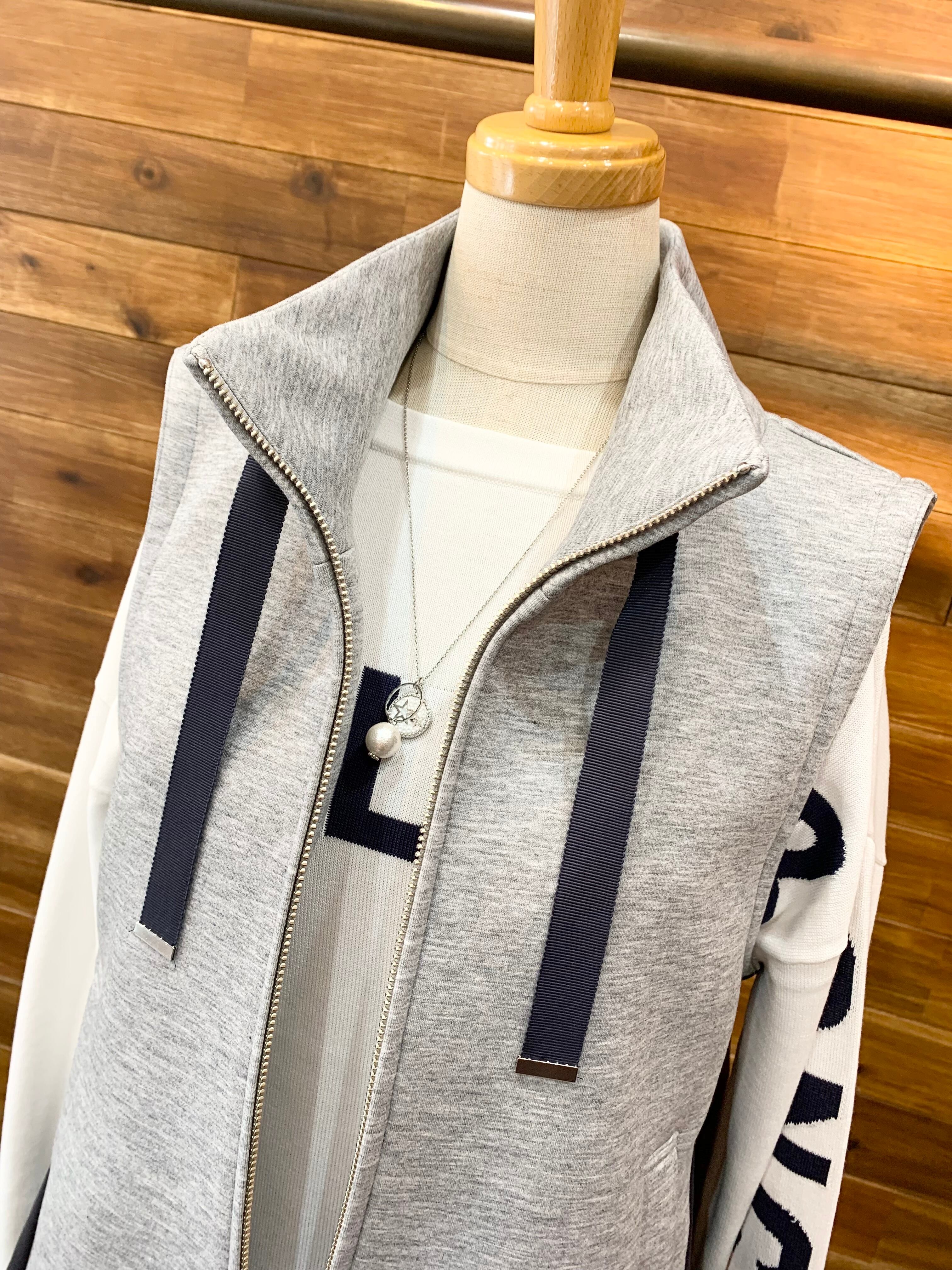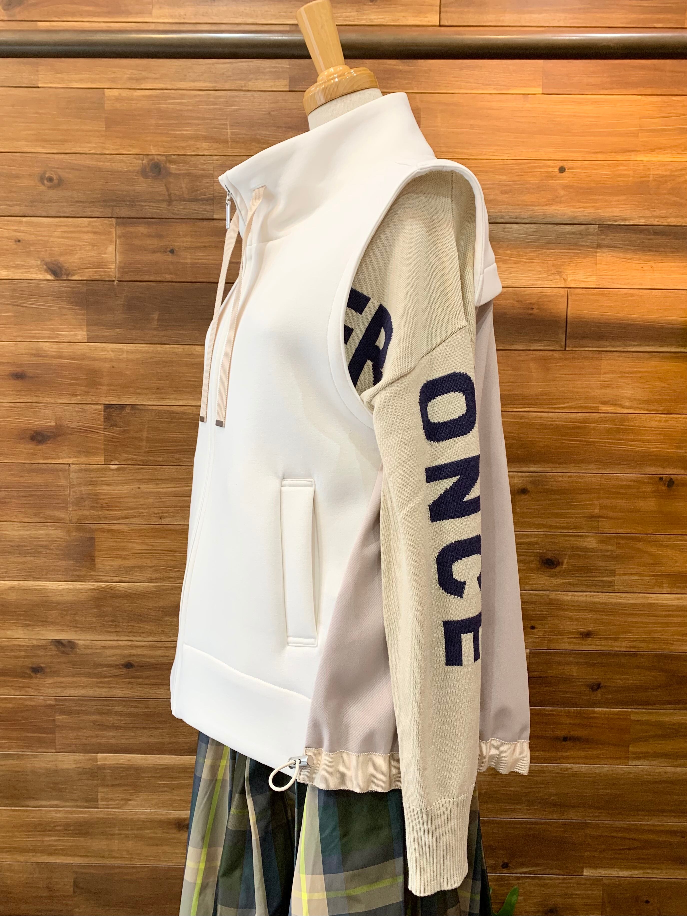 フロントはダンボールニット素材、後ろはポリエステル×綿の切り替えデザインが可愛いベスト♫
