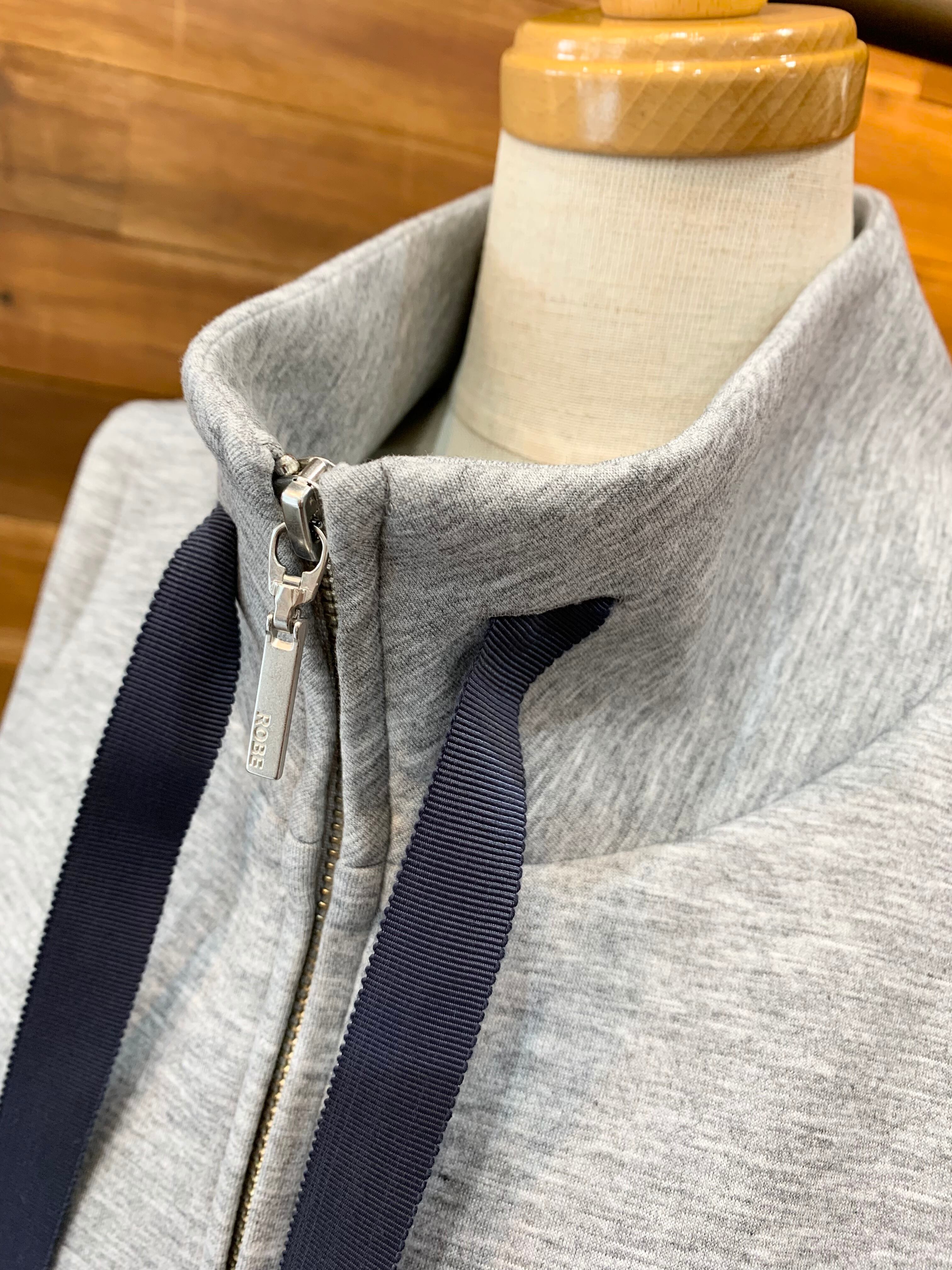 フロントの高めのネックの立ち上がりで、顔まわりがスッキリ見えします◎