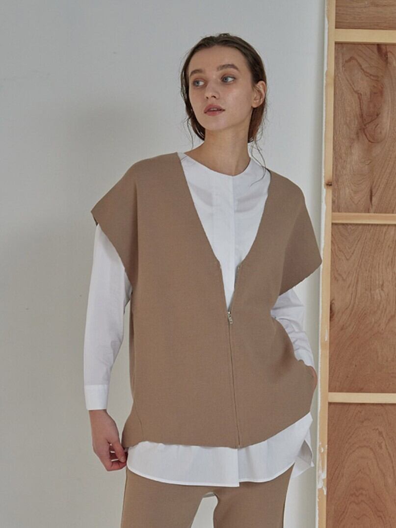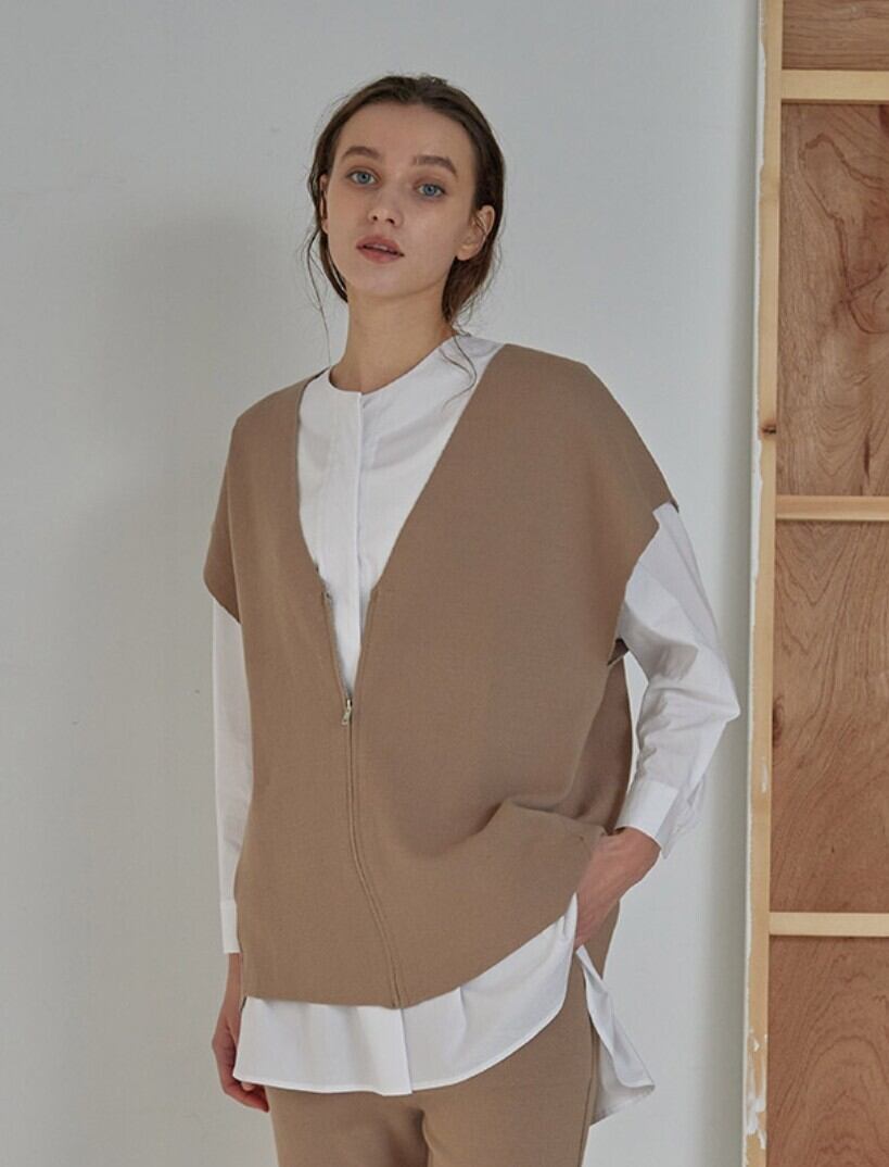 ジップのシルバーが雰囲気をぐっとお洒落にしてくれるベスト。