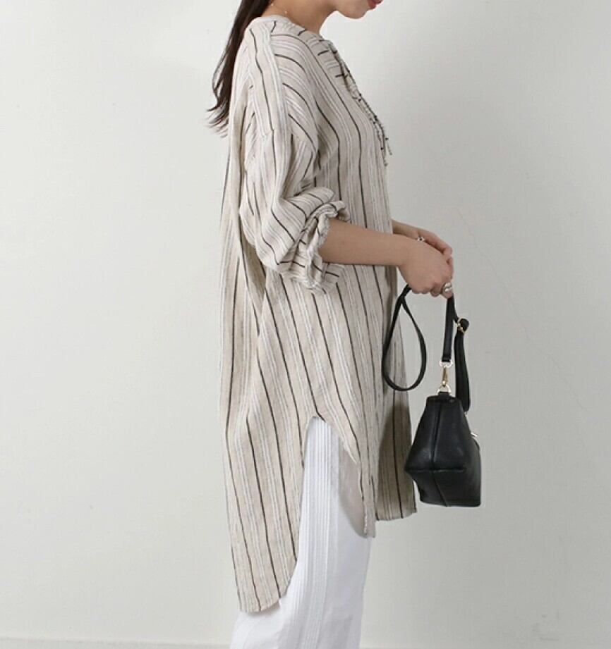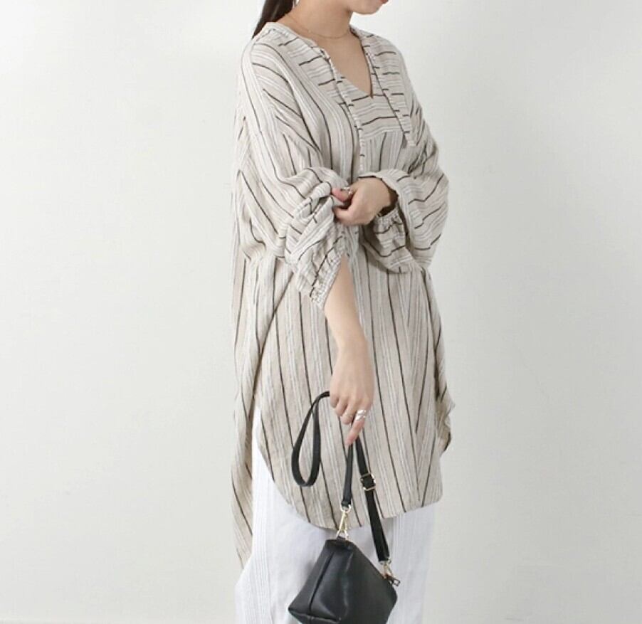 ナチュラルな風合いが印象的な、ストライプスキッパーシャツ♡
