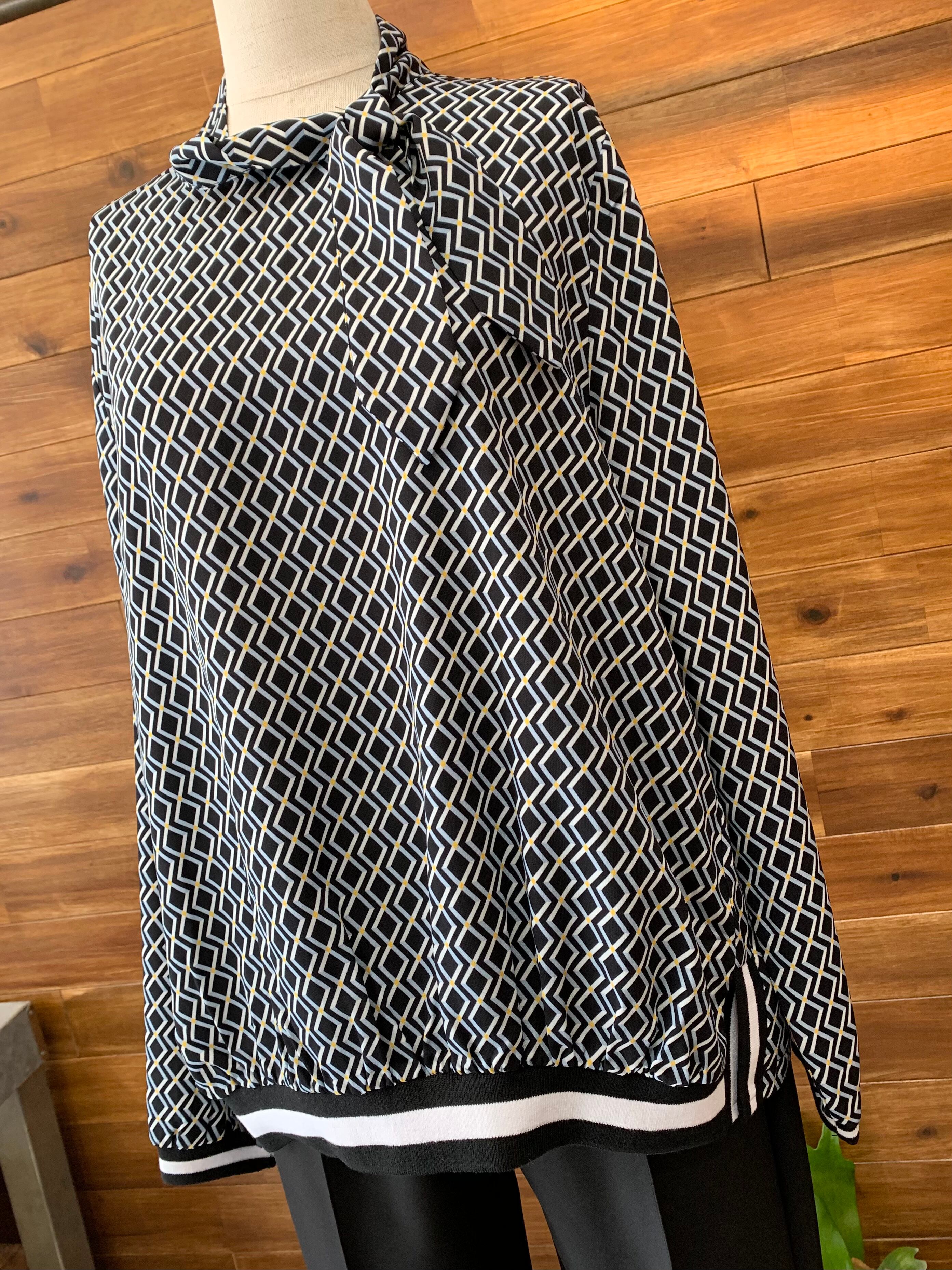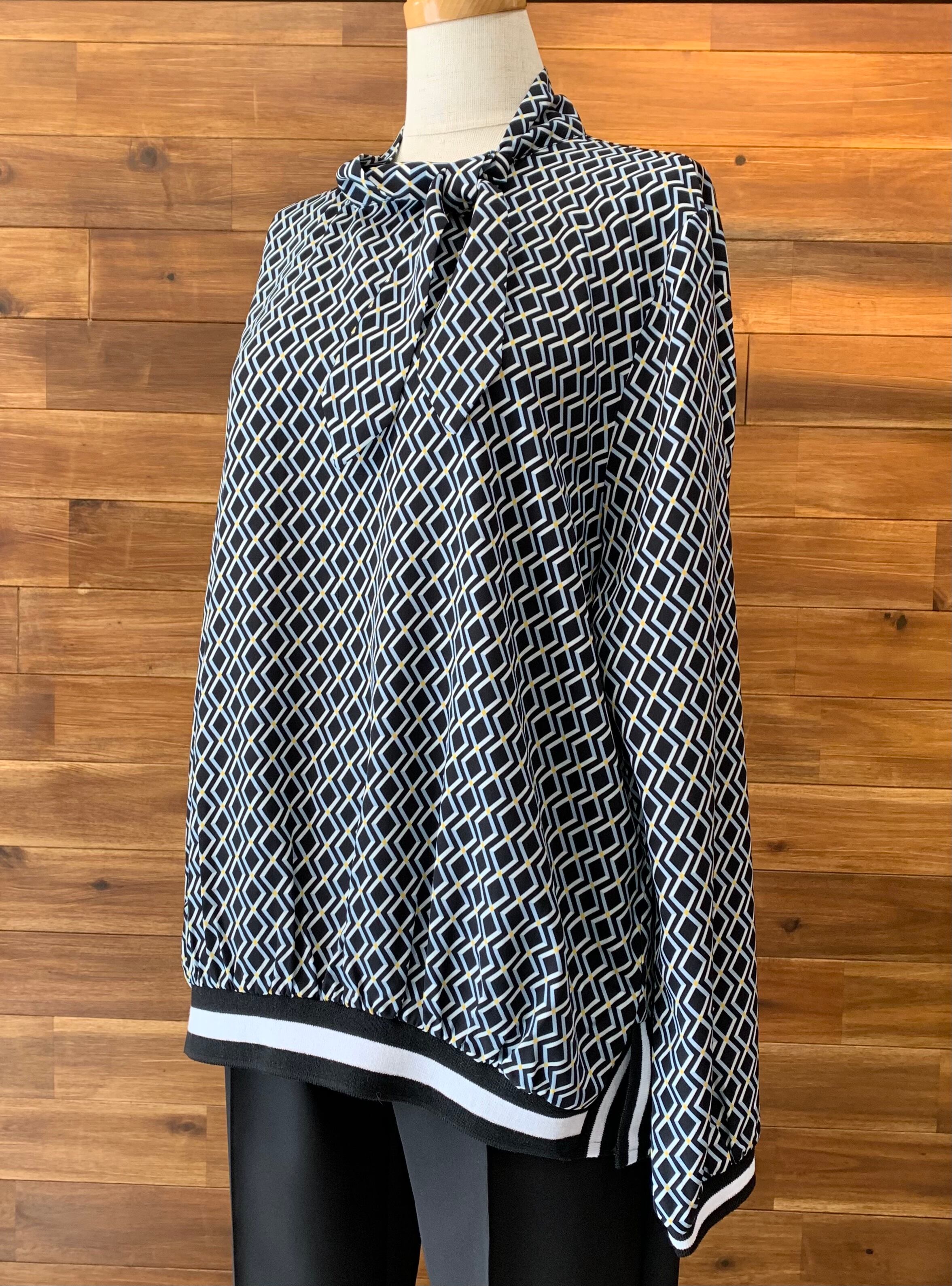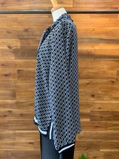 袖口と裾にホワイトとブラックのリブが施されていて、堅くなり過ぎずオーバーブラウスとしてサッとお洒落に着て頂けます♡
