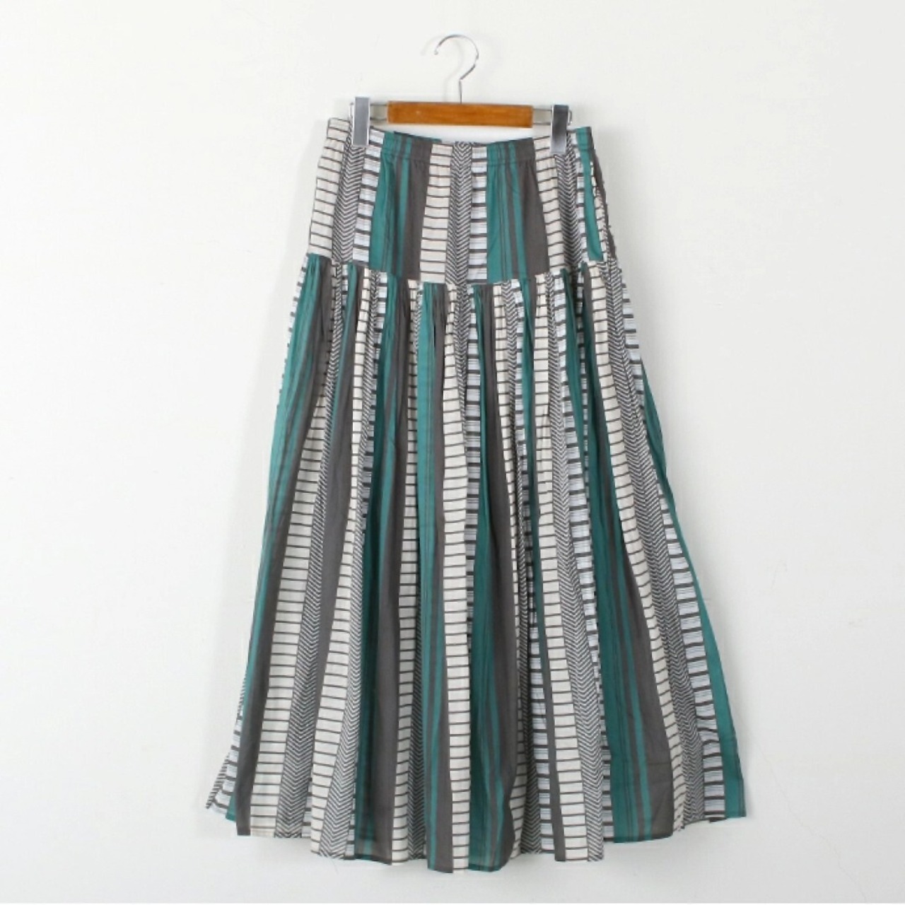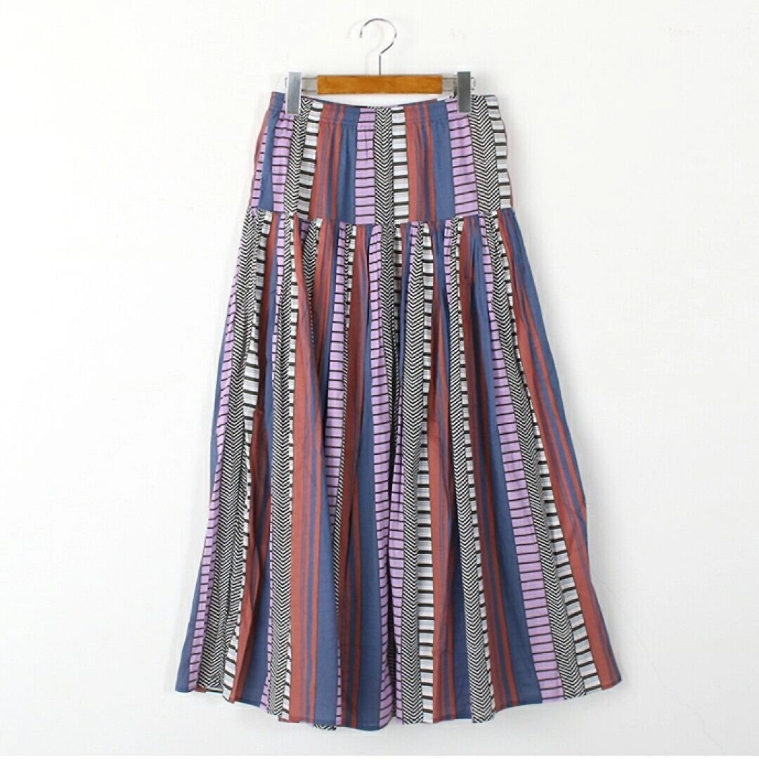 Le Melange(ル・メランジュ)よりマルチストライプ プリントギャザースカート。