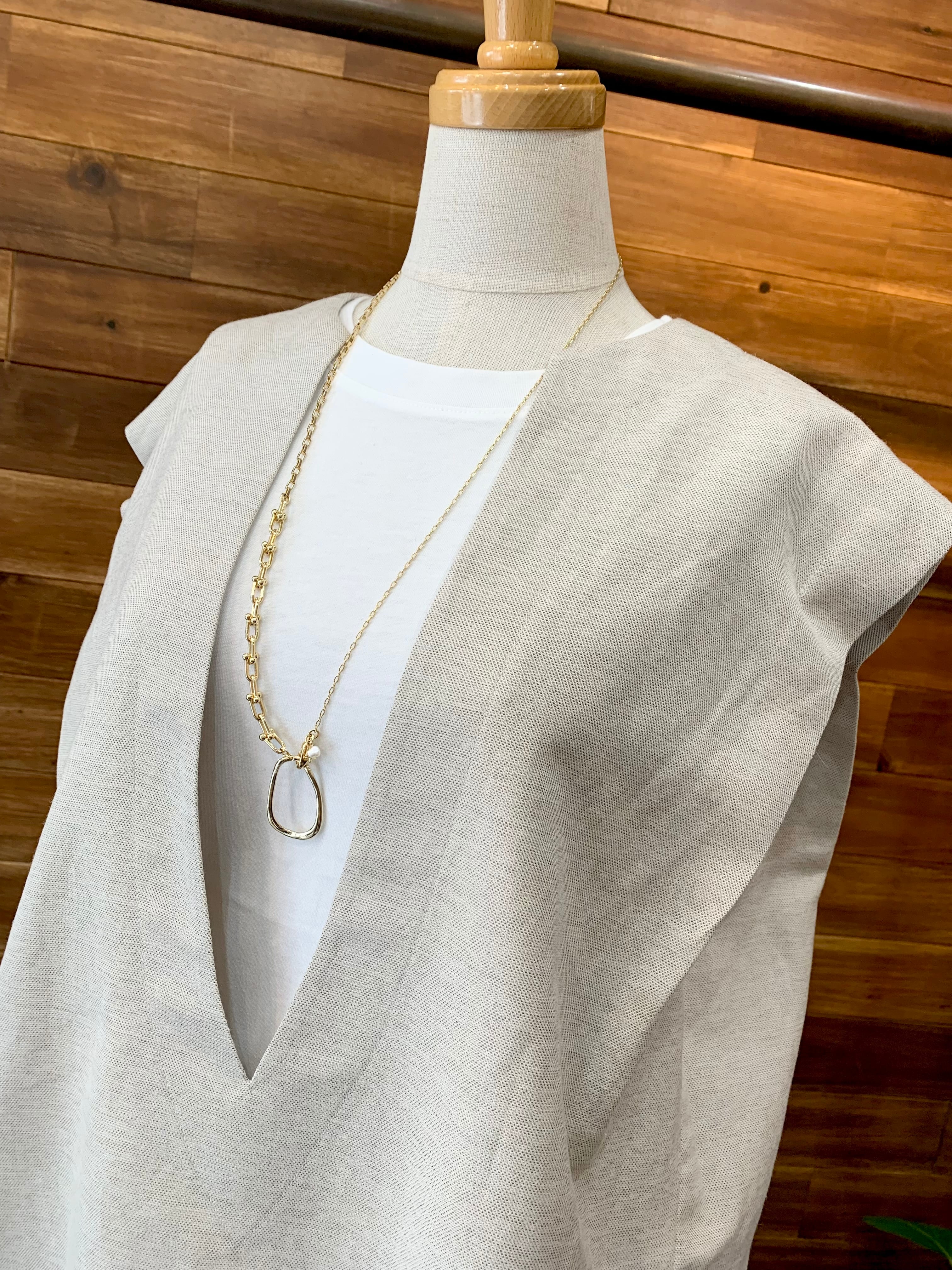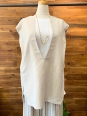 ゆったりしたサイズ感に、深いVネックとサイドのスリットですっきりと着こなせます。