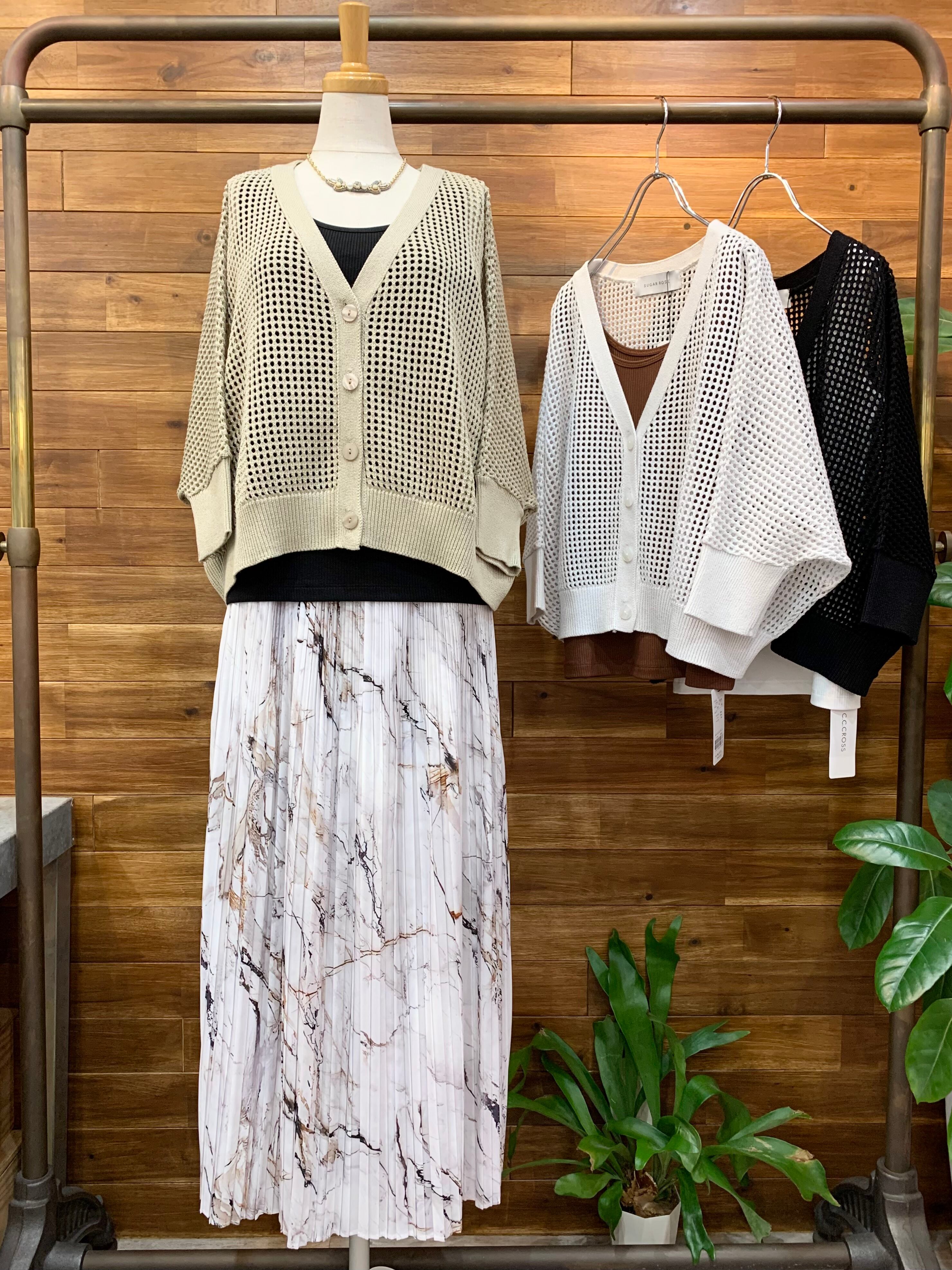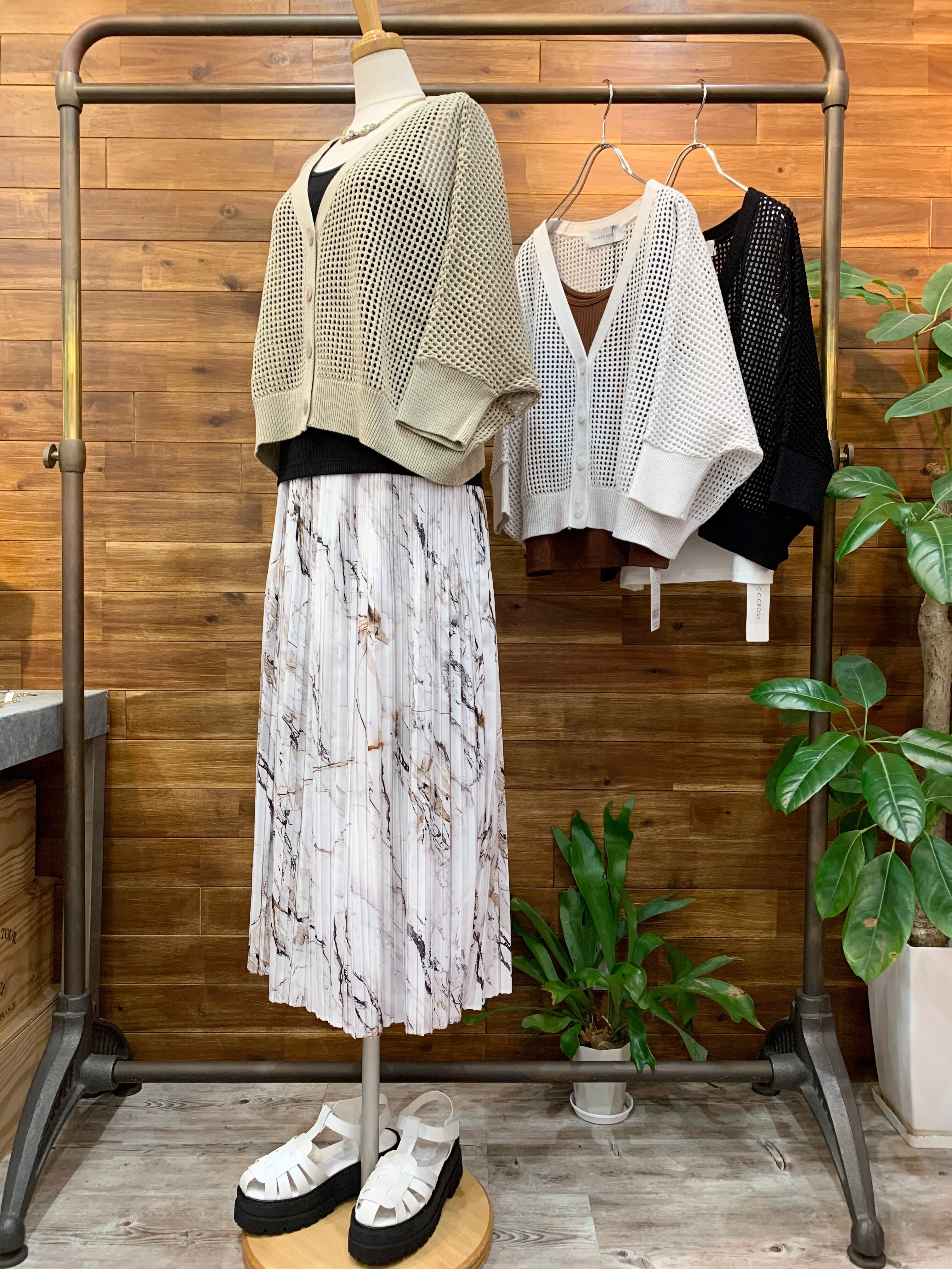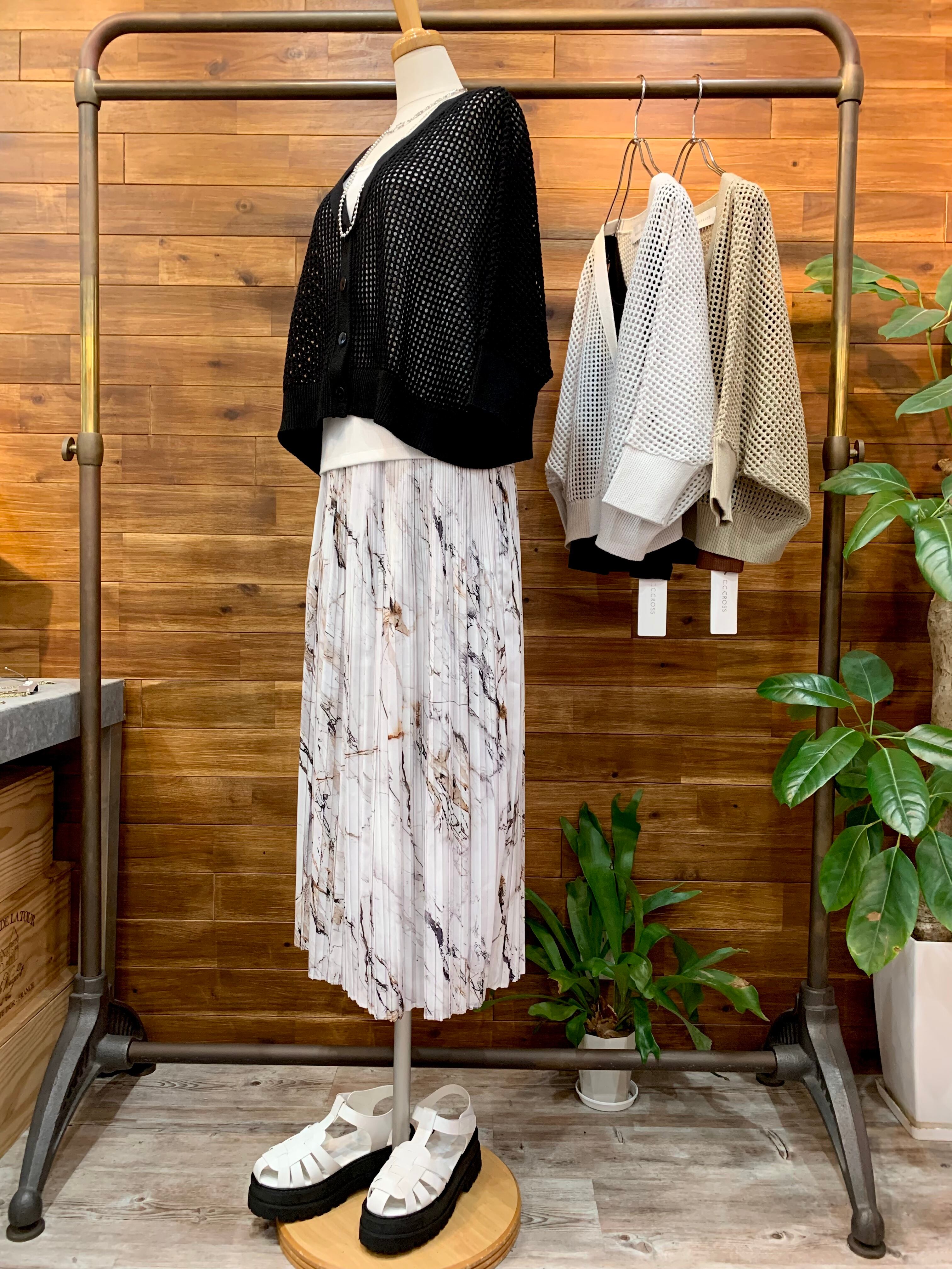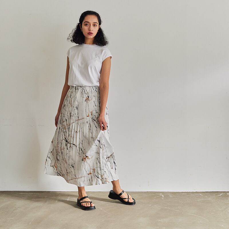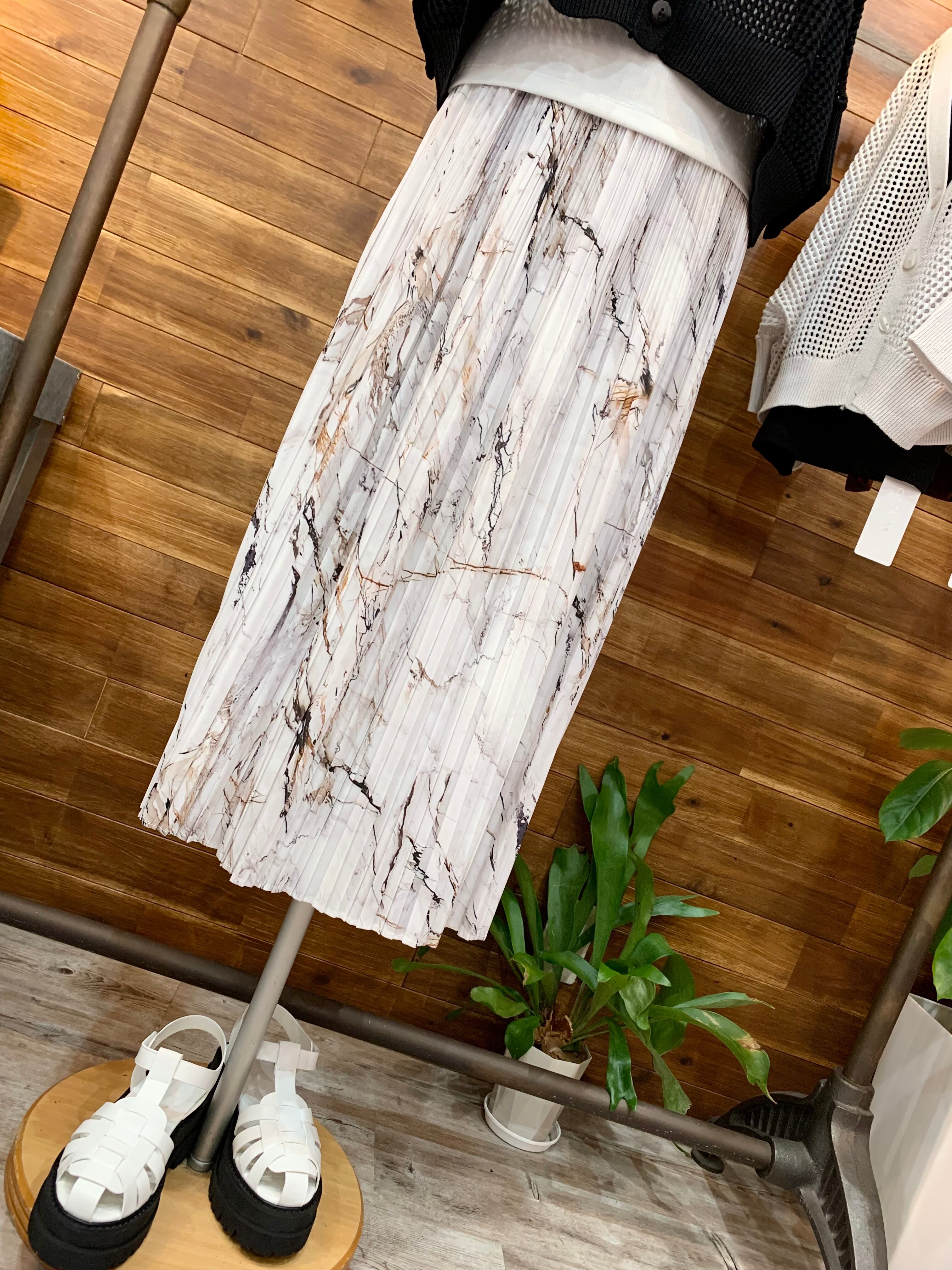 マーブル柄が大人っぽいプリーツスカート。
