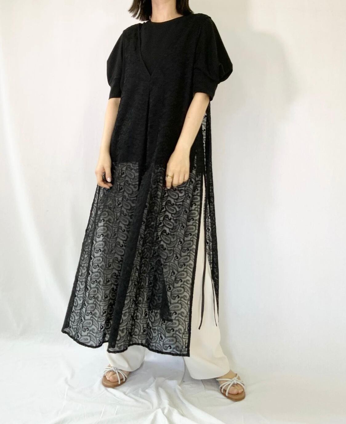 サイドの深いスリット&リボンが抜け感をプラス♪