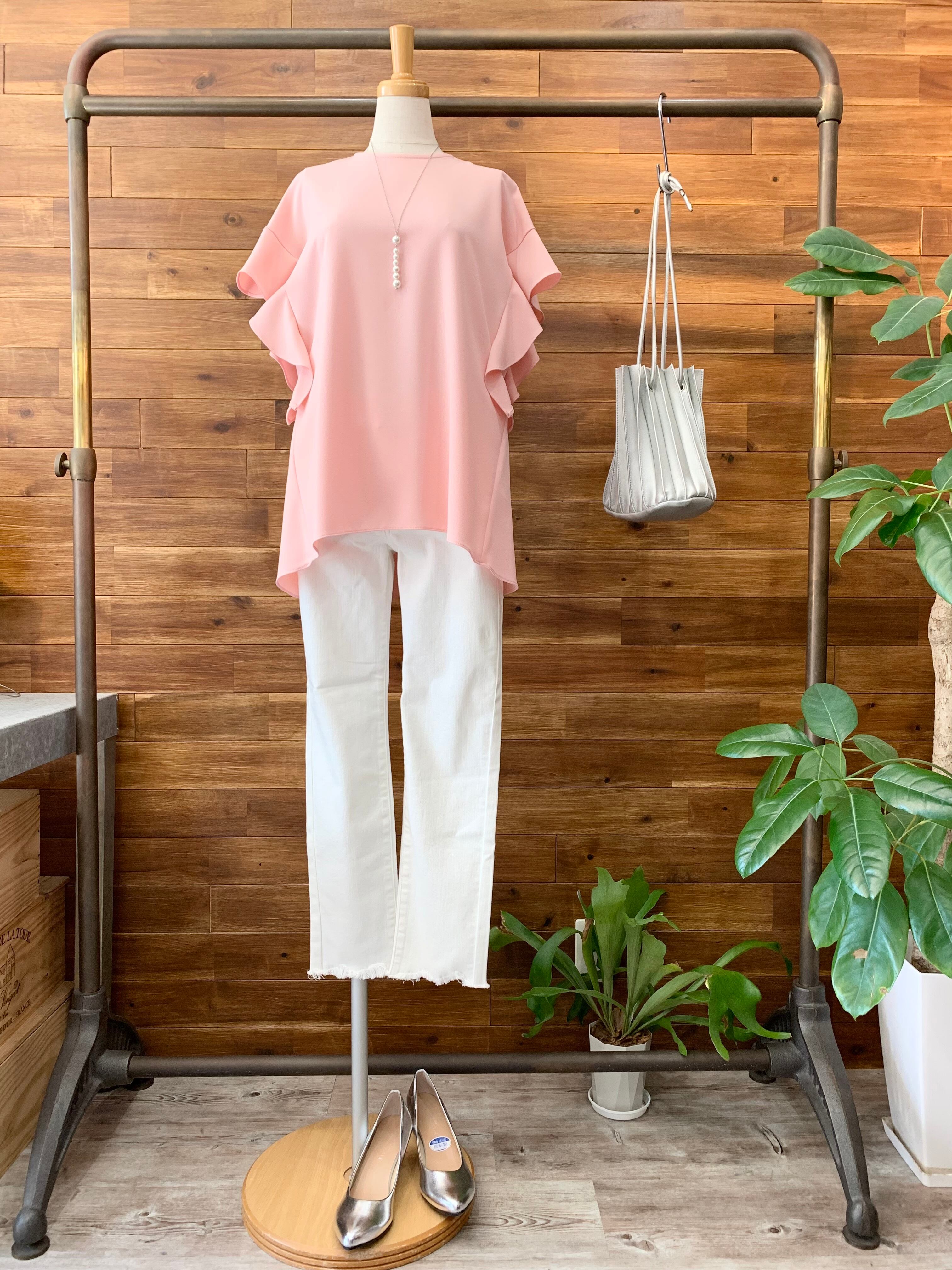 立体的なお袖のフリルデザインが体型カバーと女性らしさを叶えてくれます!(^^)!