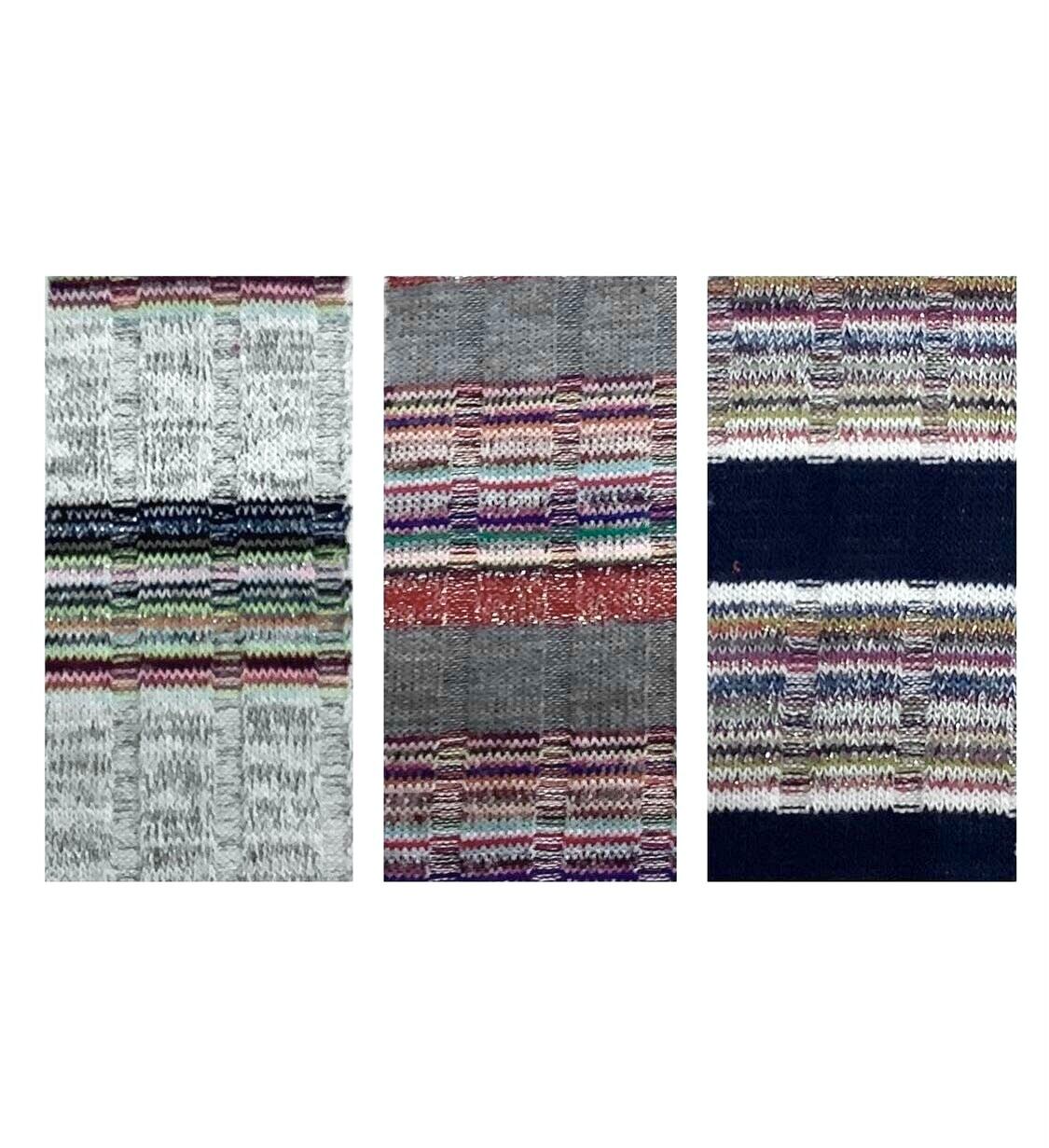 リブのような縦柄の地模様に、ラメが入ったマルチカラーのボーダーがとっても可愛いポイント♪
