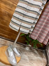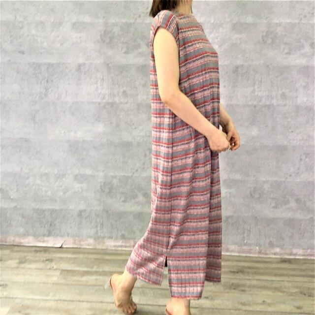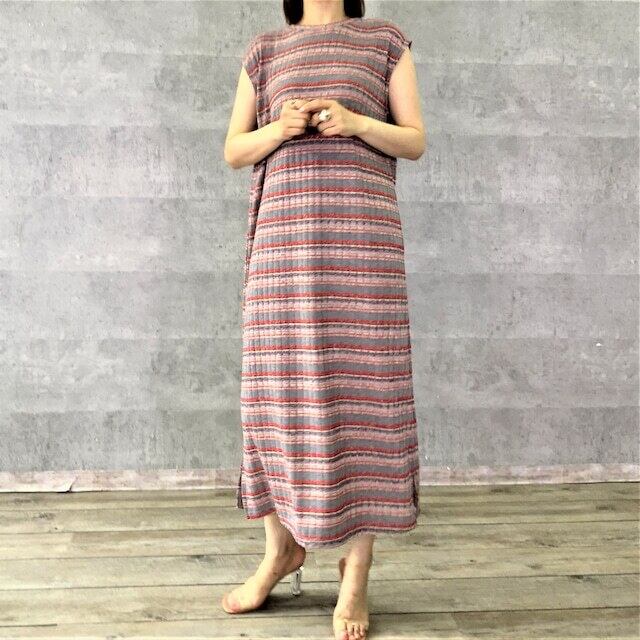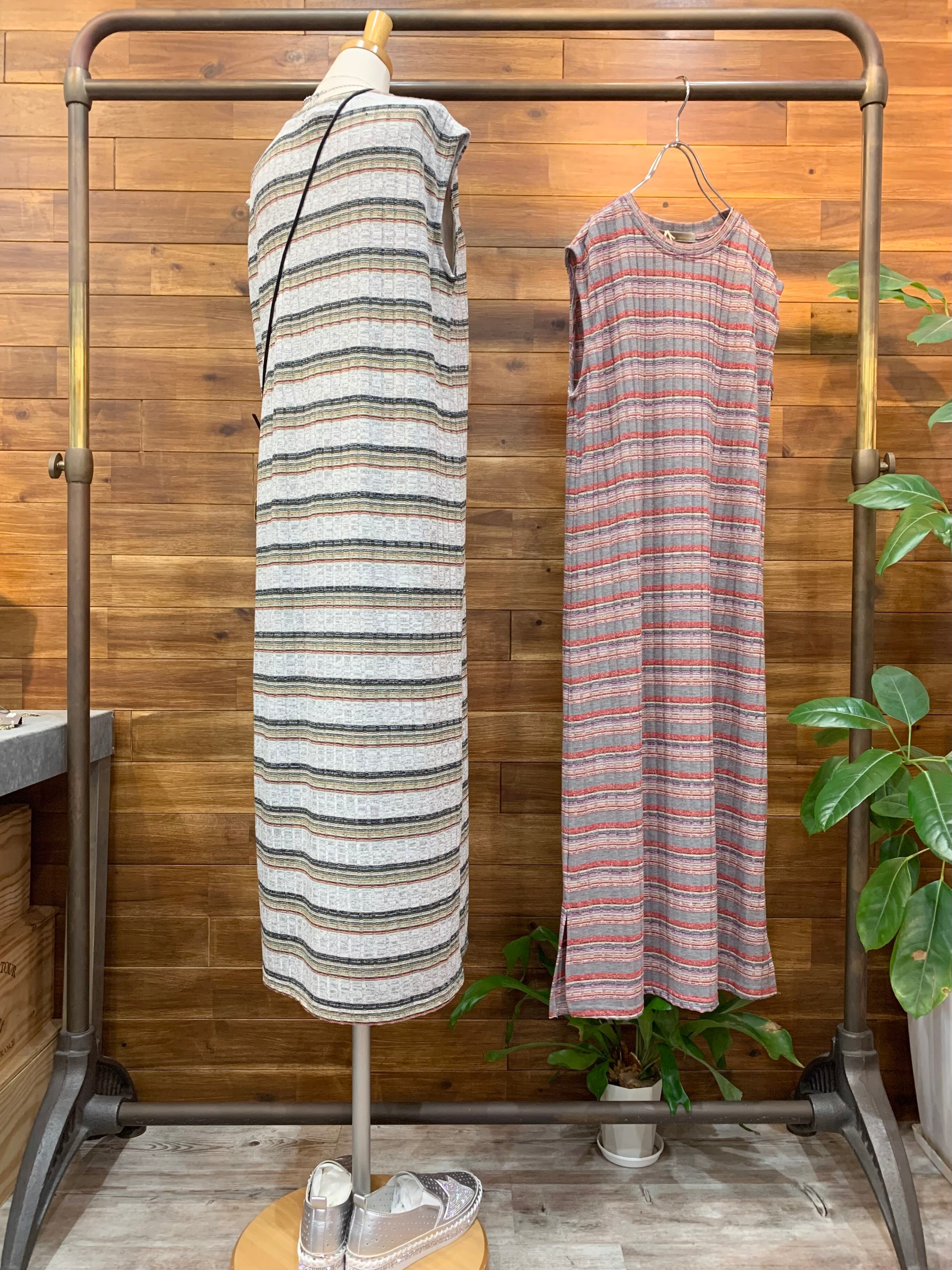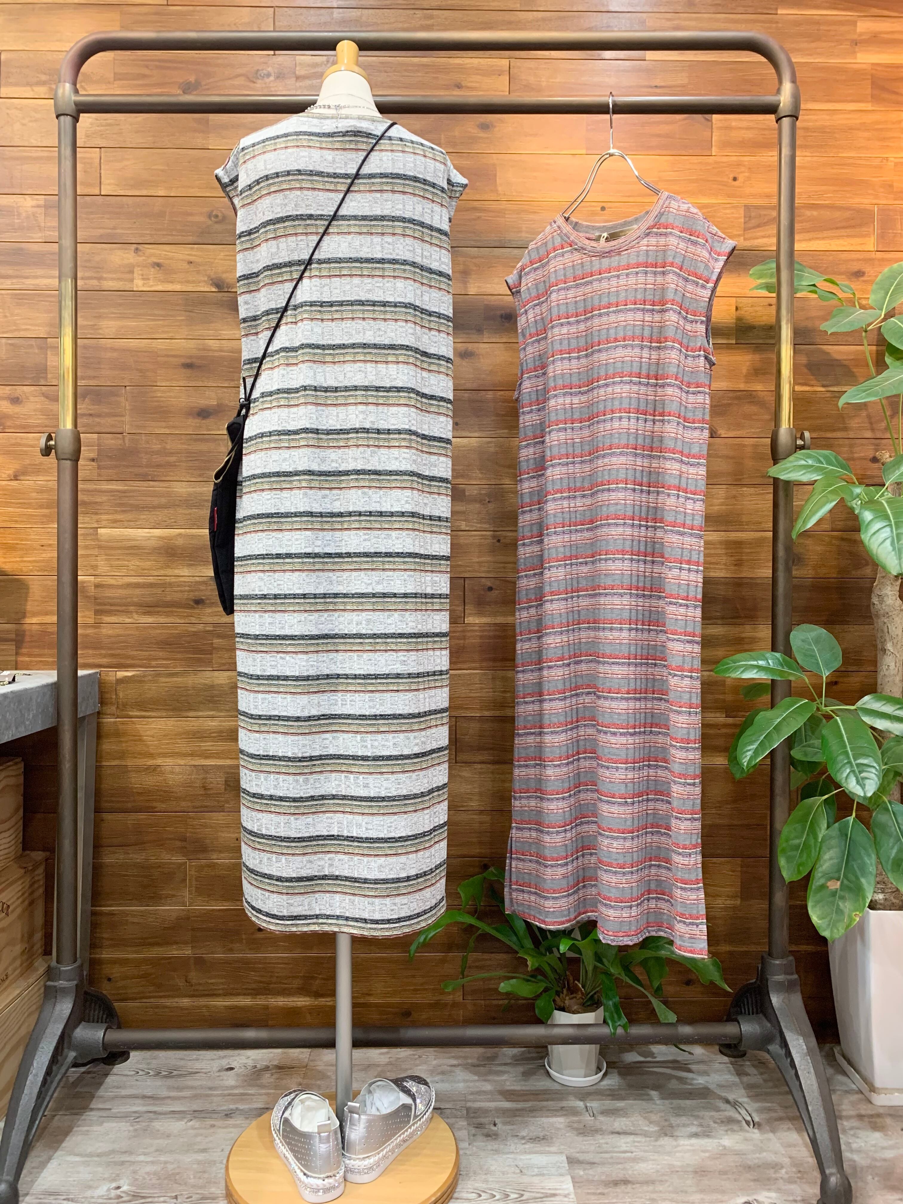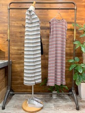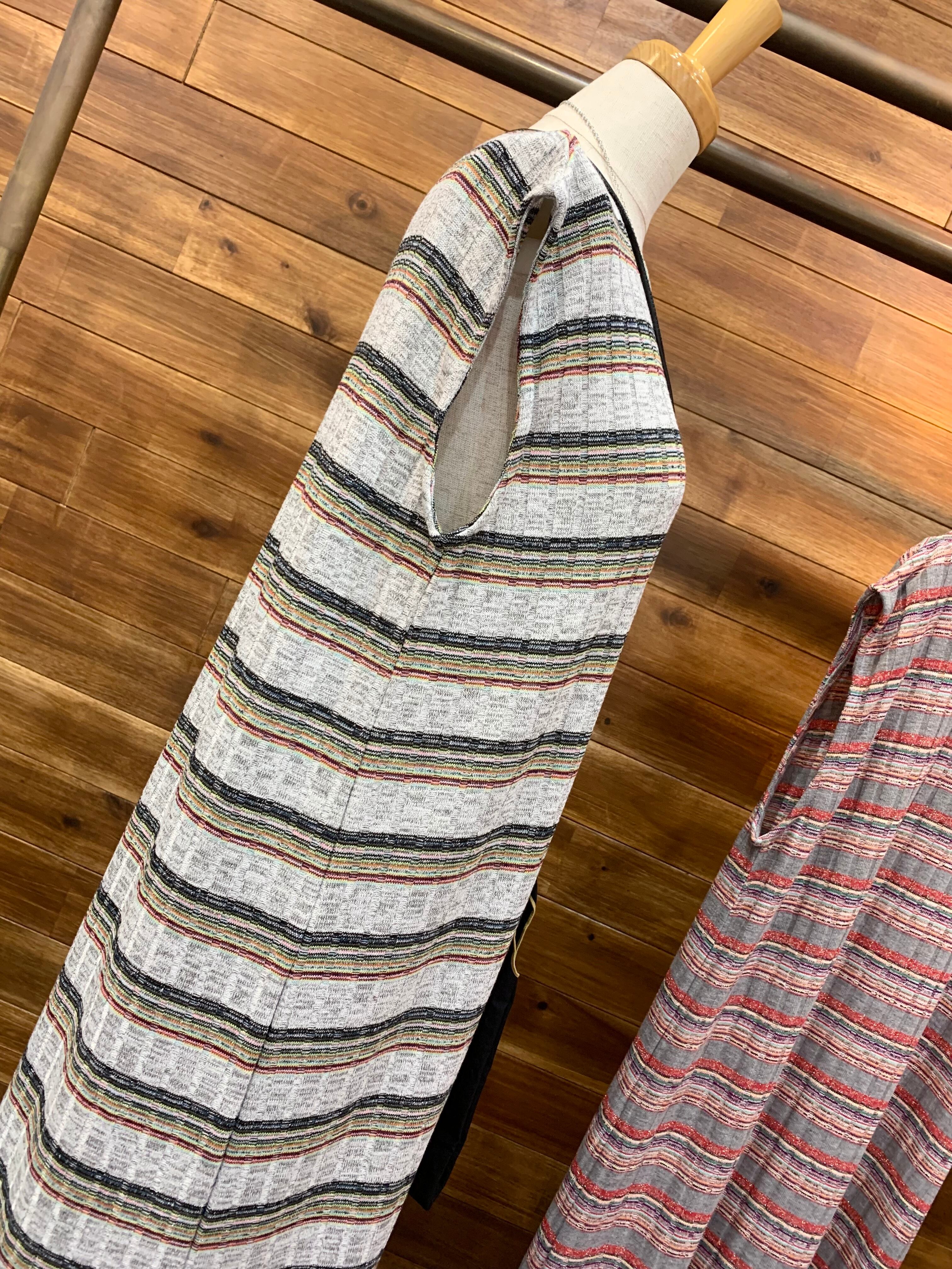 裾両サイドスリットが入ったストンとしたシンプルなデザインと、遊び心のあるボーダー柄とのバランスが可愛いです♡