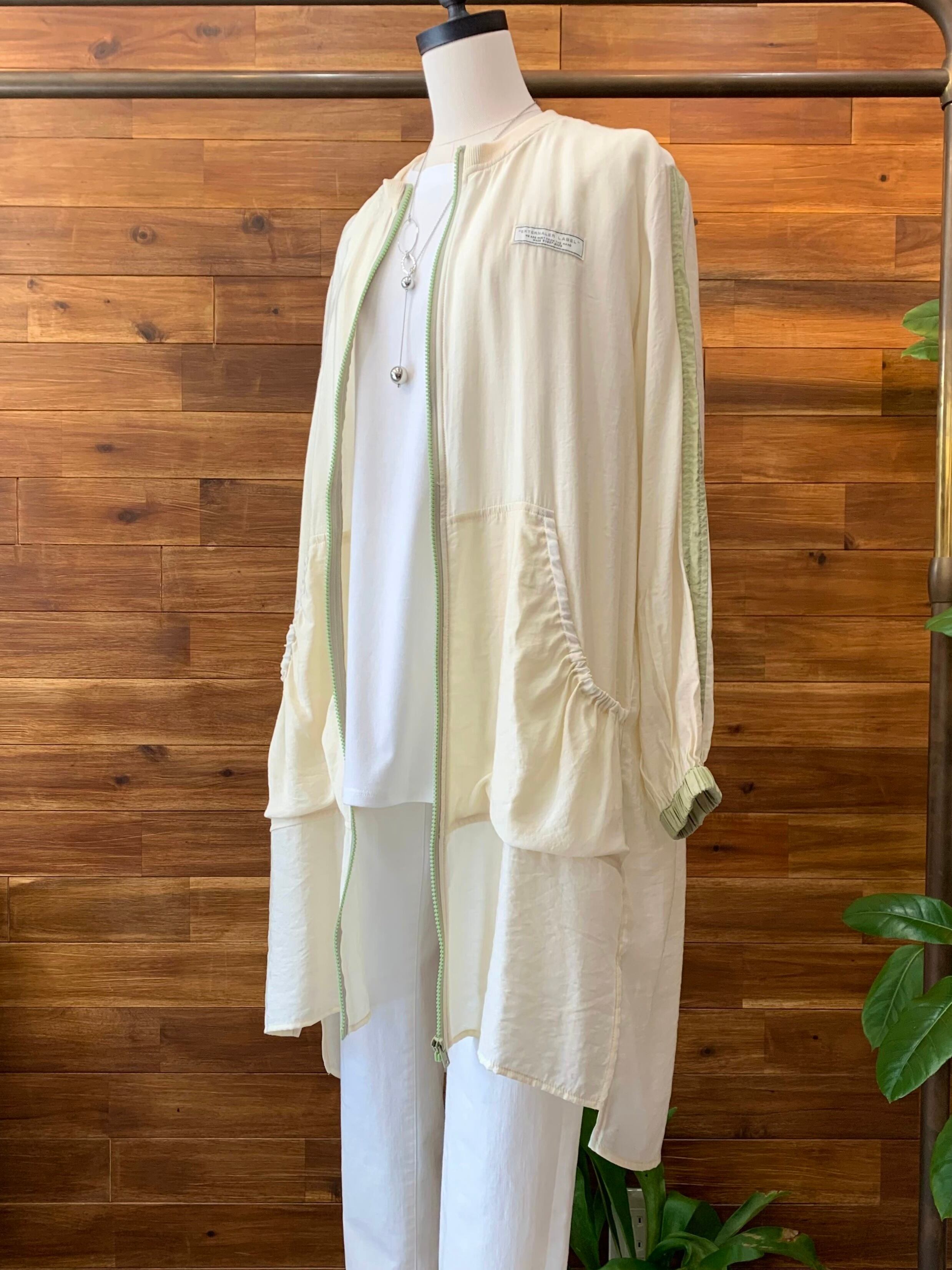 サラサラとした軽い素材でシワも気にならず、気軽にサッと羽織っていただけるロングブルゾン♫