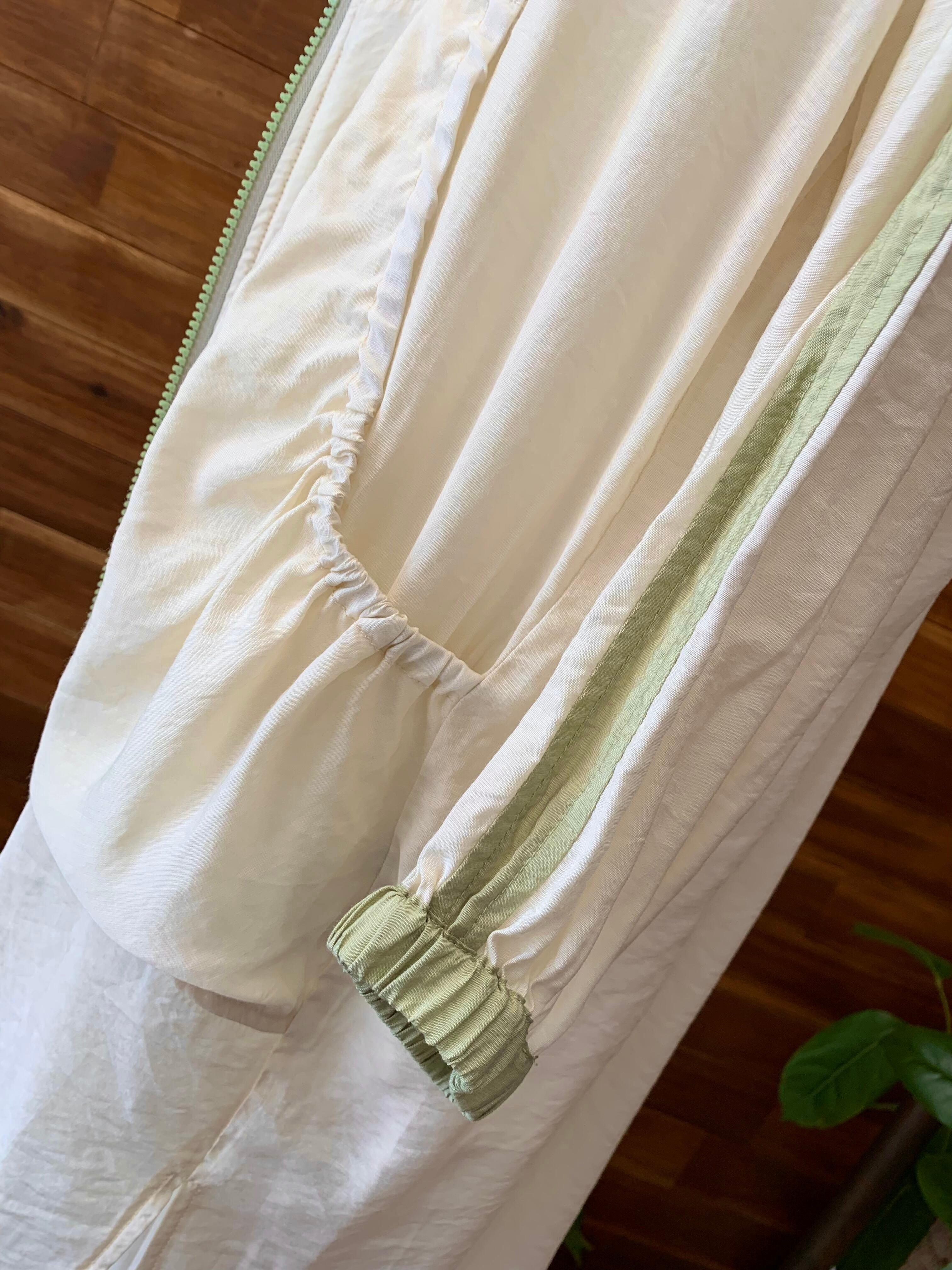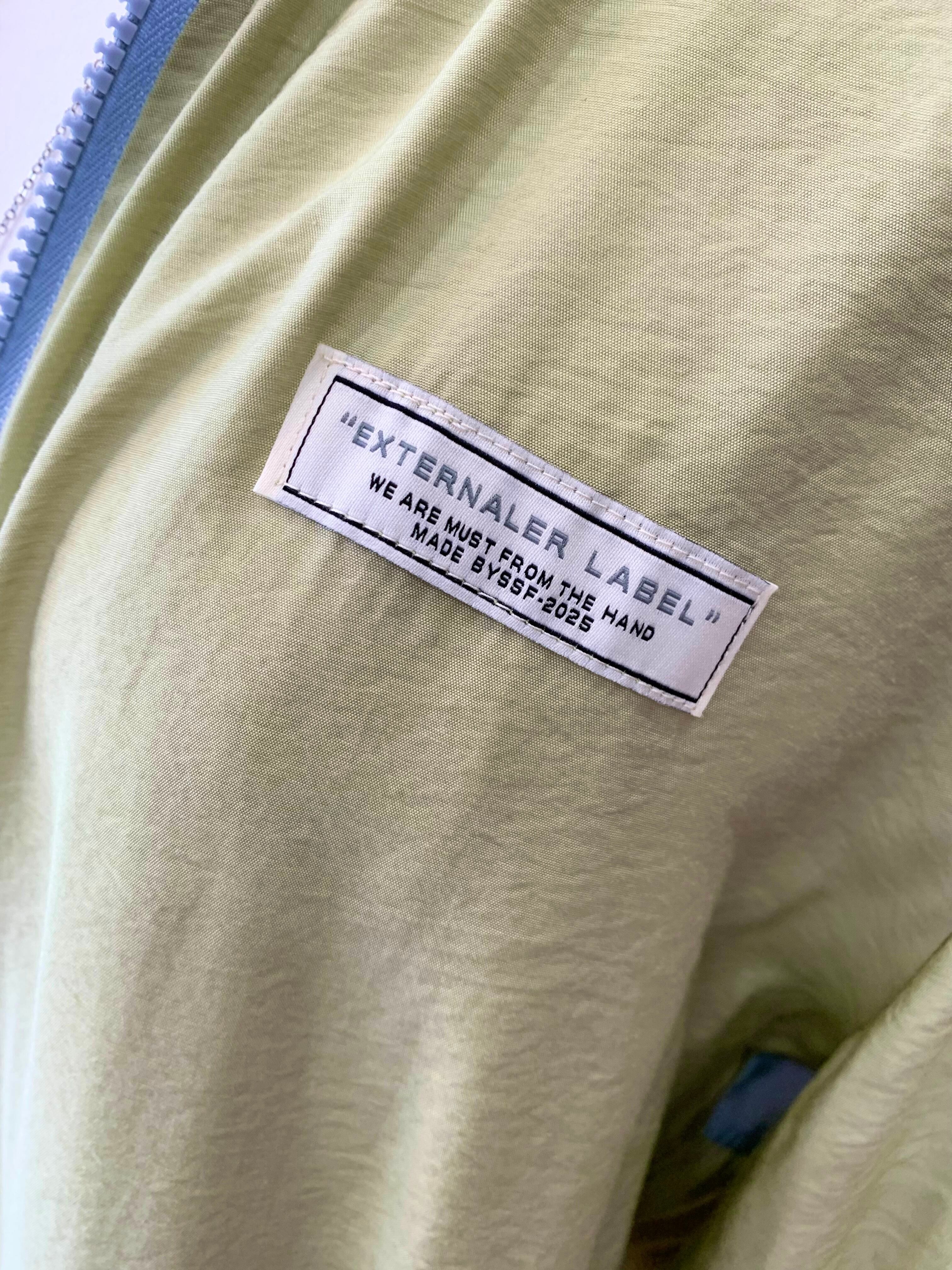 ジッパーと背中、袖横と袖口を別色で切り替えた、個性的なデザイン。
