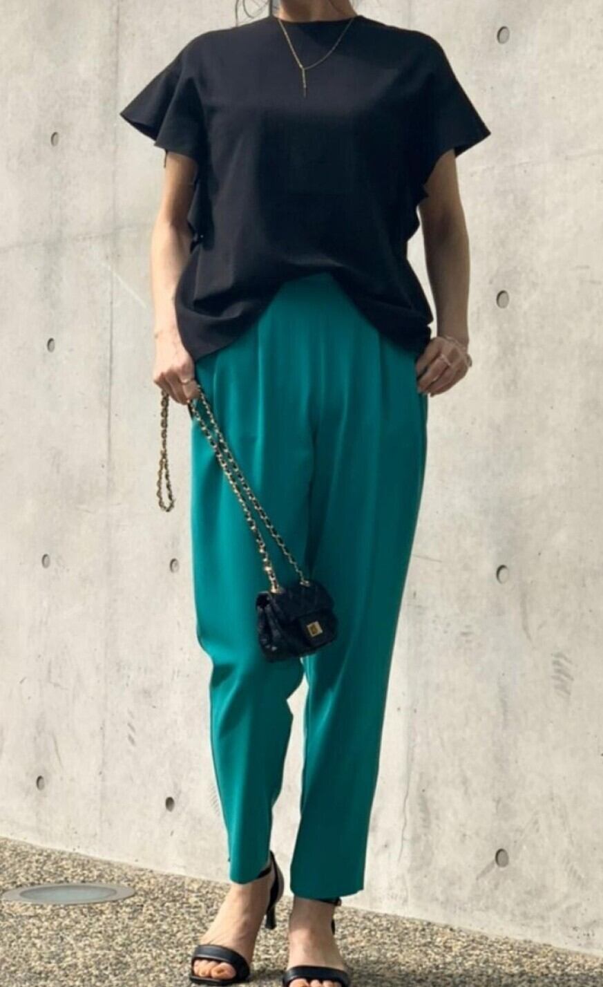 少しゆったりとしたもも回りから裾に向かってすっきりとしたシルエットで、細めのシルエットながらも足のラインを拾わずスタイルUP効果も期待できます。