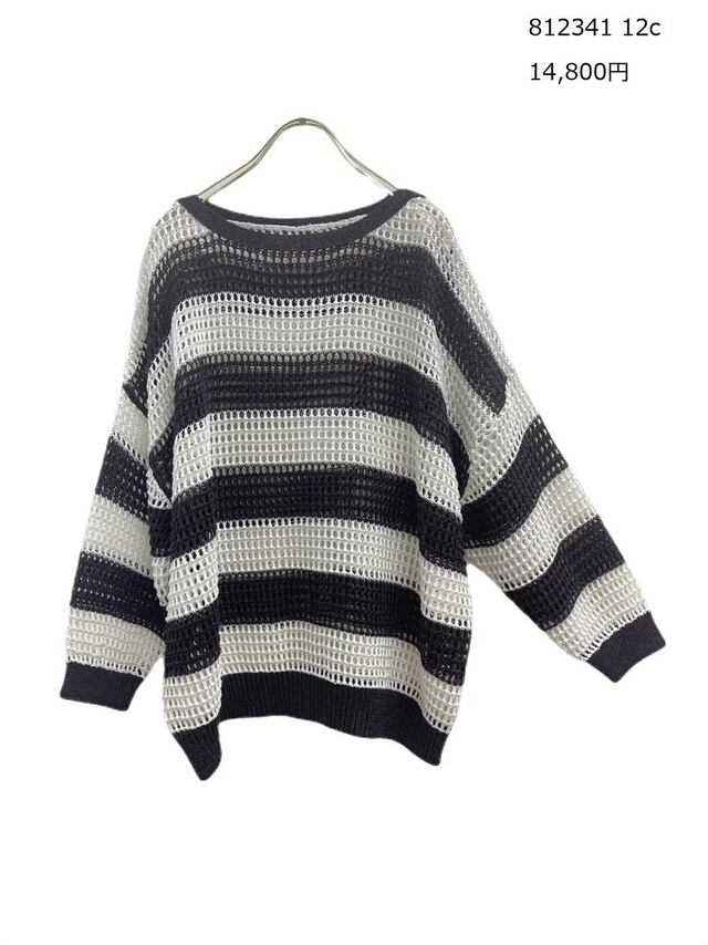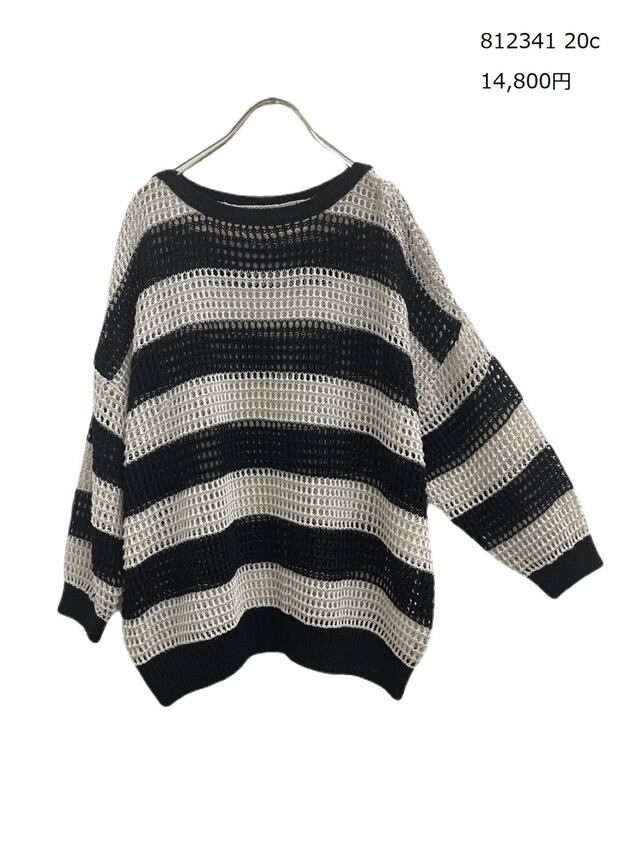ザックリしたメッシュニットと、太めのボーダーのバランスが可愛いプルオーバー♪