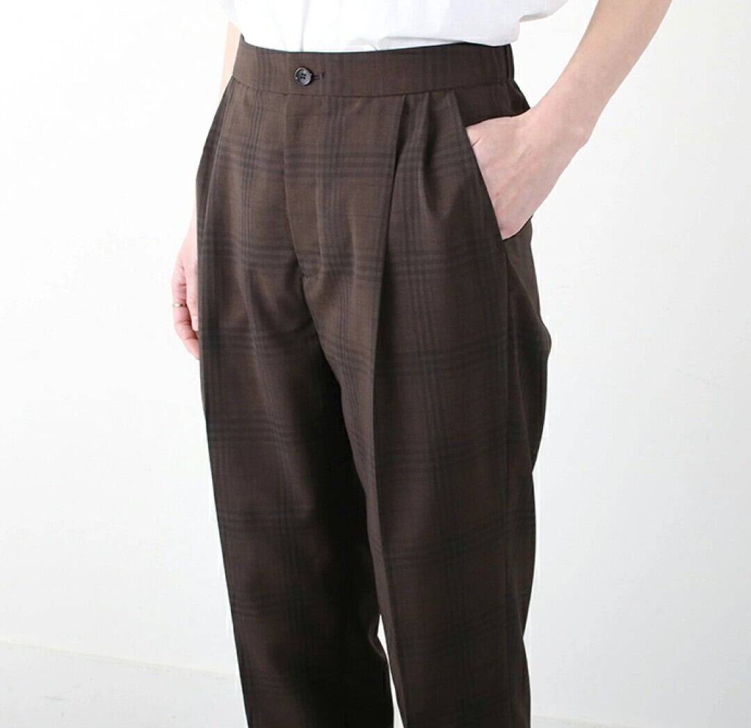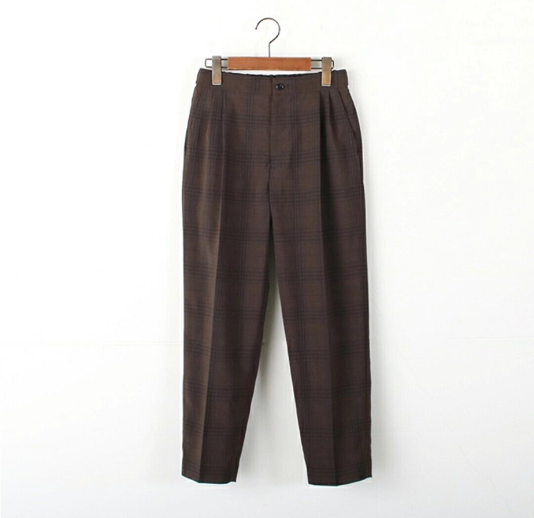 シンプルな無地のブラックにチェック柄と雰囲気も異なり、タック&センタープレスできちんと感のあるパンツです(^^)