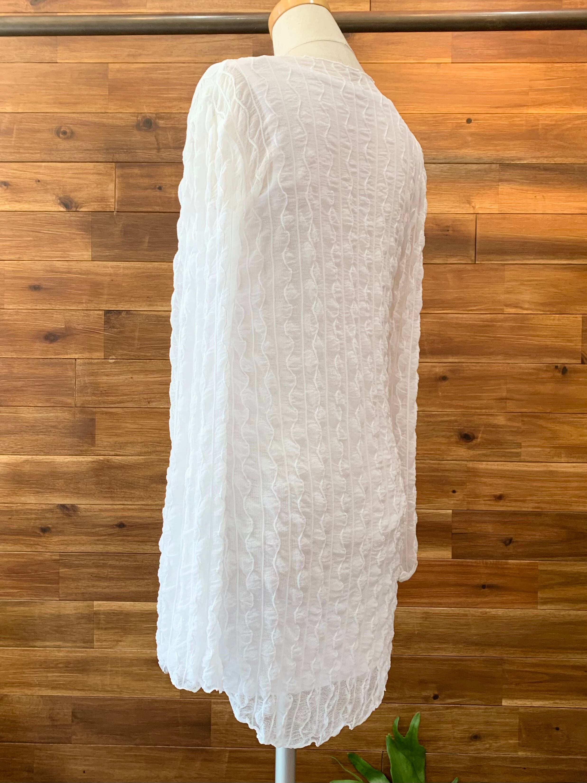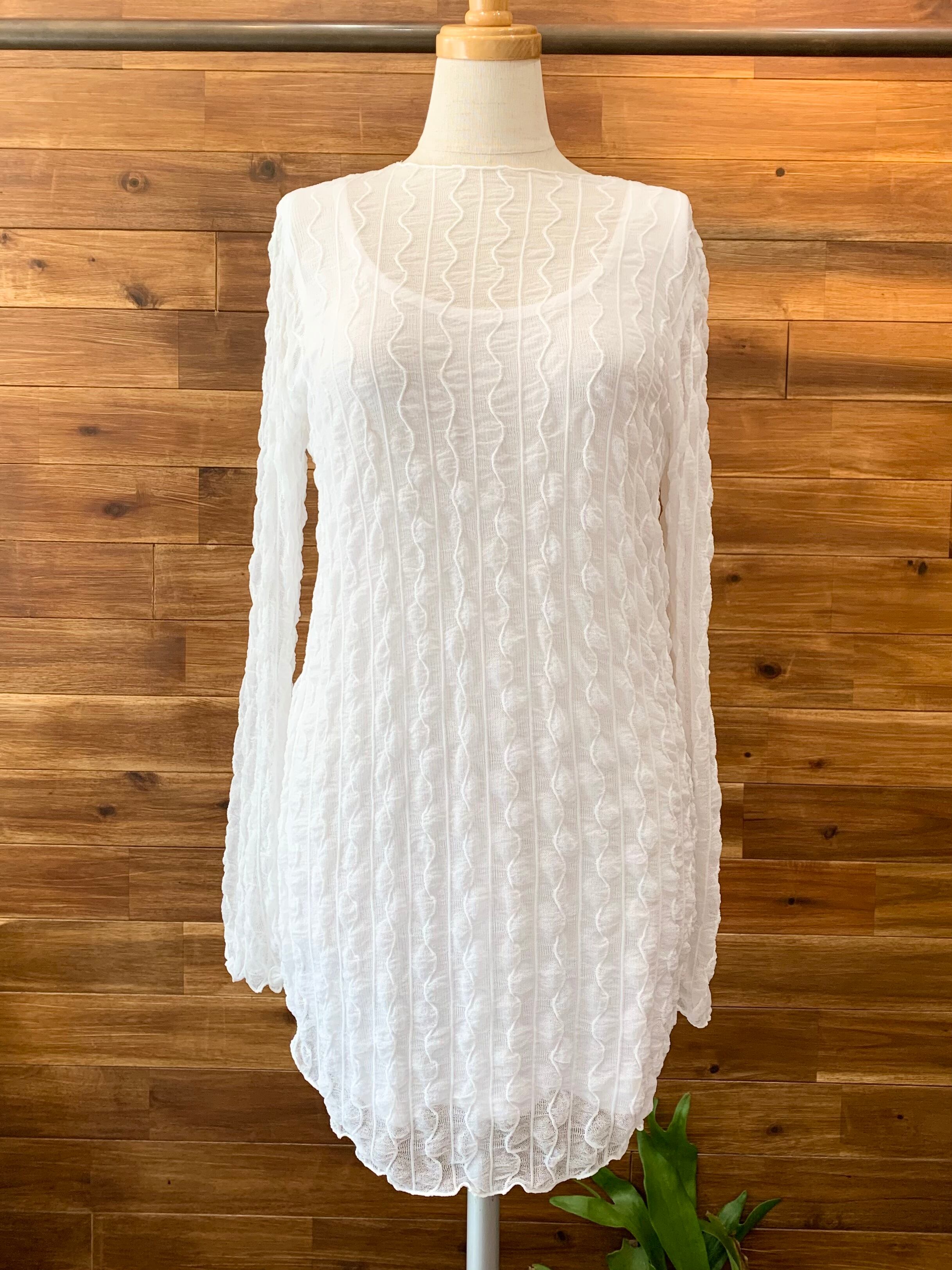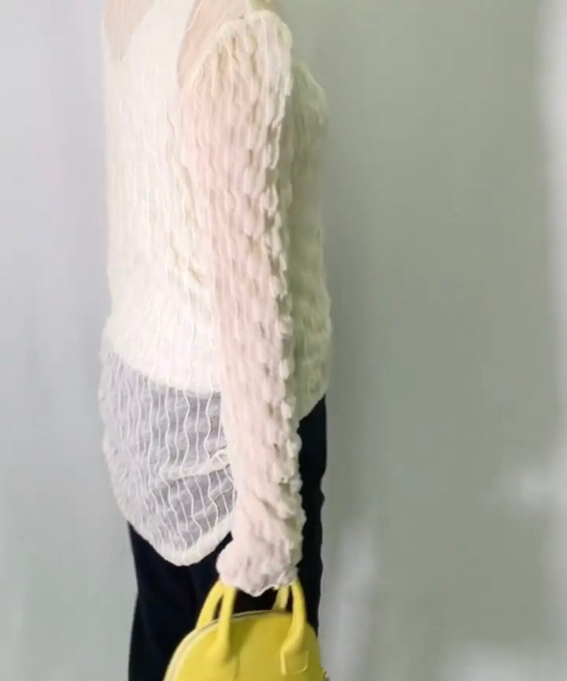 お色はホワイトとアイボリー♫中に濃い色のタンクトップを入れてシアーな表情を出して着ても良いですね◎