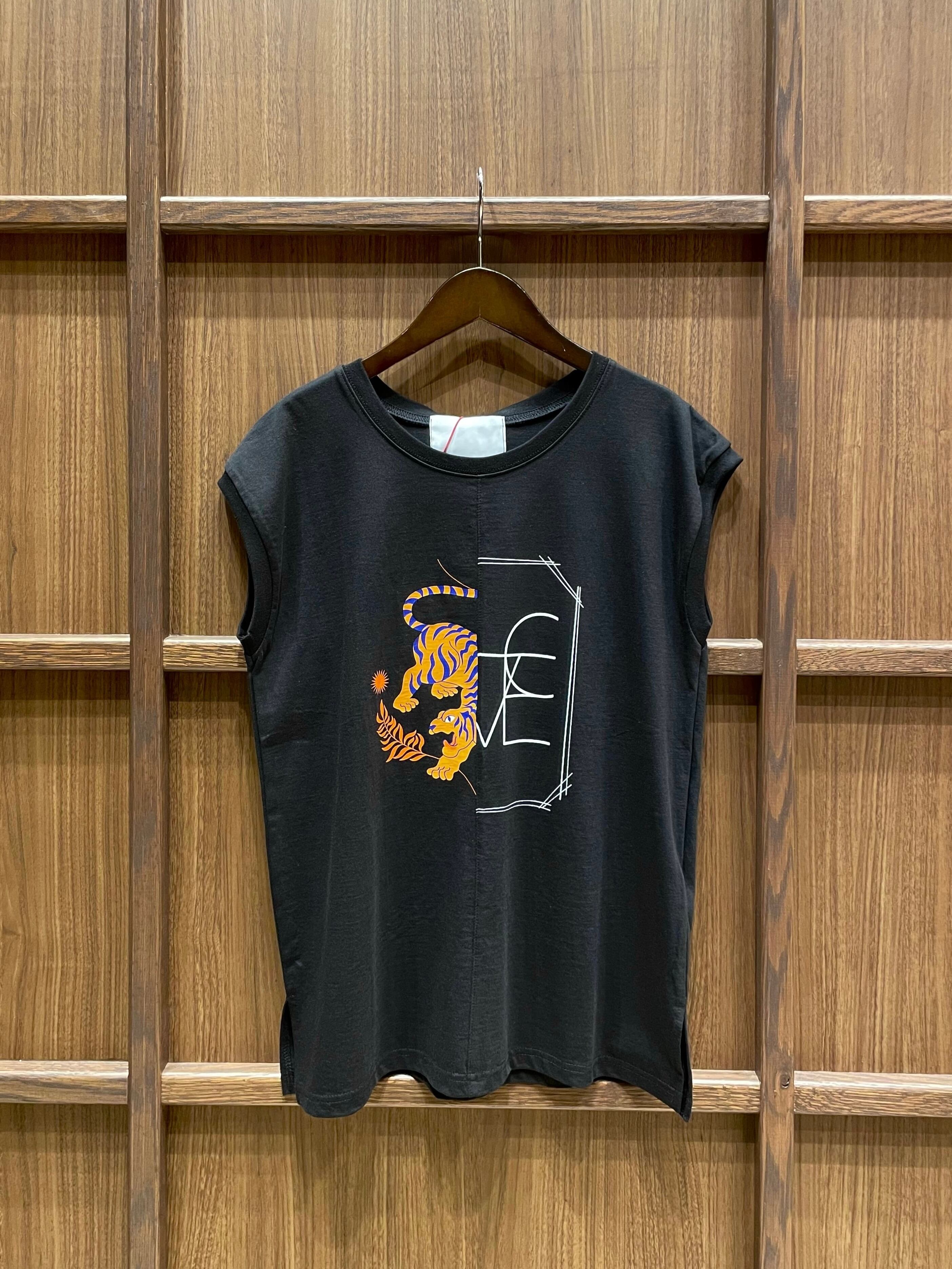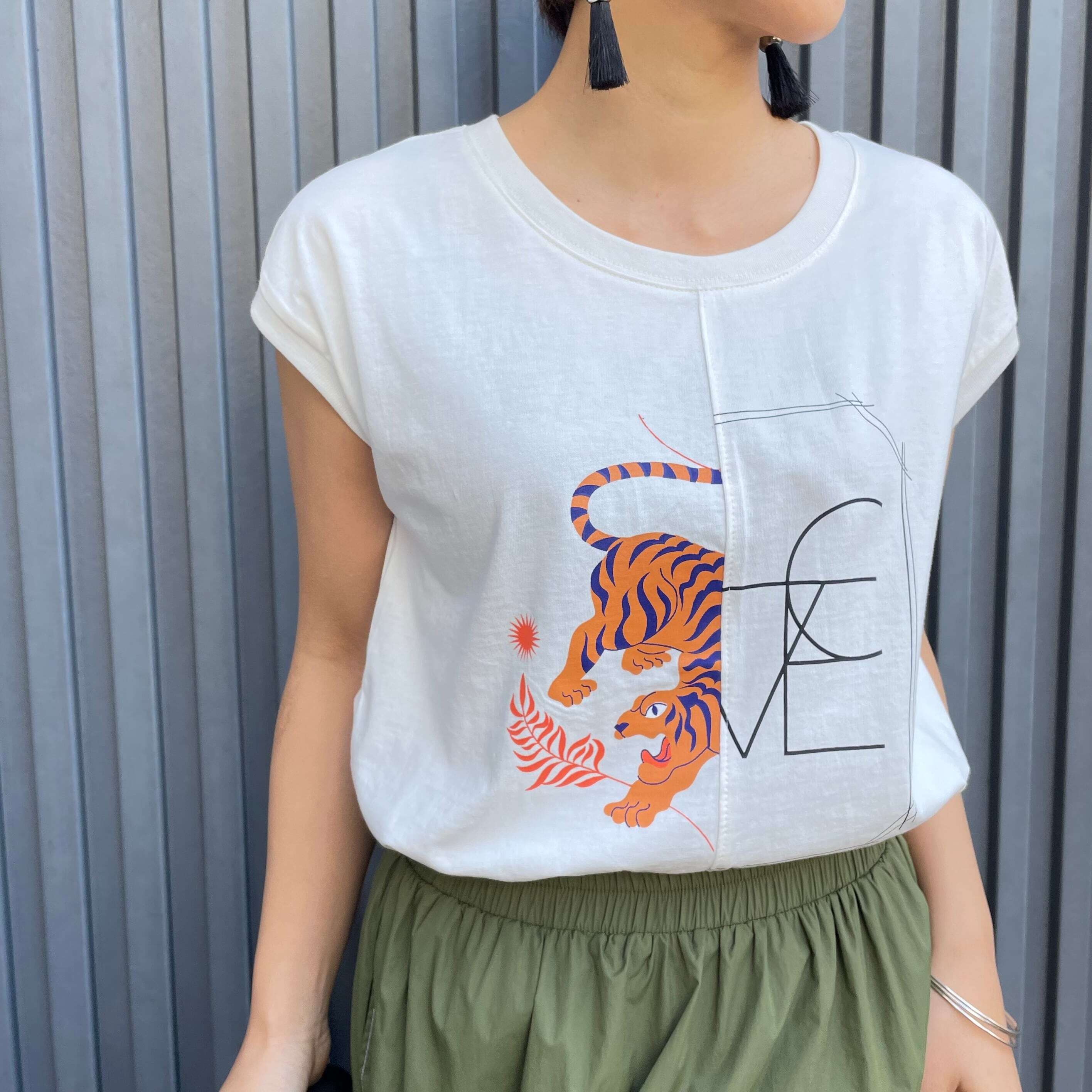 フロントのロゴ&トラのリメイク風プリントがキャッチーなフレンチTシャツ♪