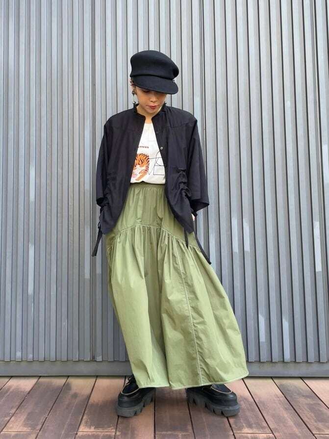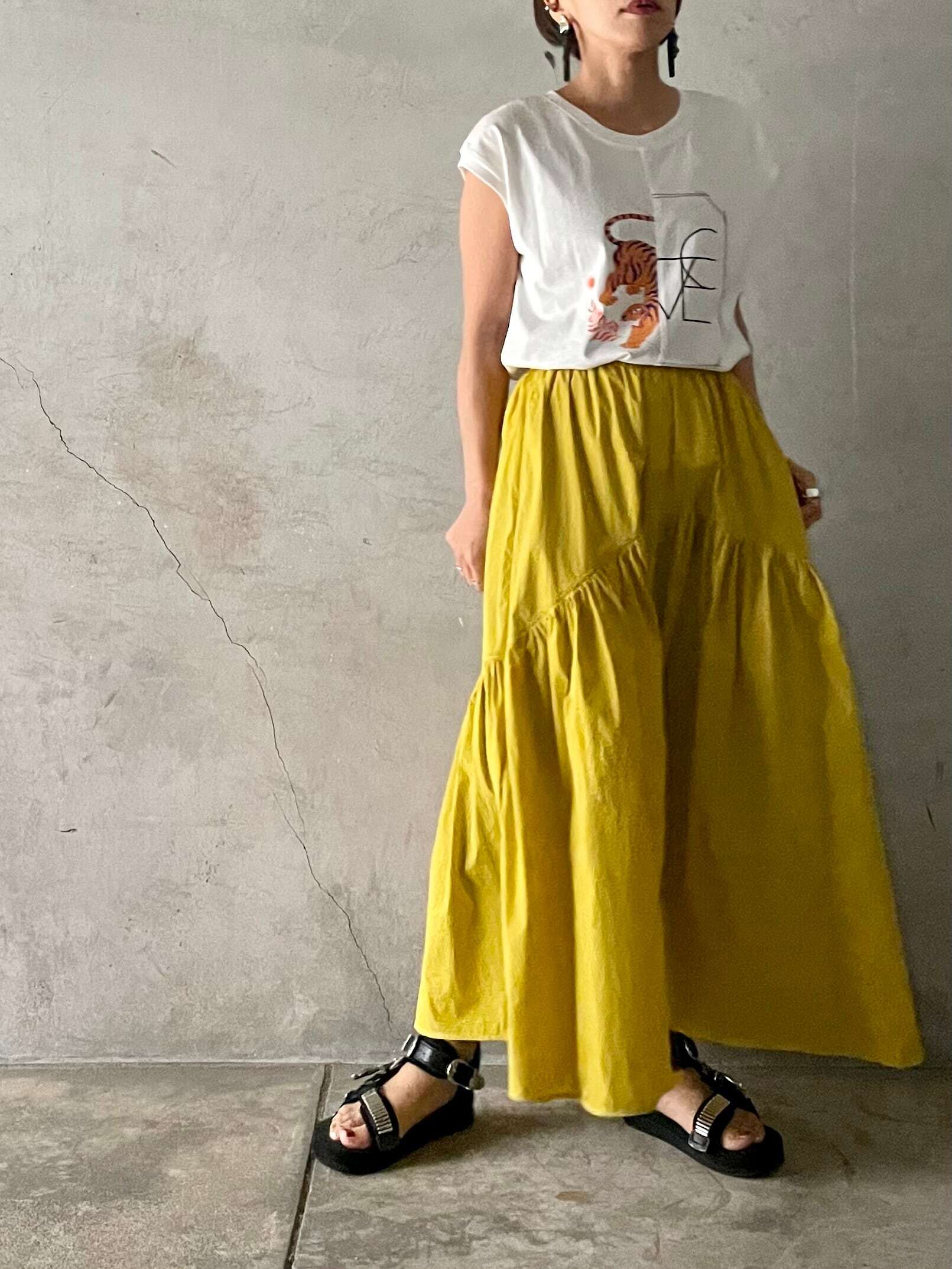 肩先までカバーしてくれるフレンチスリーブで、一枚着としてはもちろん、ベストやシアーアイテムのインにも重宝しそうです♪