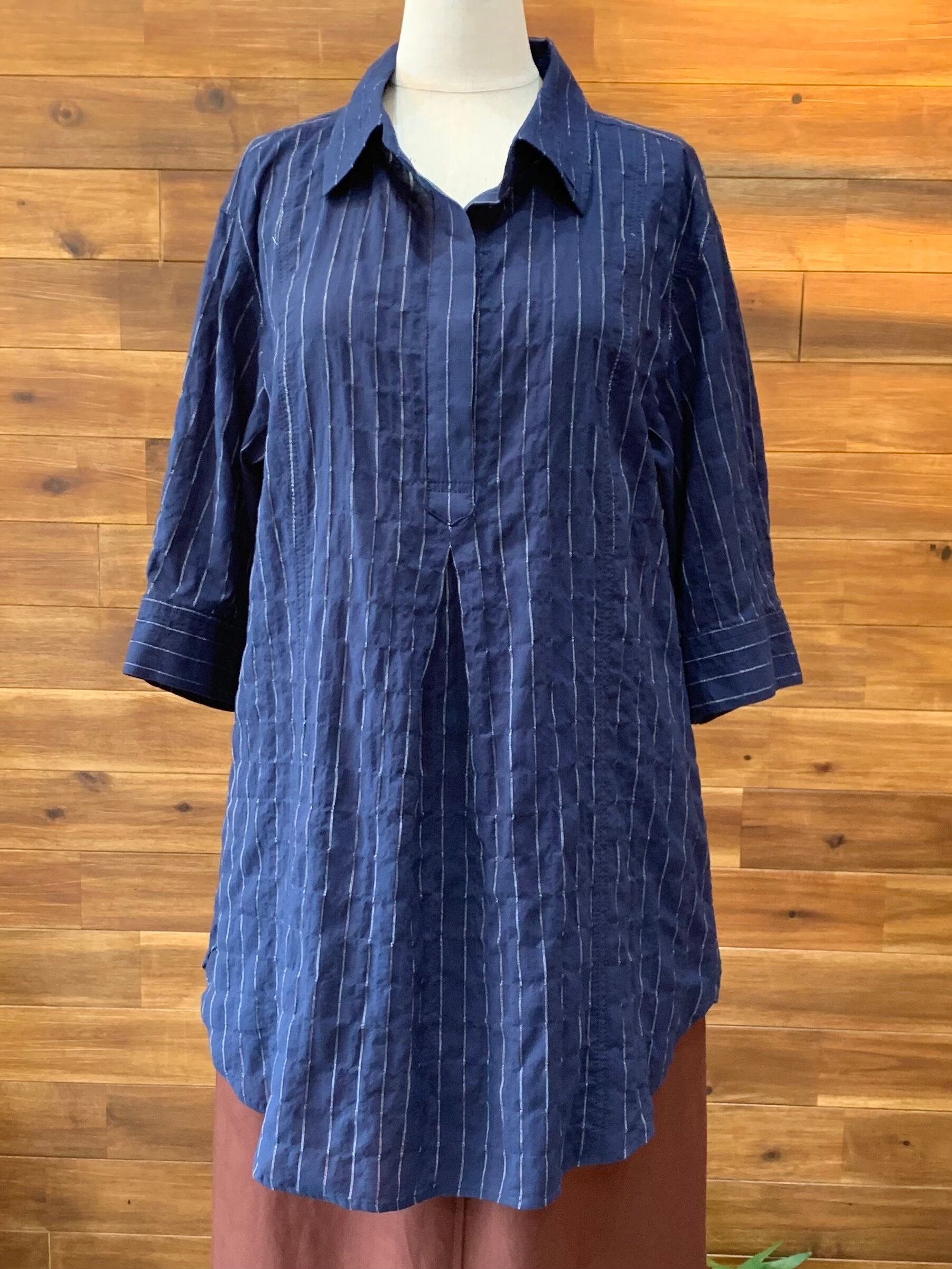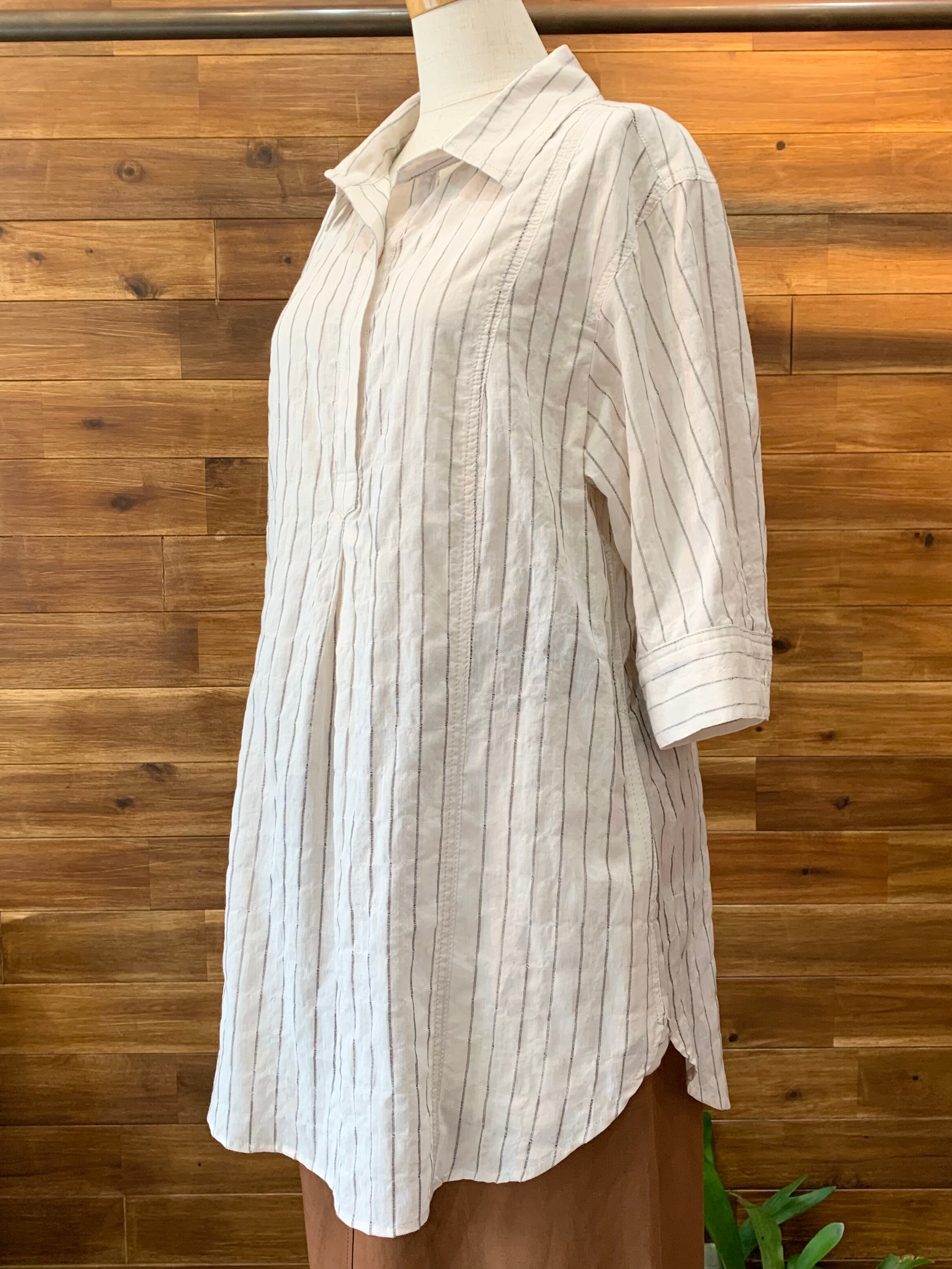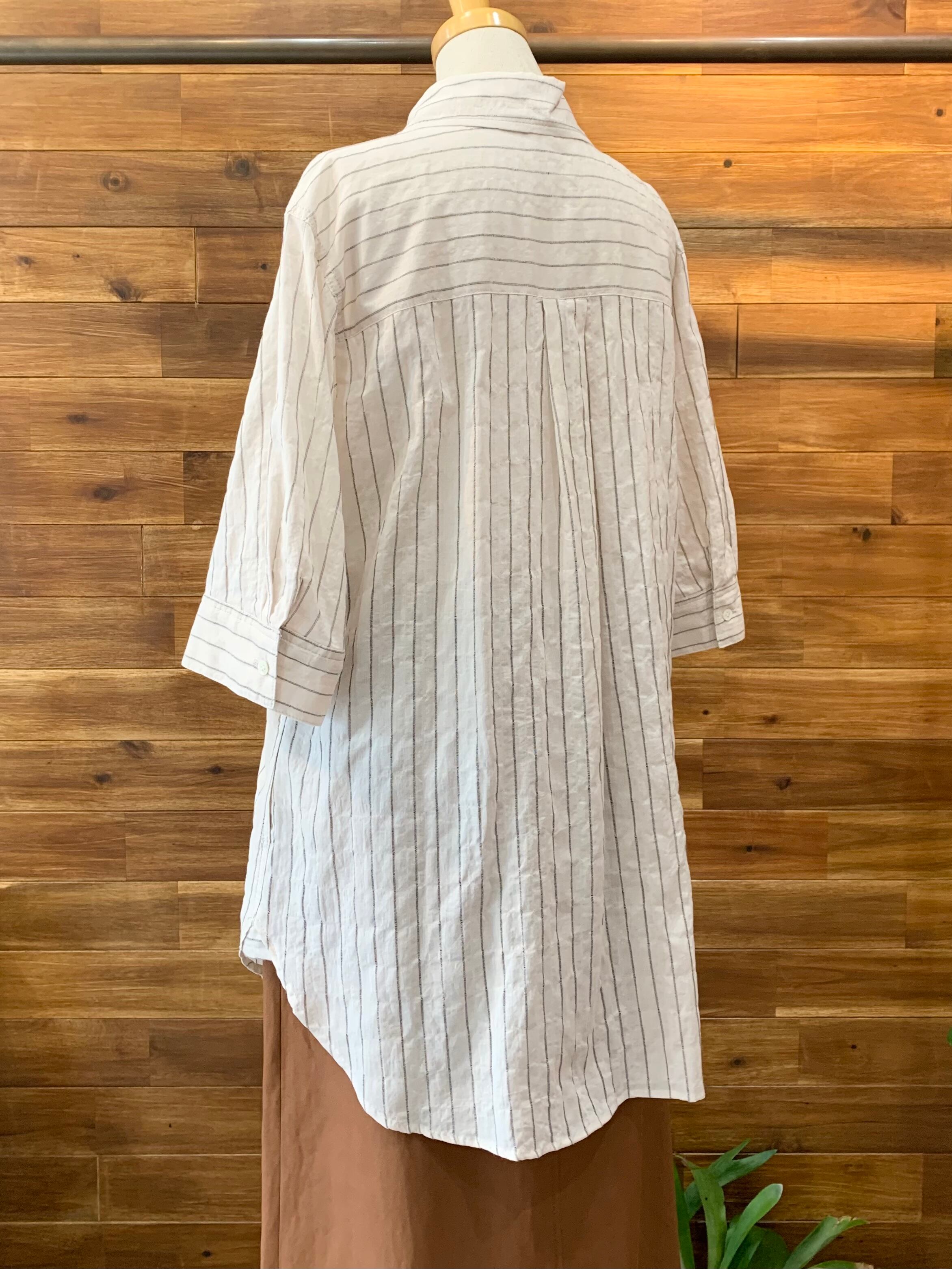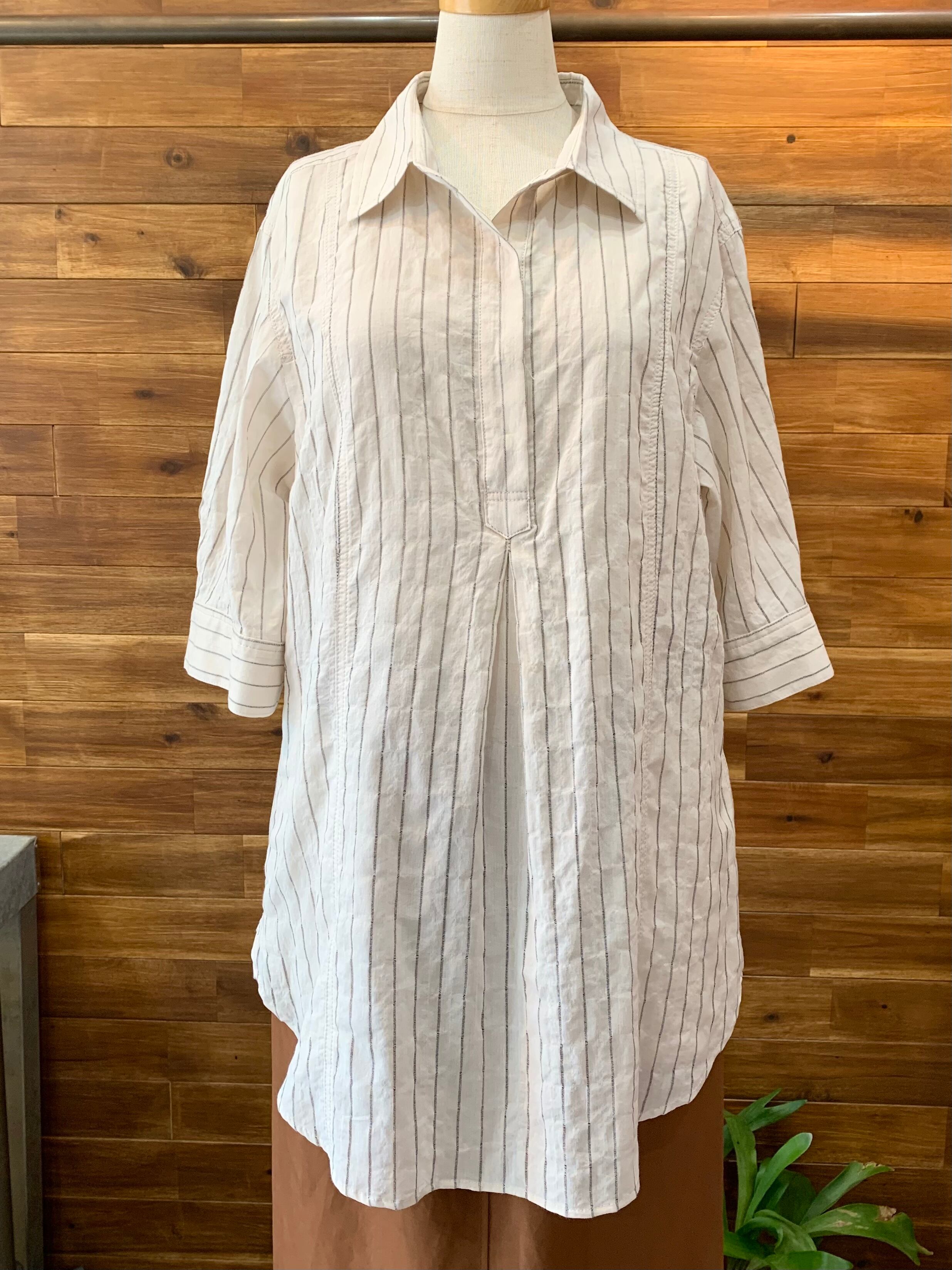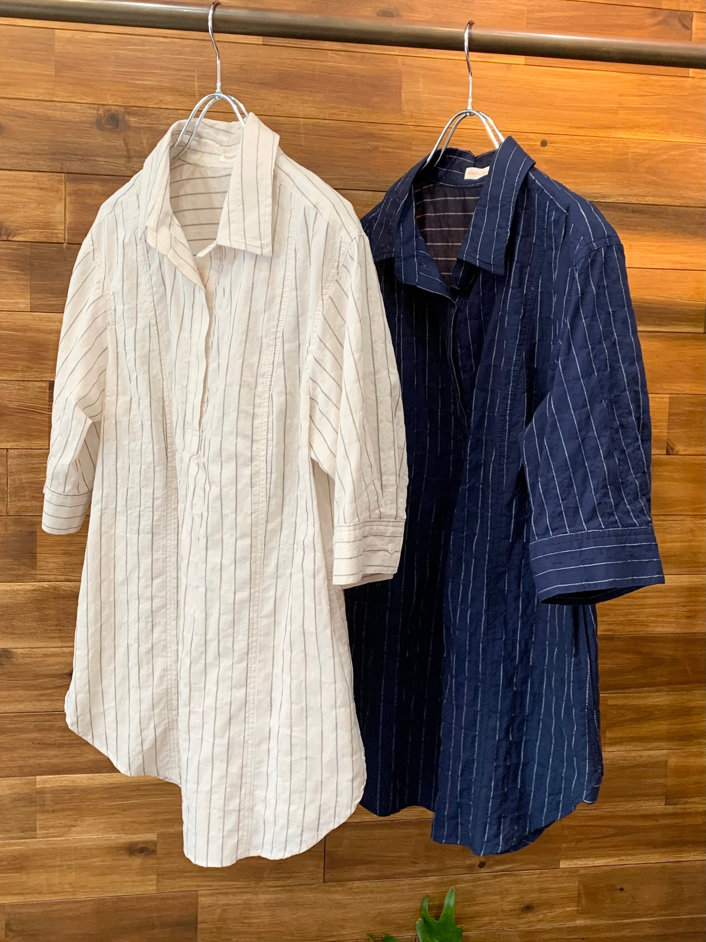 柔らかな綿素材のストライプ柄スキッパーシャツ♡