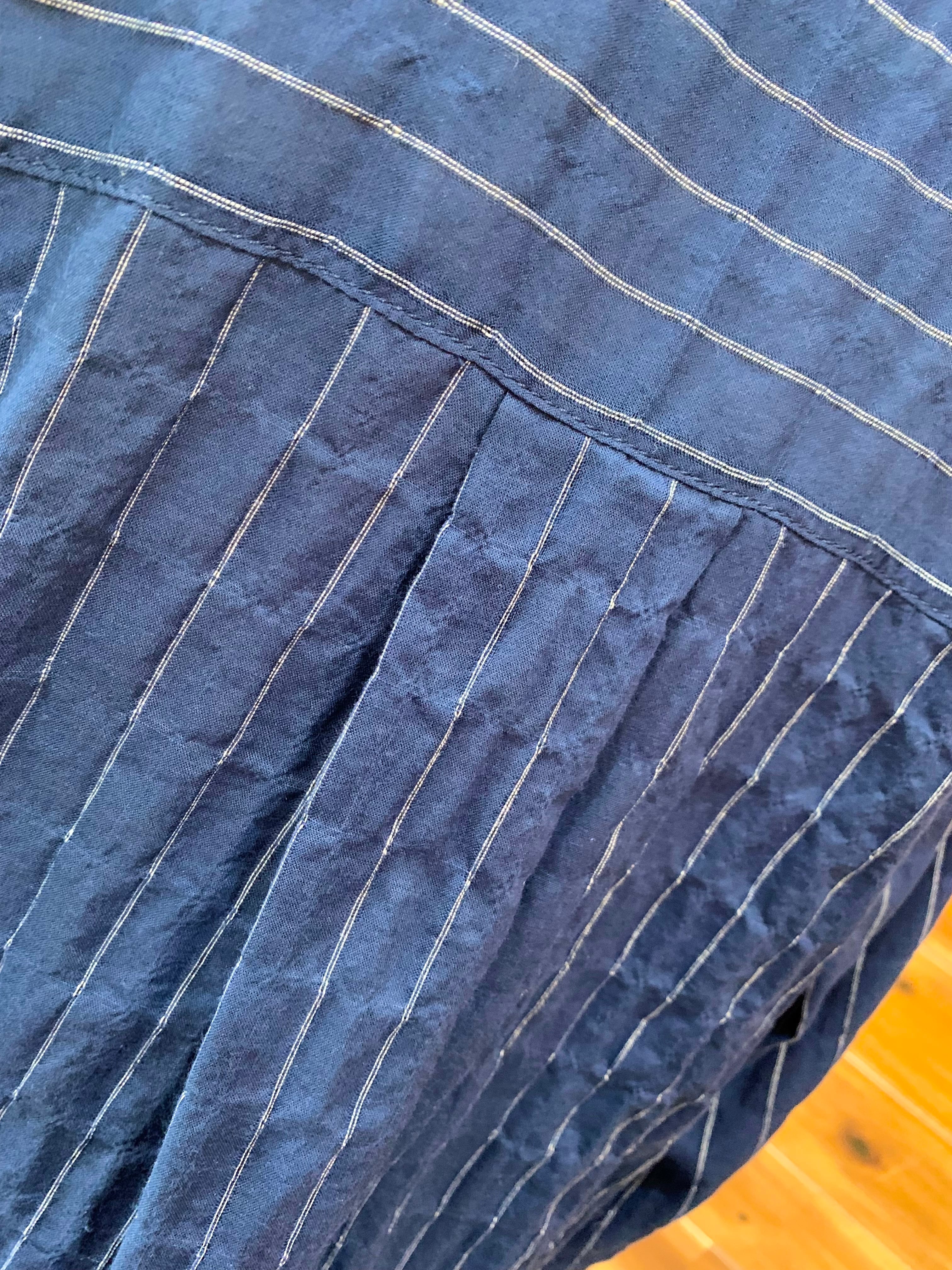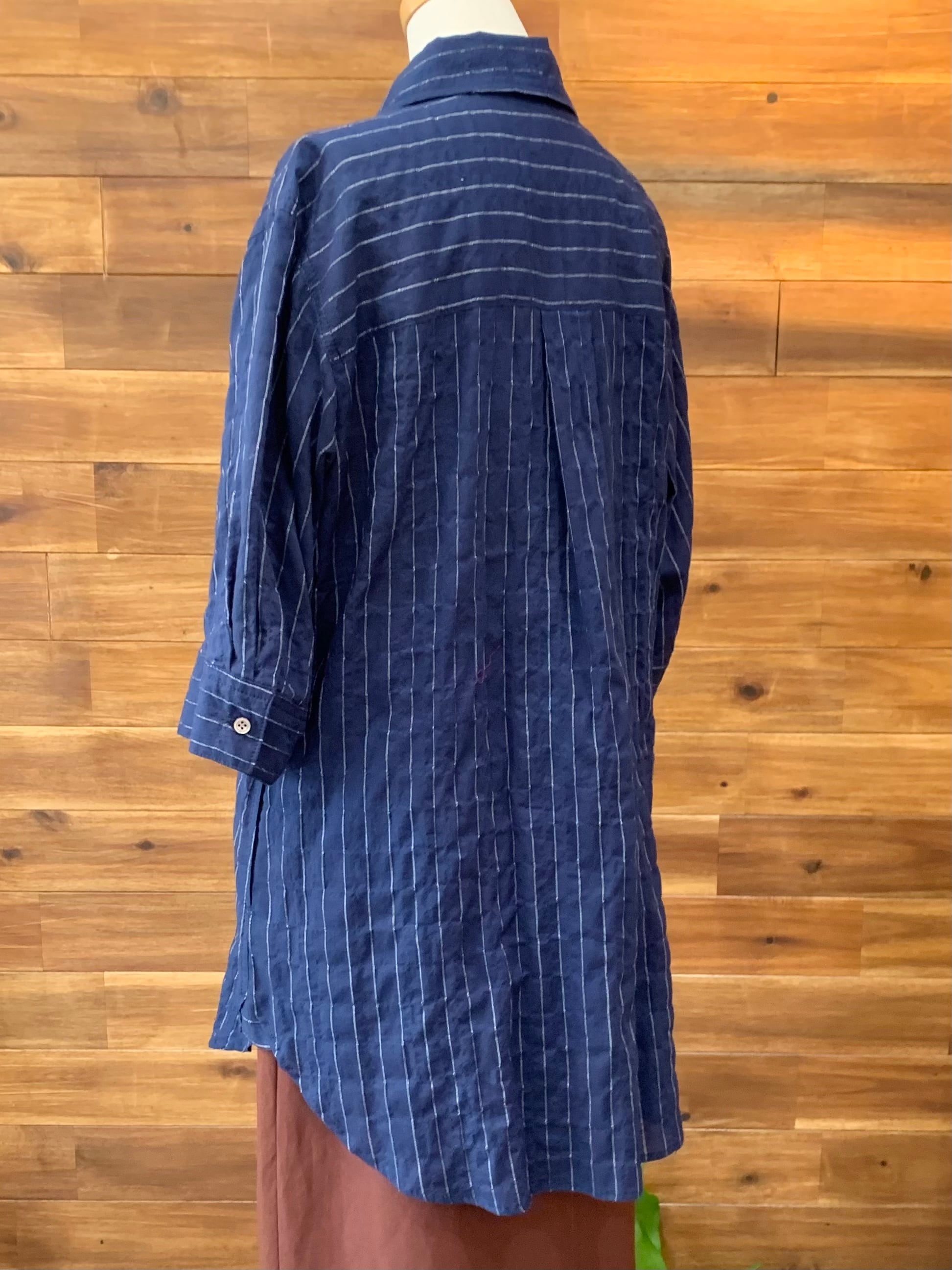 背中ヨーク、袖口をストライプ縦横に切り替えてとり、丁寧にこだわって作った上質なシャツです◎