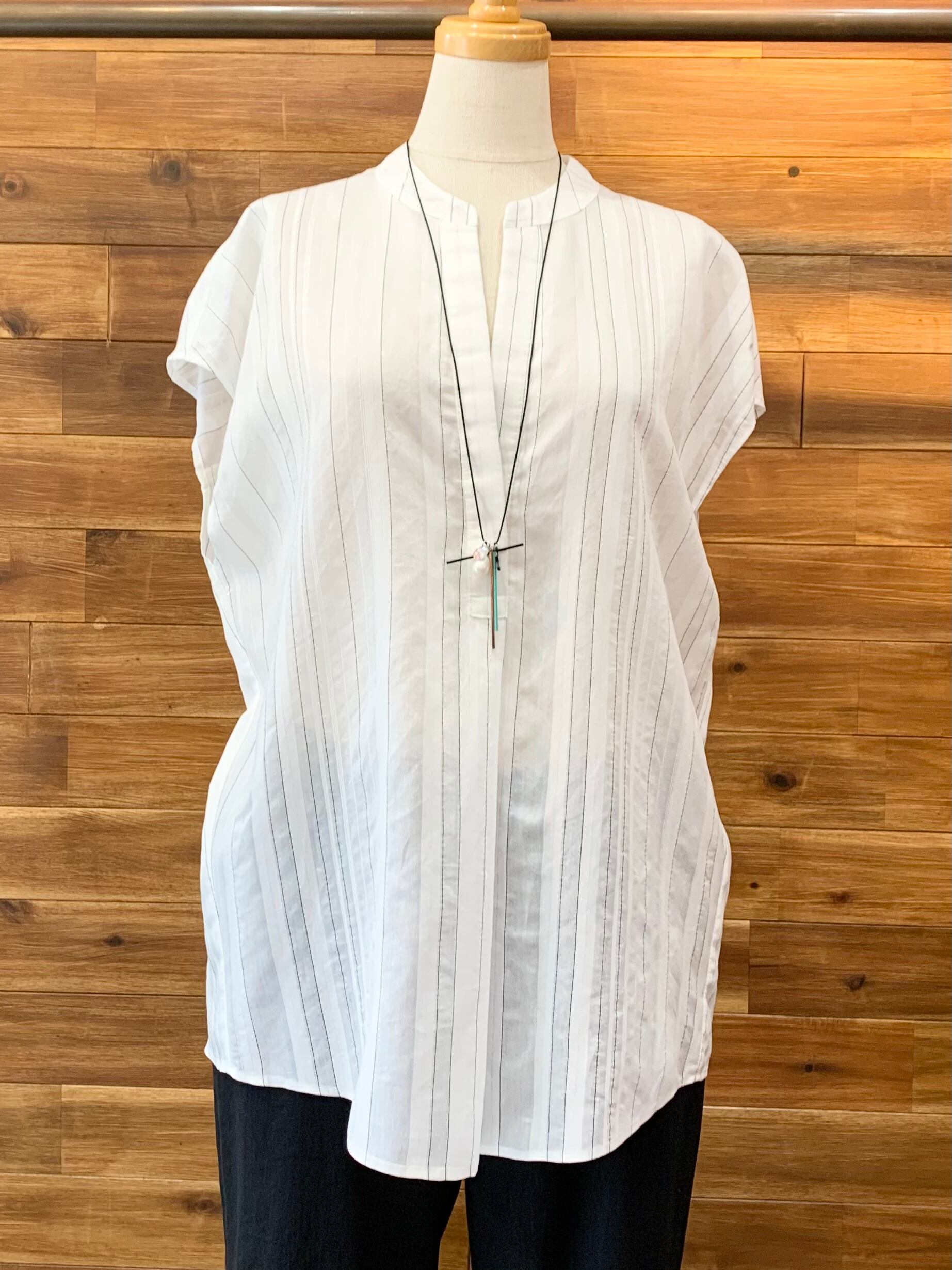 涼しげな地模様ストライプ素材のスキッパーブラウス♡