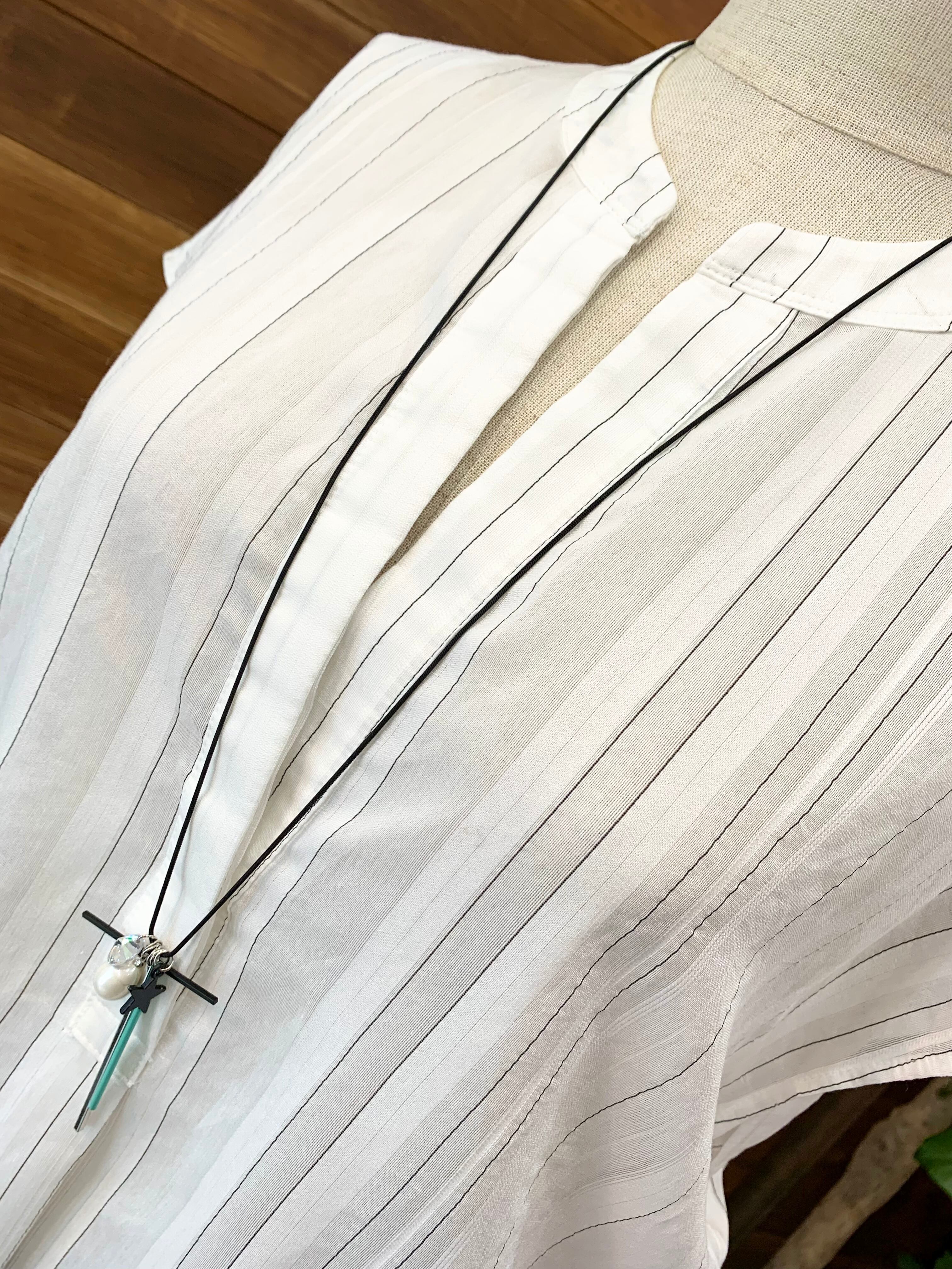 ランダムなストライプが涼しげで、白地部分もよく見ると白糸のストライプになっています♫