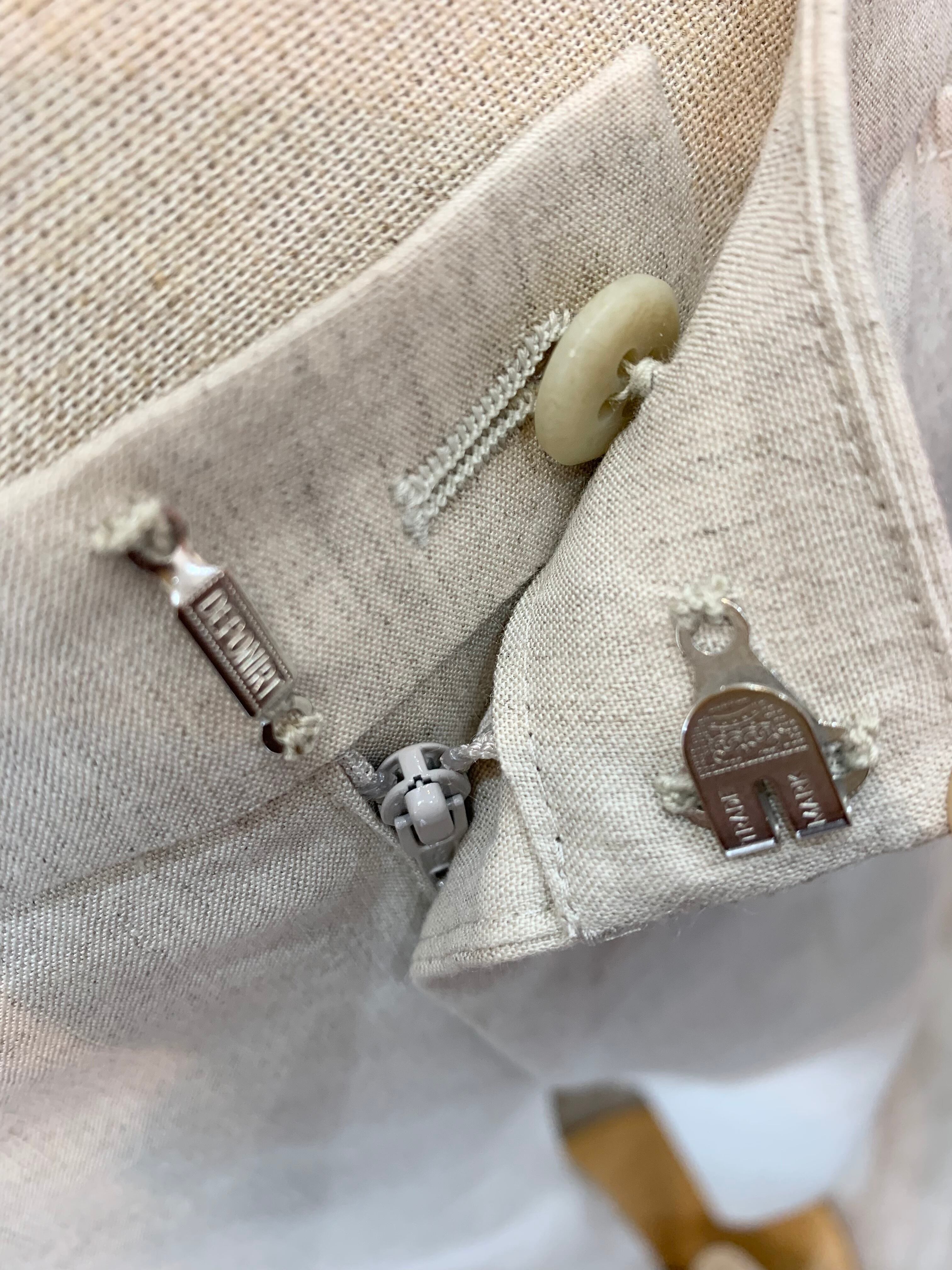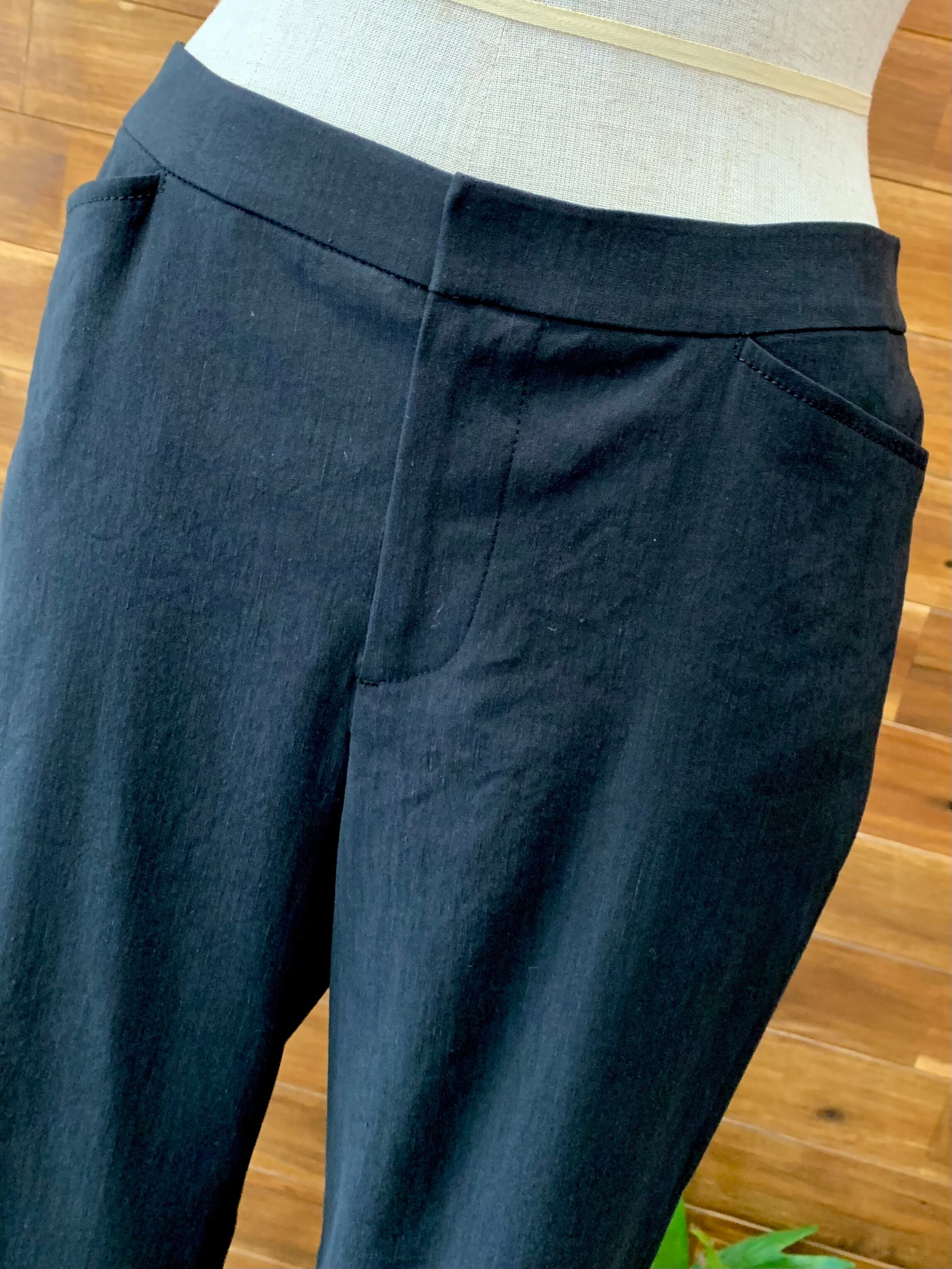 ウエストは前ホックとボタン、ジッパーで開閉、後は平ゴム入りで楽々な履き心地♡