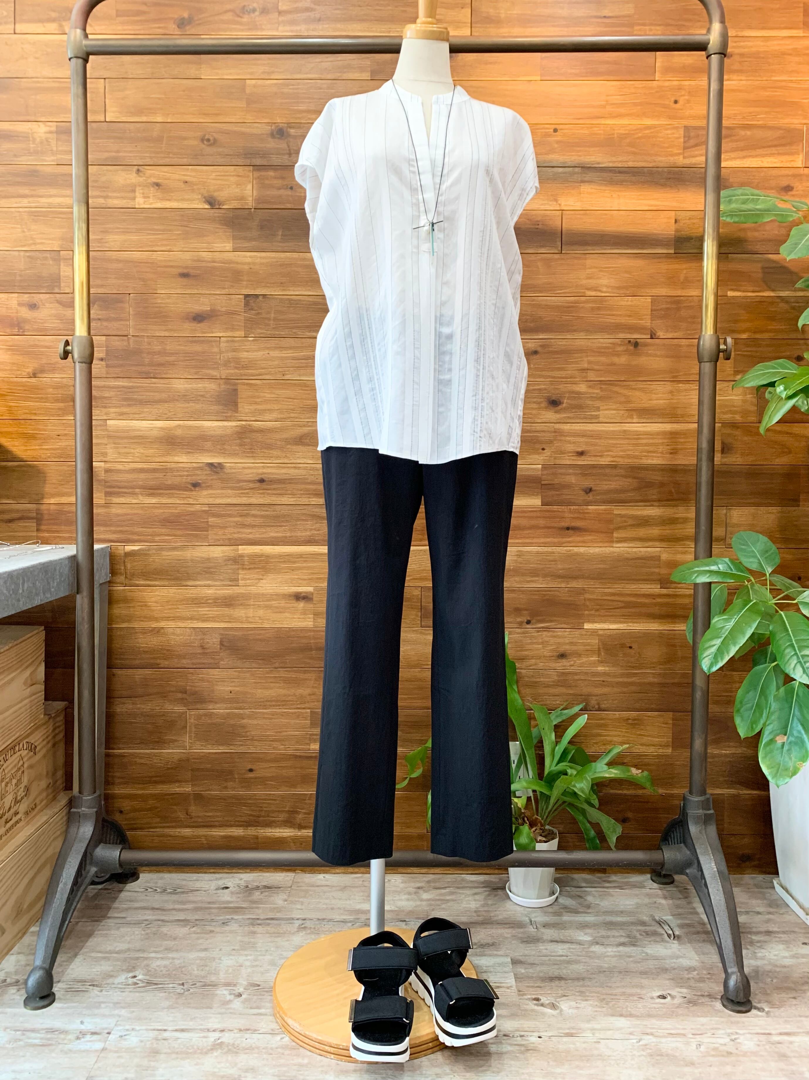 リネンの涼しさと縦横に伸びるストレッチ性がポイント。