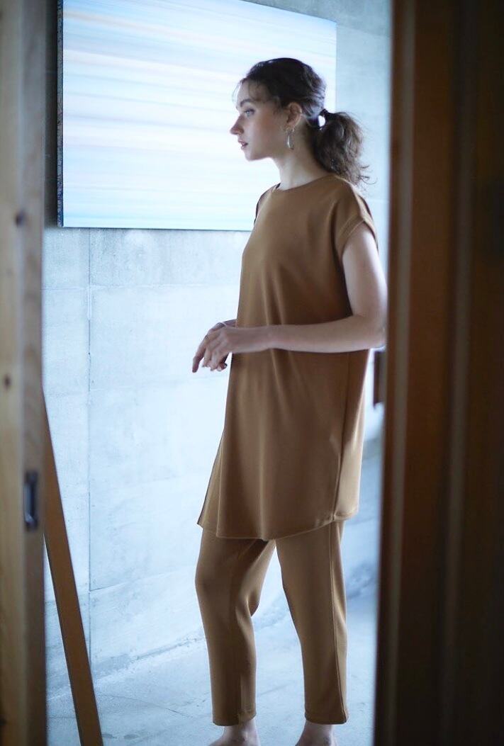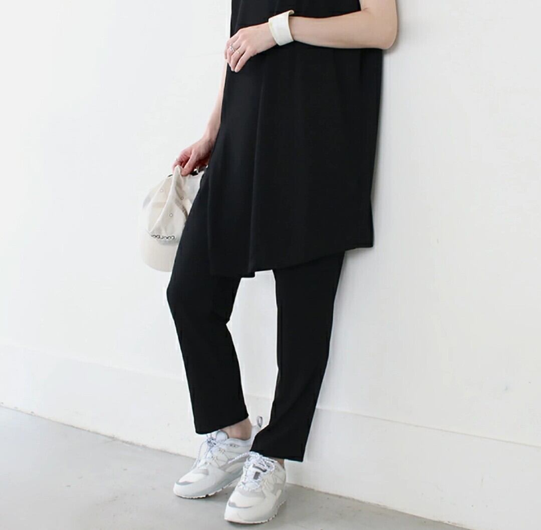 フロントにはタックとダミーの前立てデザインでイージーなレギンスパンツでなく、きちんと感のある印象に⭐︎