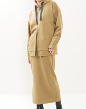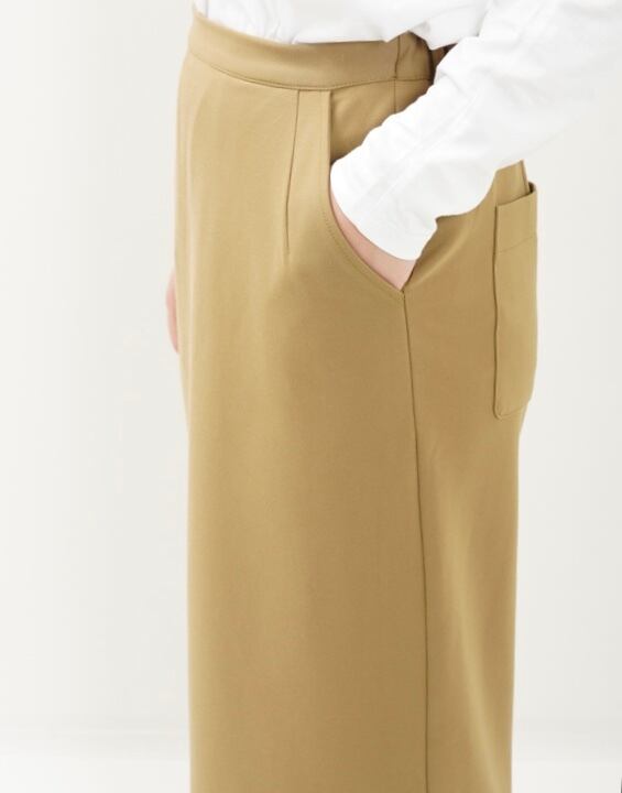 ミモレ丈で軽やかな印象で、コーデによって綺麗めもカジュアルもどちらも出来るアイテムです。