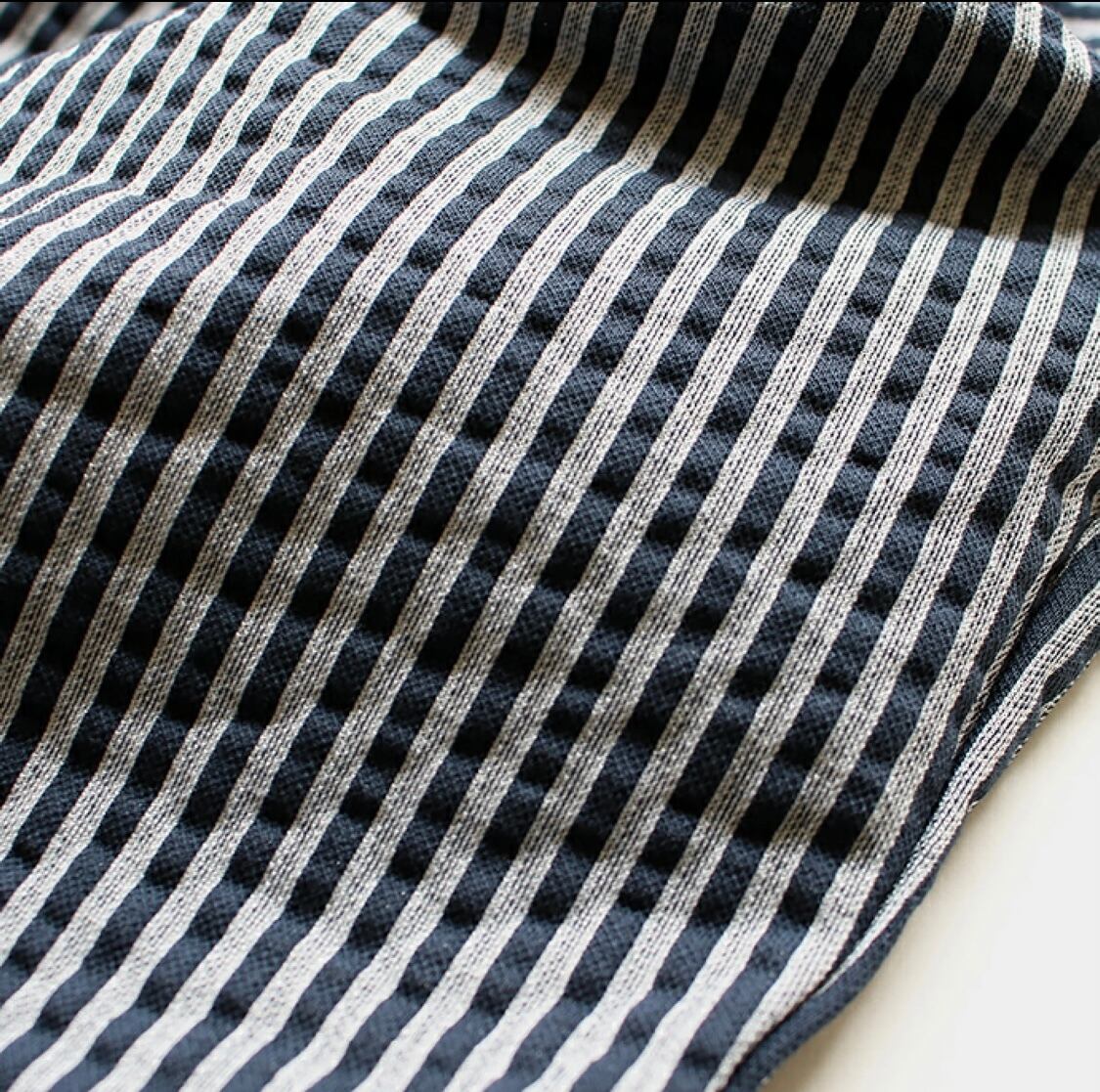 ドライタッチで軽い肌触りのサッカーニットは夏に快適な着心地です。