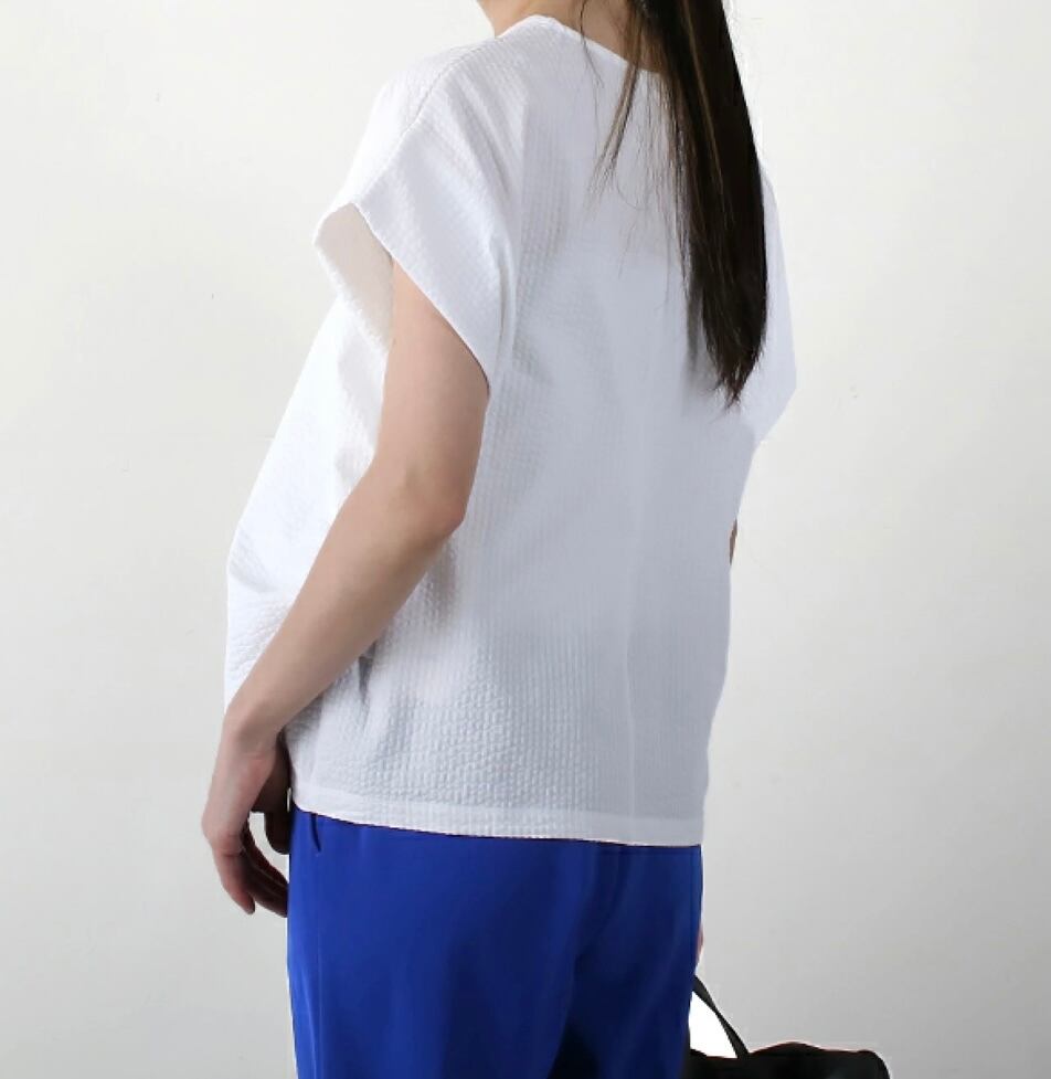 カジュアルにもオフィスにも♪ 夏に涼しいサッカー素材Tシャツ♪