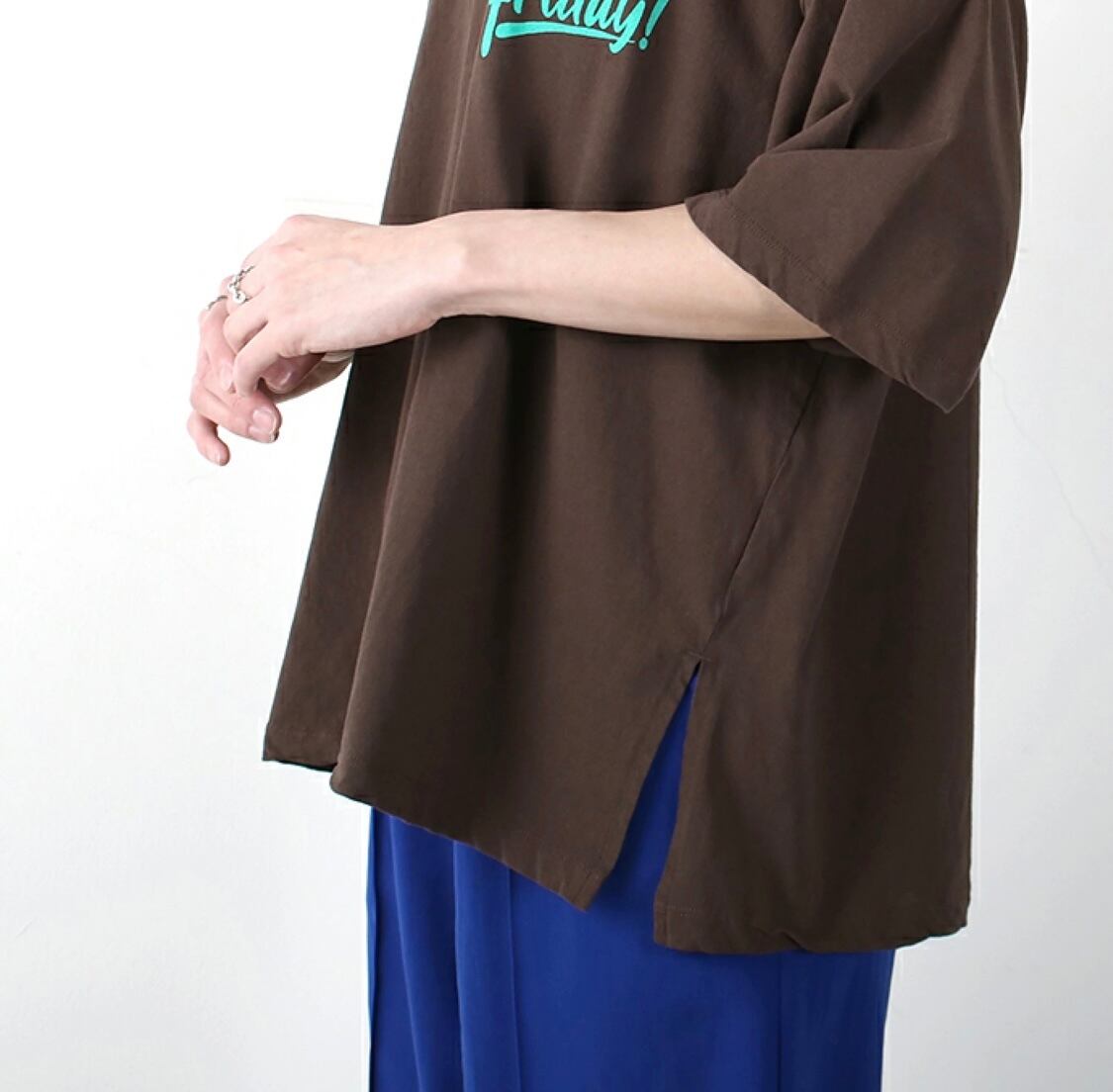 ユニセックスなサイズ感の半袖Teeは、気になる二の腕をしっかりカバーしながらも、程よいゆるサイズで、旬のこなれた印象に。