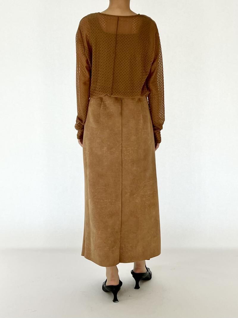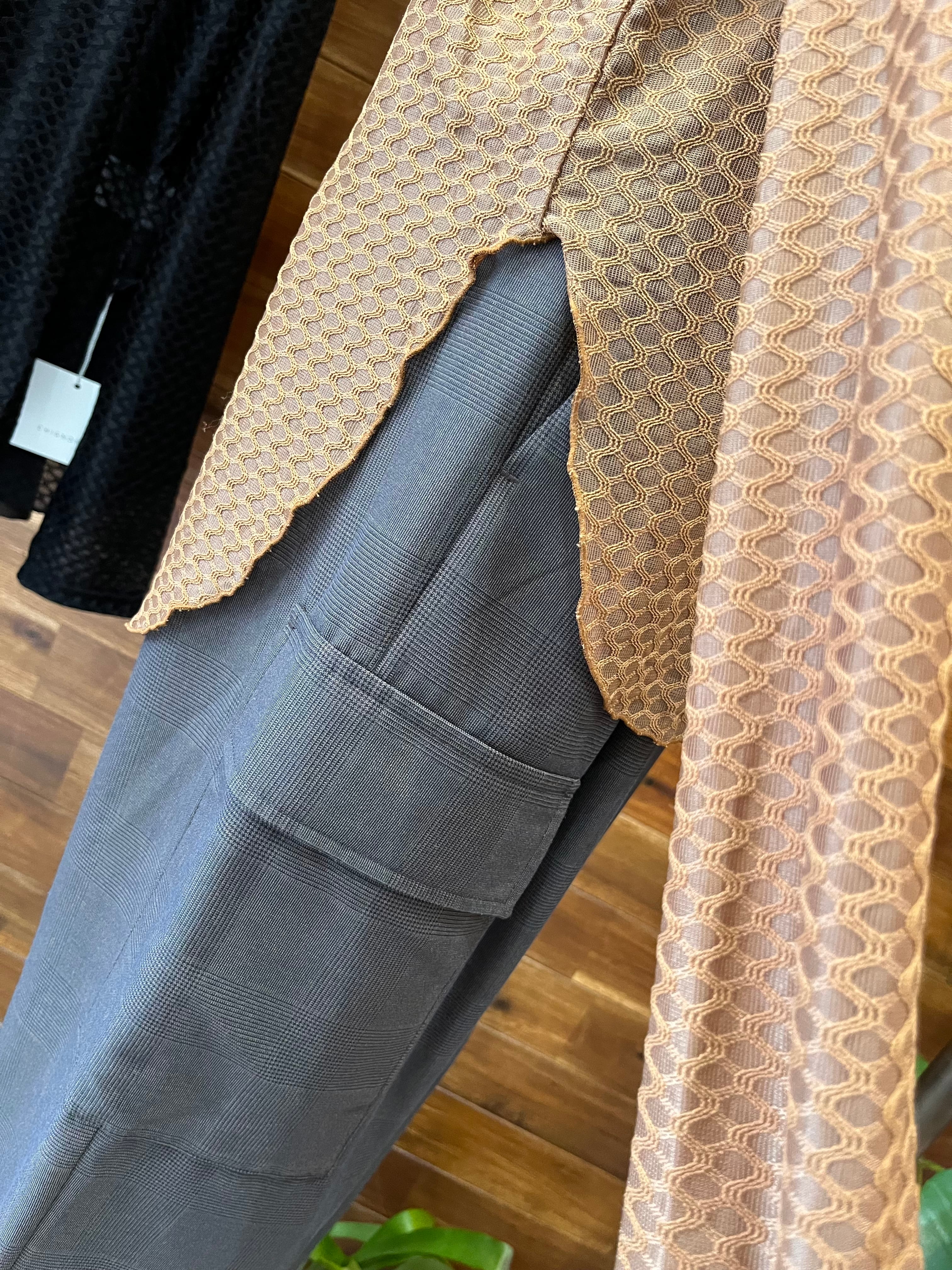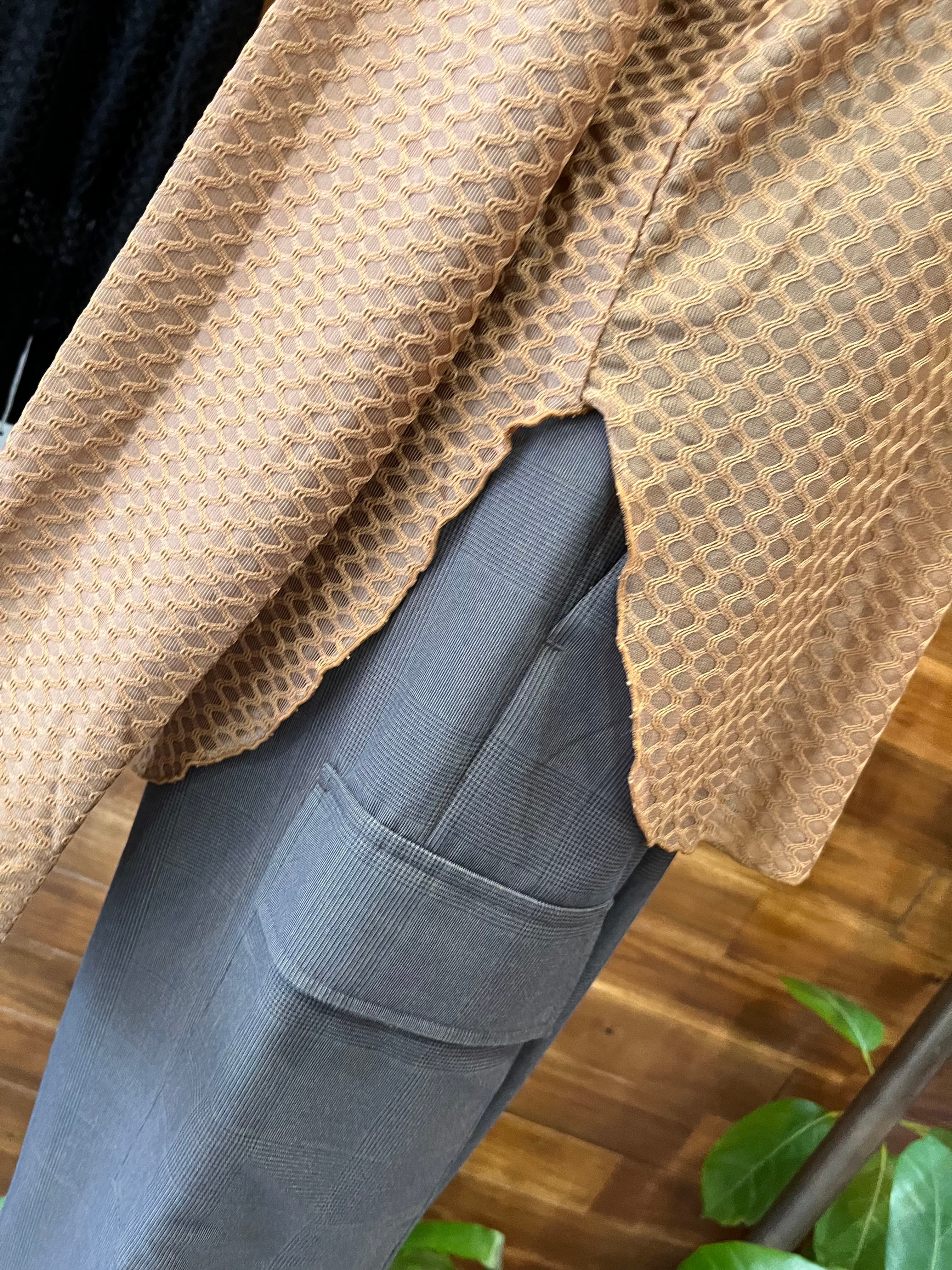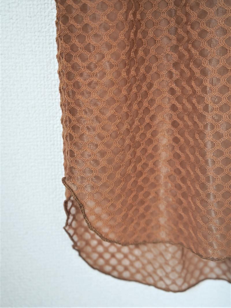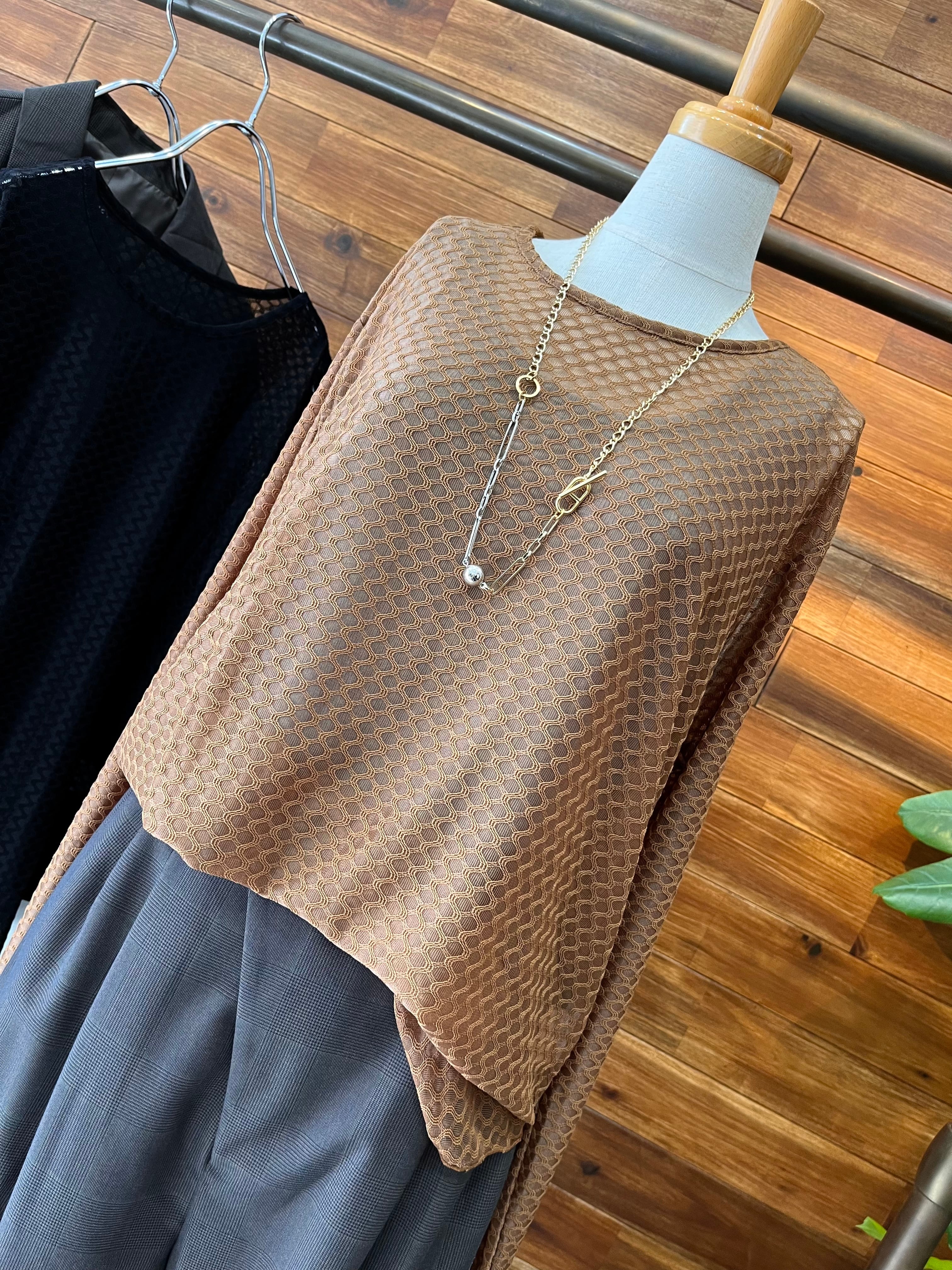 チェーンのような柄のチュール素材を使用したシアープルオーバー。