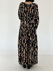 全体的にギャザーをふんだんに使ったボリュームのあるシルエットのワンピースでモードな印象の1枚です!