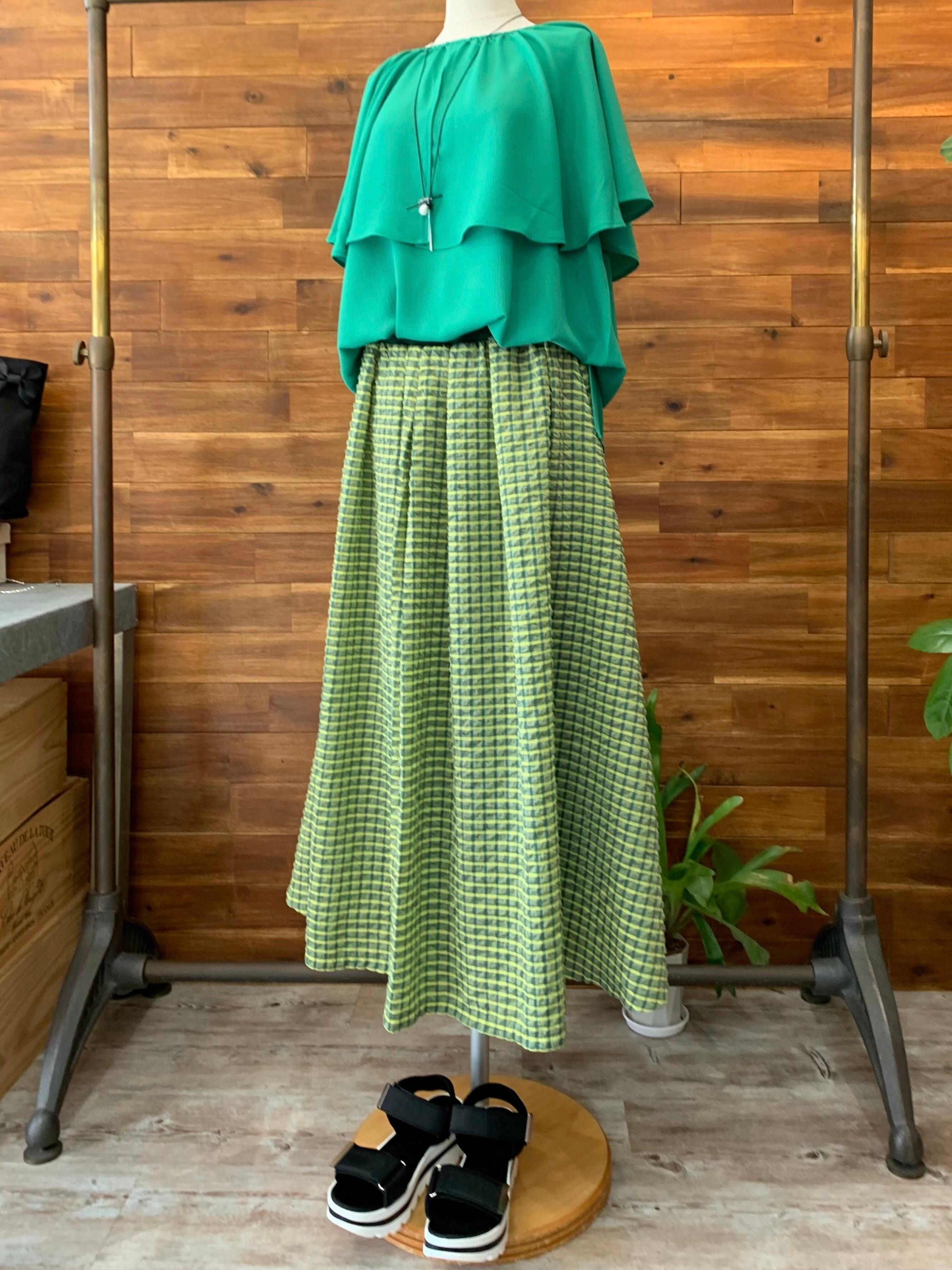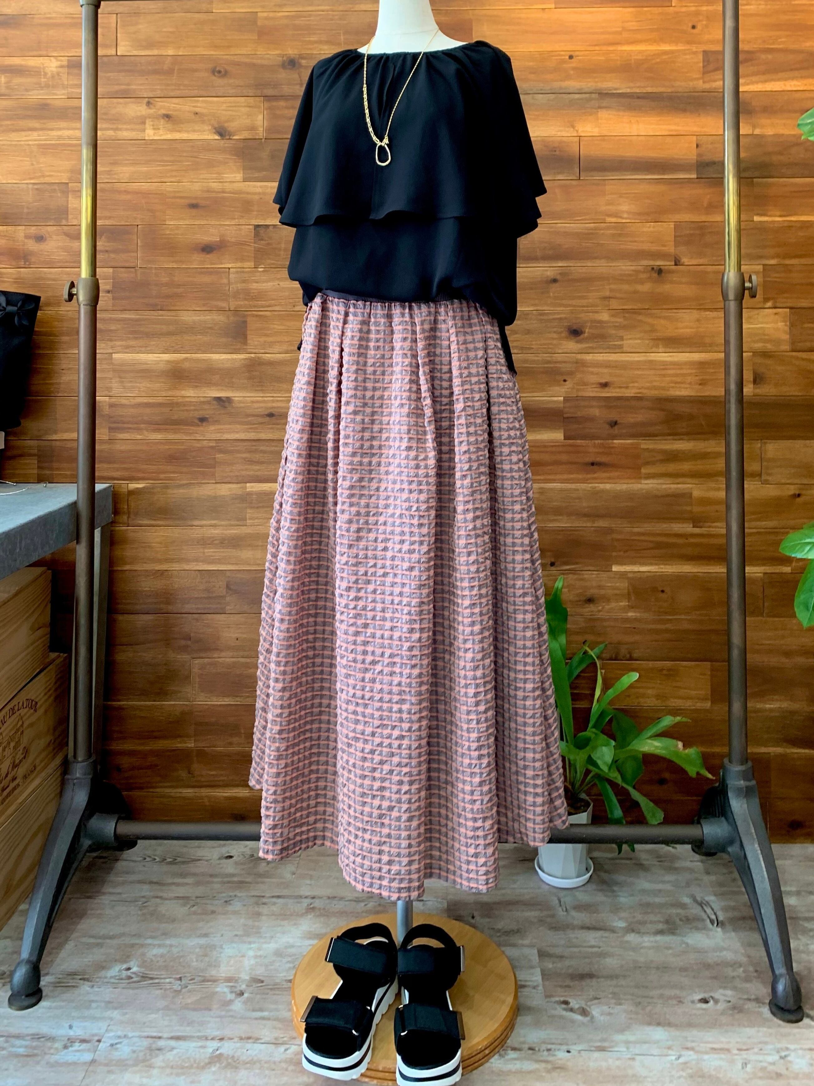 軽やかな色調、凸凹生地のサラサラの肌触りで、座りジワも気になりません♡