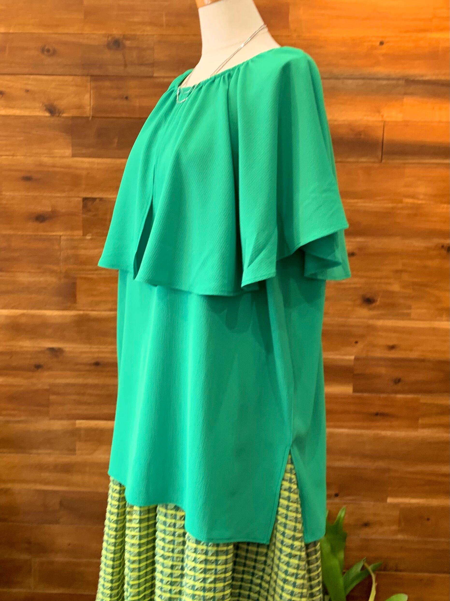 タンクトップの上に大きめのケープ襟が付いたデザインで、とっても涼しい着心地です♪