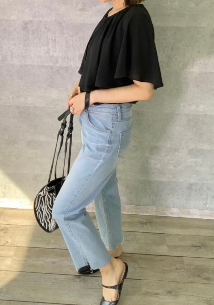 裾サイドにもスリット入りでイン、アウトにしても収まりが良く、スカートやパンツ・デニムにも相性抜群!ボトムを選びません。