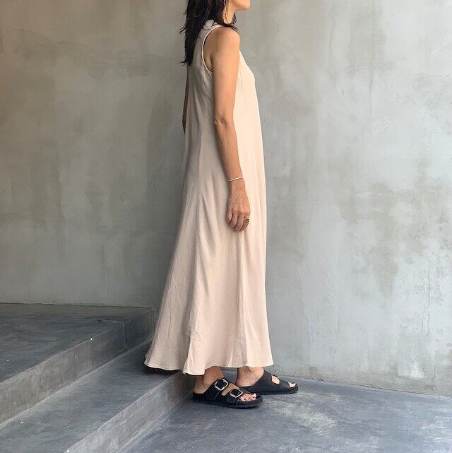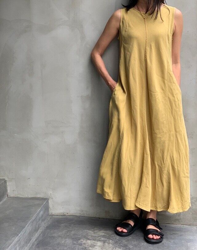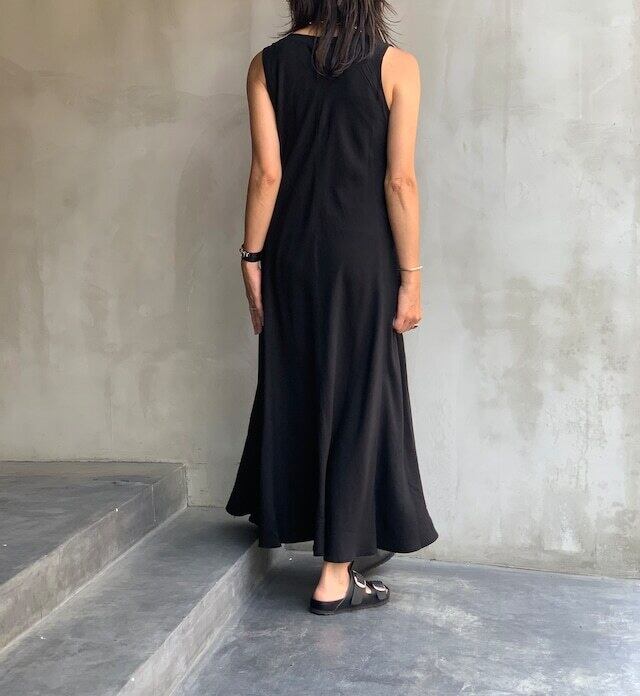 しなやかな素材のテンセルピケのノースリーブワンピース。