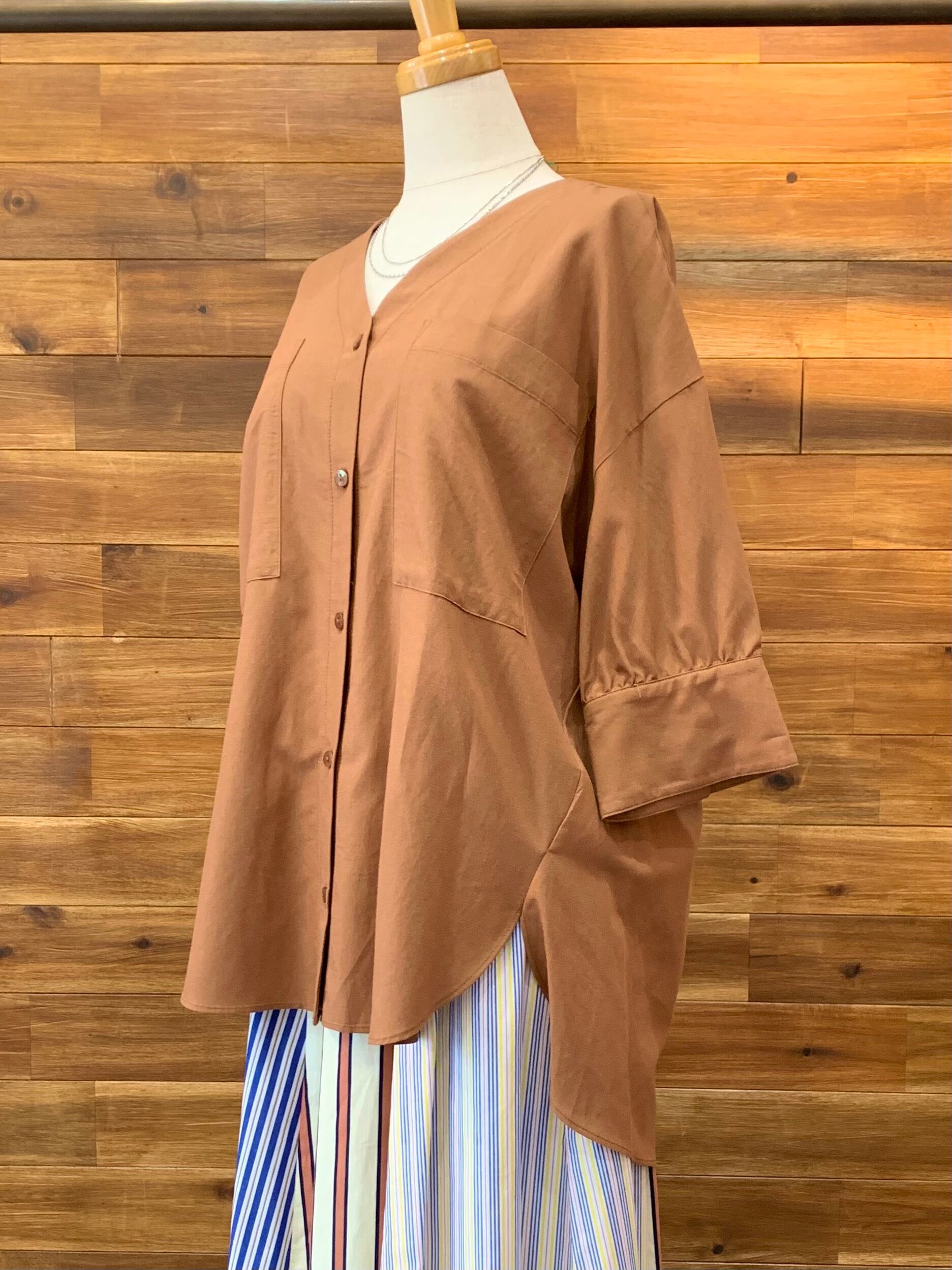 Vネック5分袖前あきシャツ