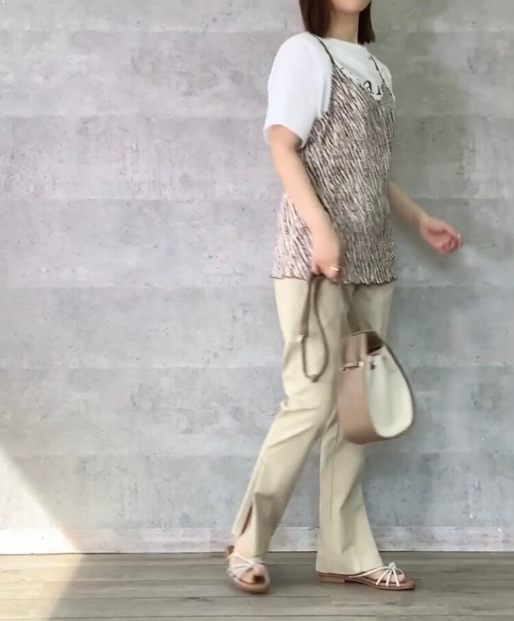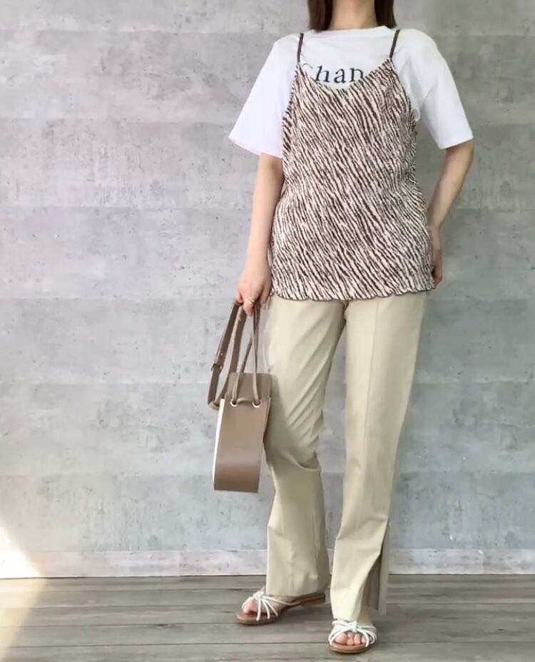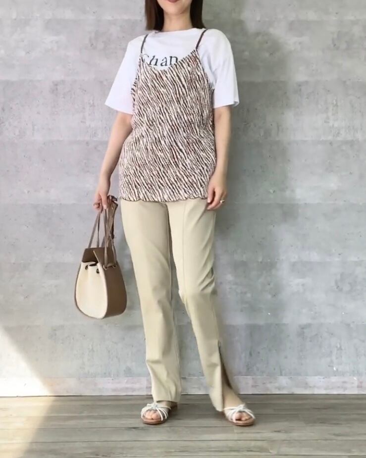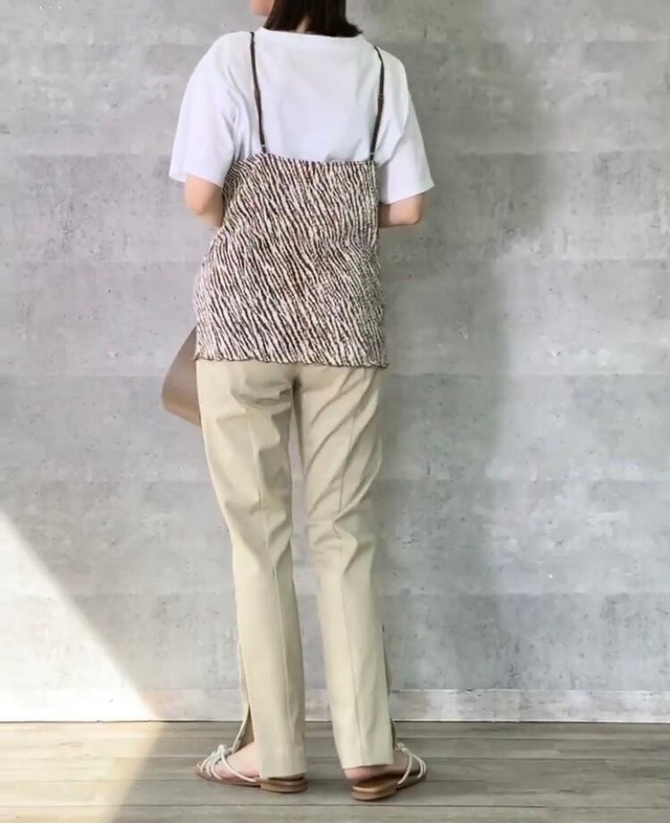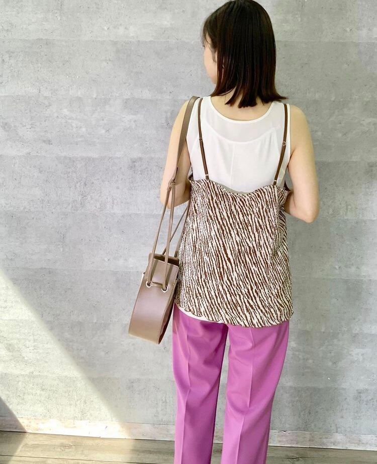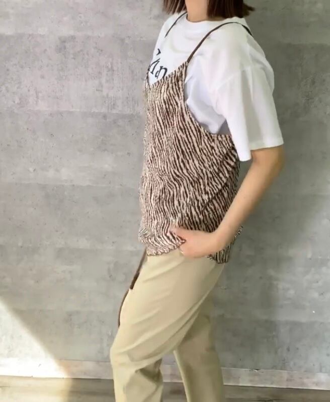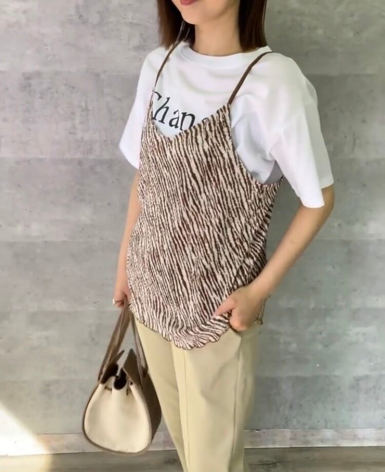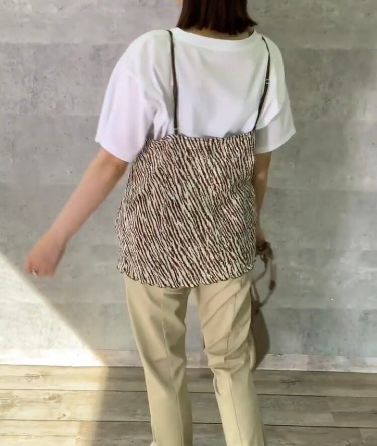 ゼブラ柄のカットソープリーツ素材のキャミソール。