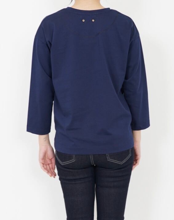 シルケットの綿100%素材を使用した8分袖Tシャツ。